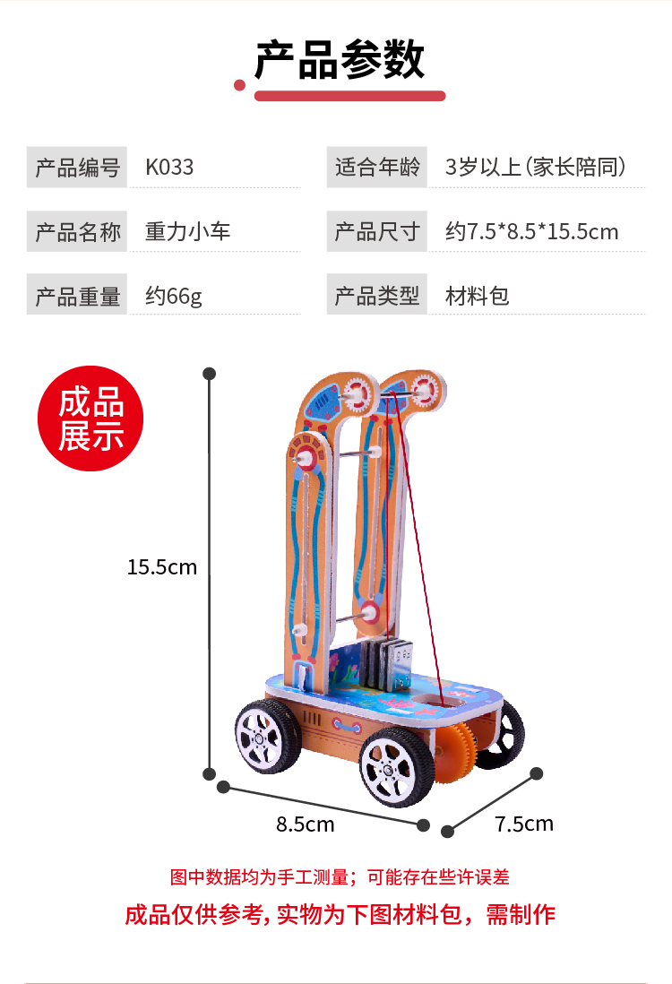 重力小车科学小实验套餐科技手工diy幼儿园学生儿童制作材料玩具