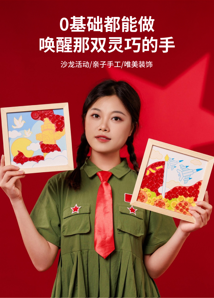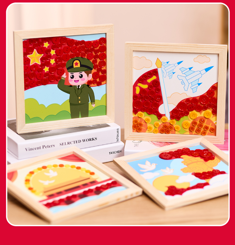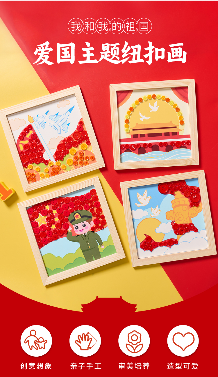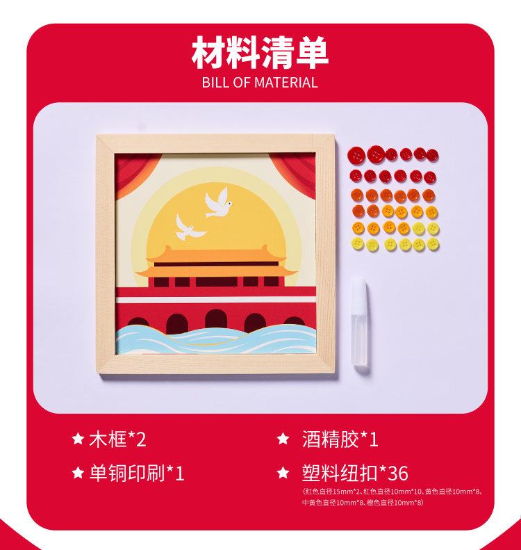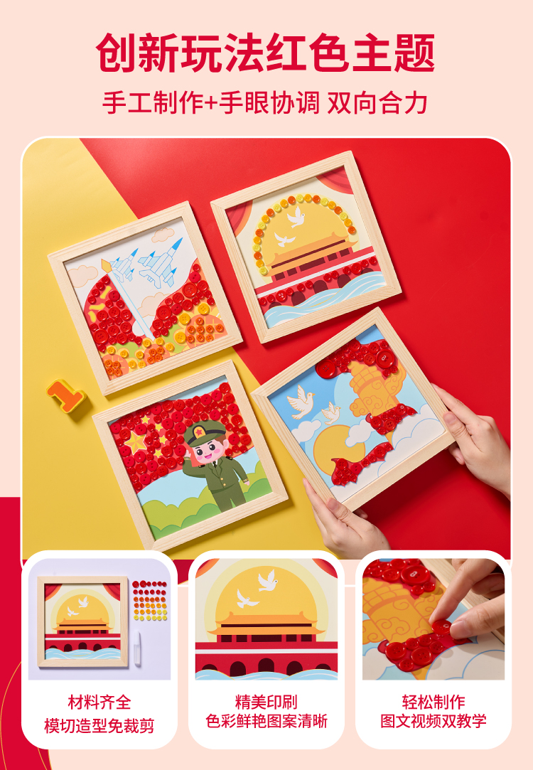 红色爱国主题纽扣画手工diy儿童材料包幼儿园团建活动