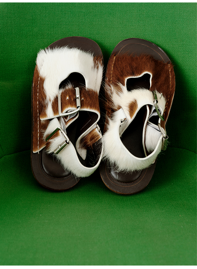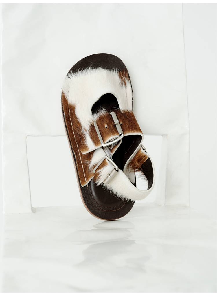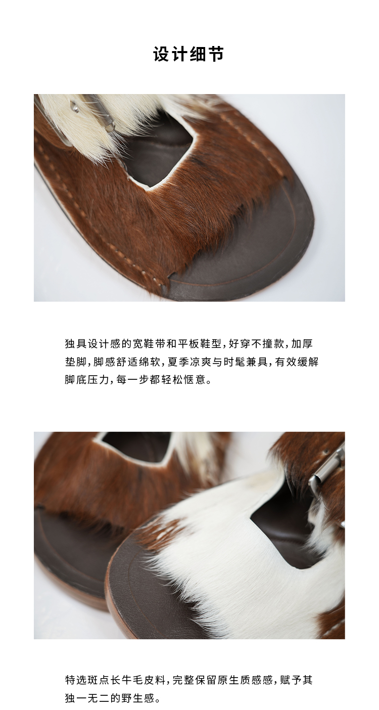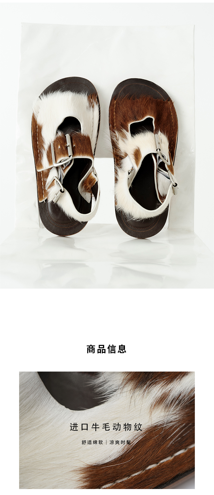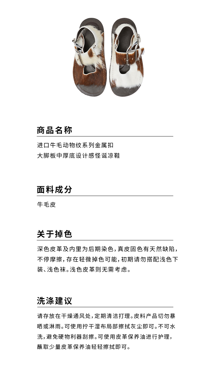 HIDEMI 进口牛毛动物纹系列金属扣大脚板中厚底设计感怪诞凉鞋