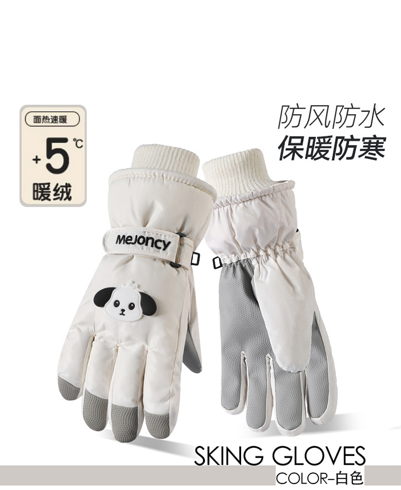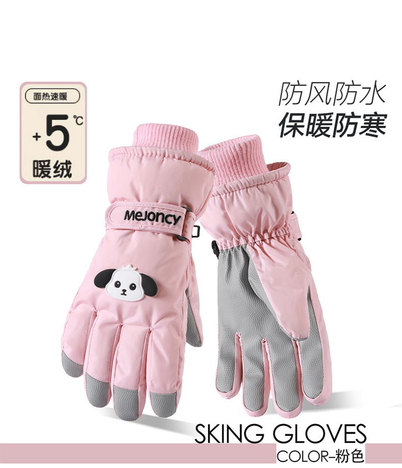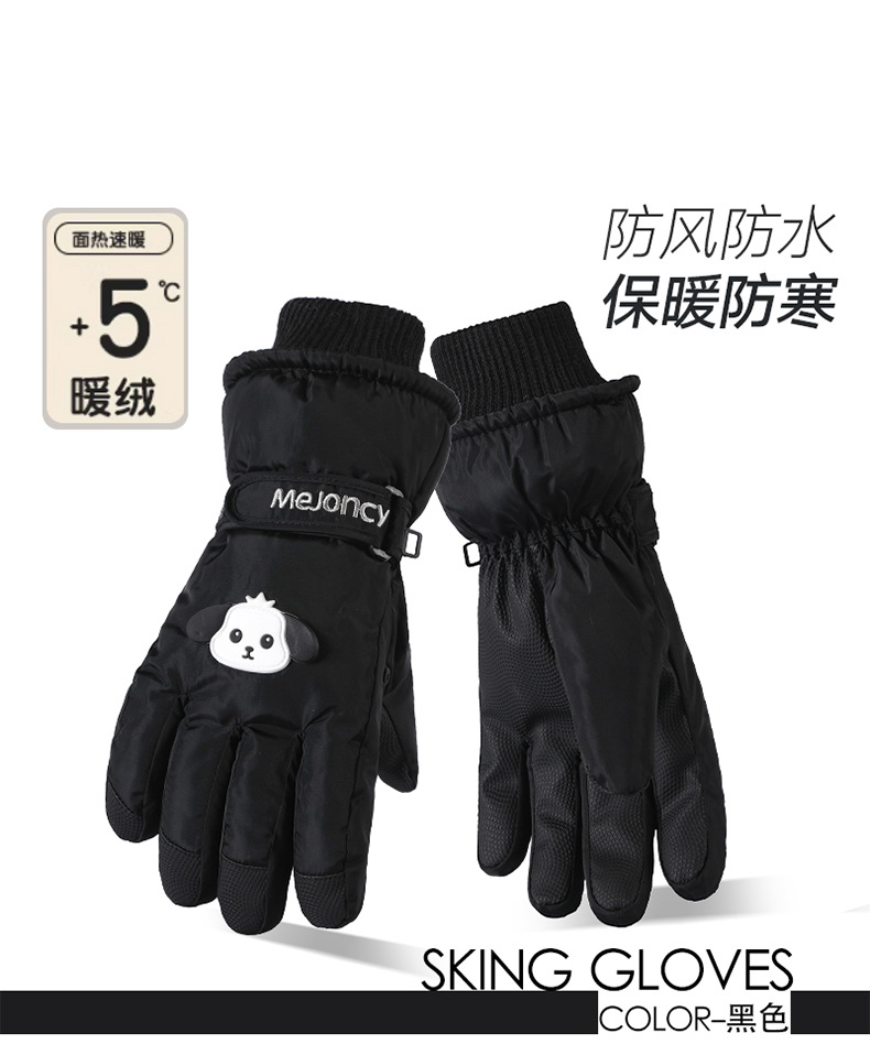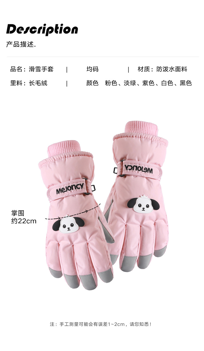 秋冬新款女生滑雪手套加厚绒棉骑电车防风保暖卡通可爱触屏