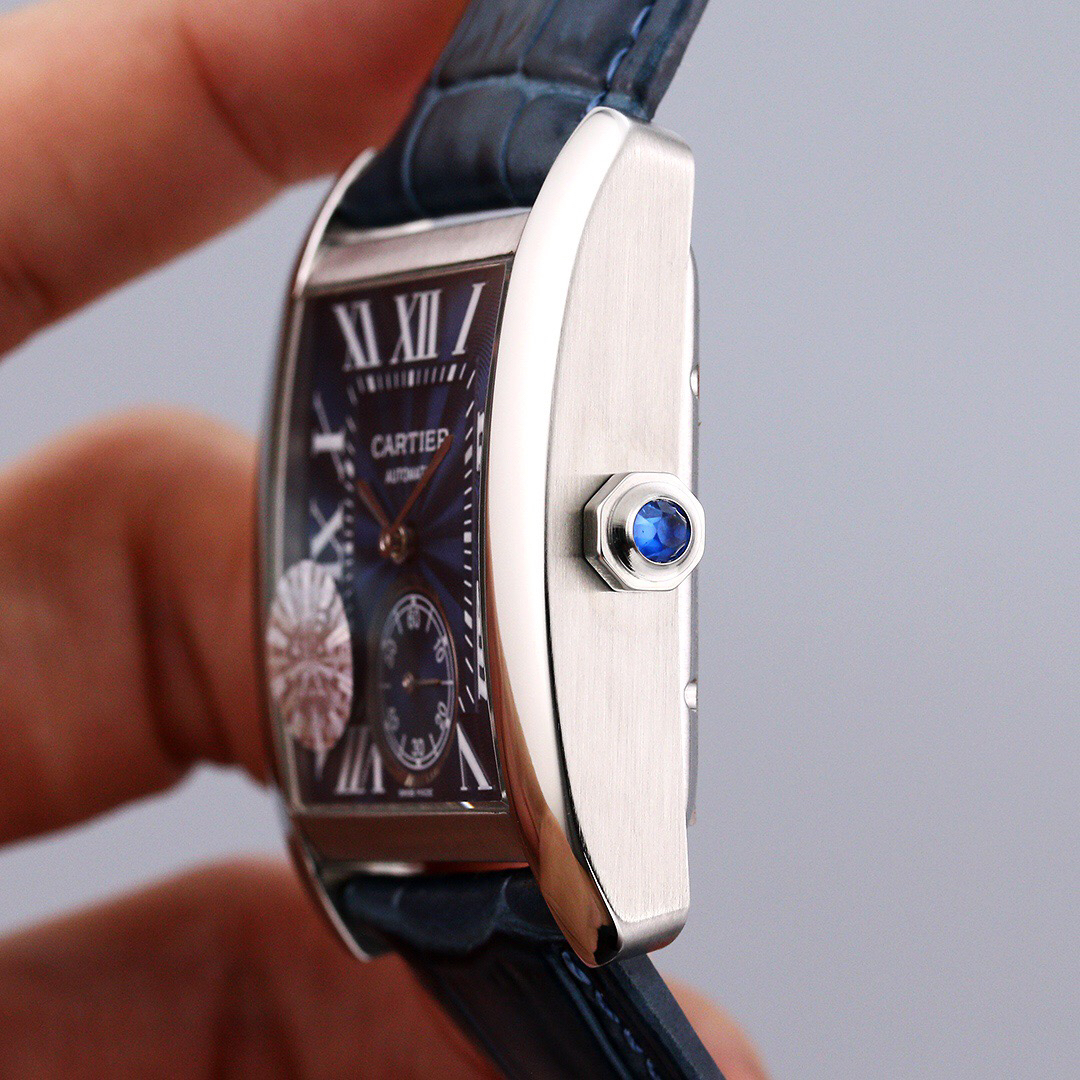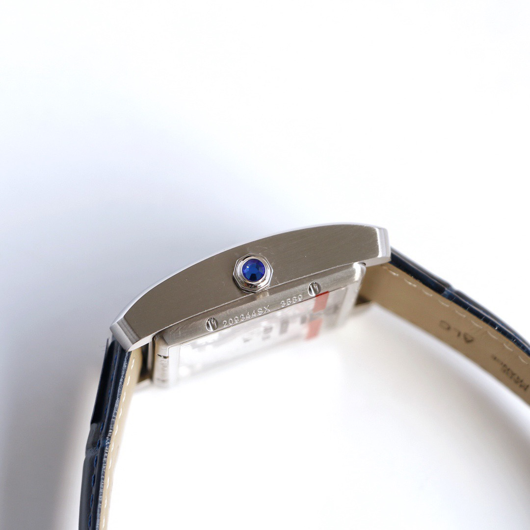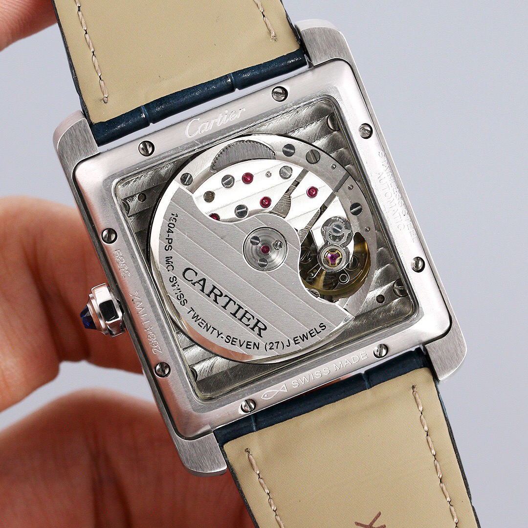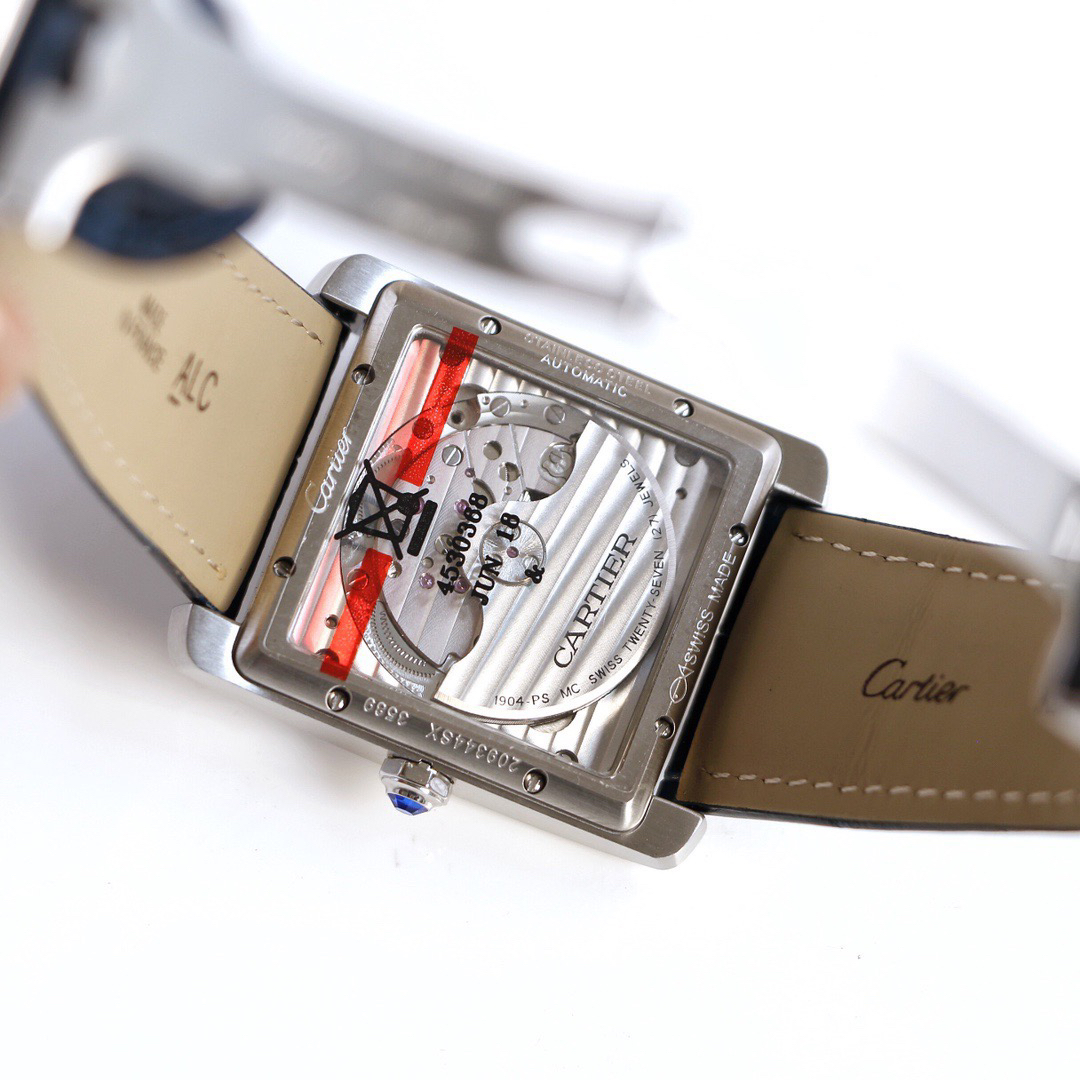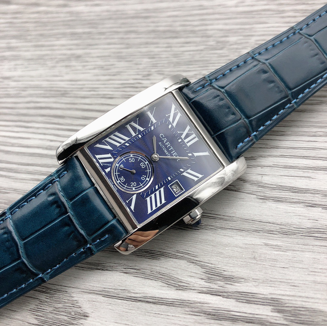 JF卡地亚WSTA0010英式坦克系列 版本,原版1904MC自动机械机芯,表径:34mmX44mm,使用原版烤钢蓝表针,男士手表,皮表带