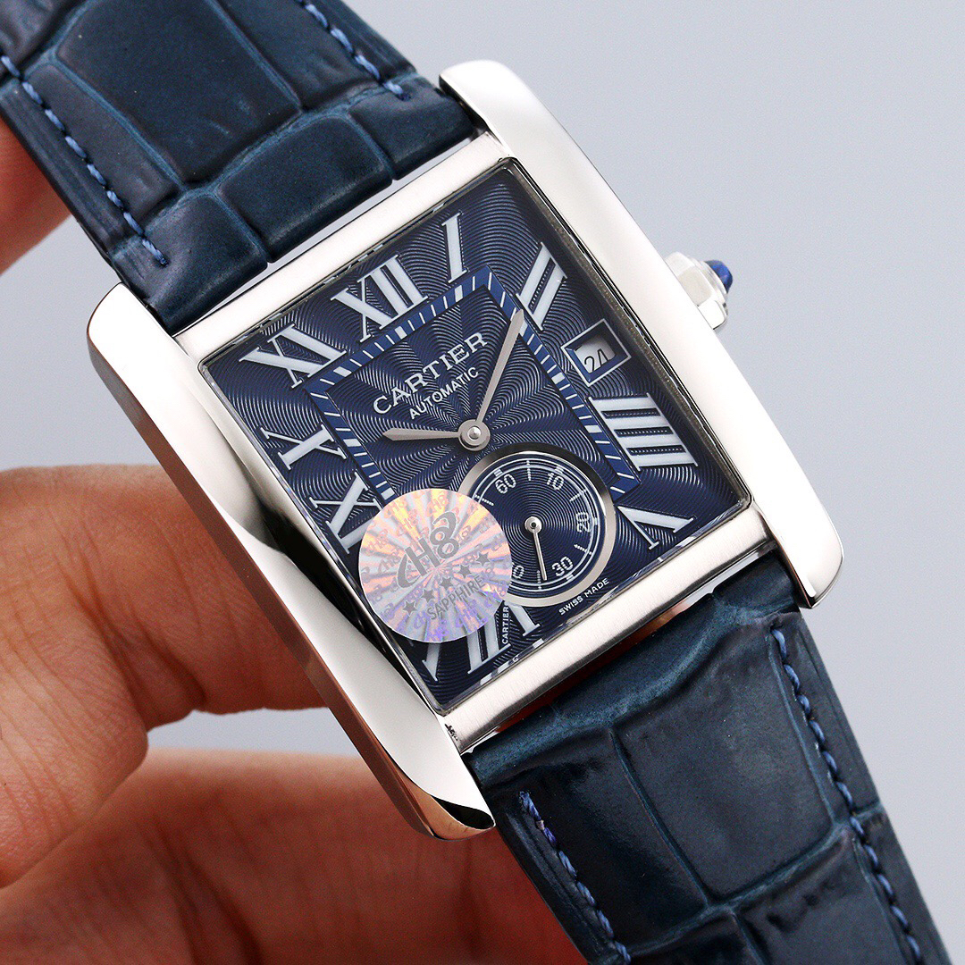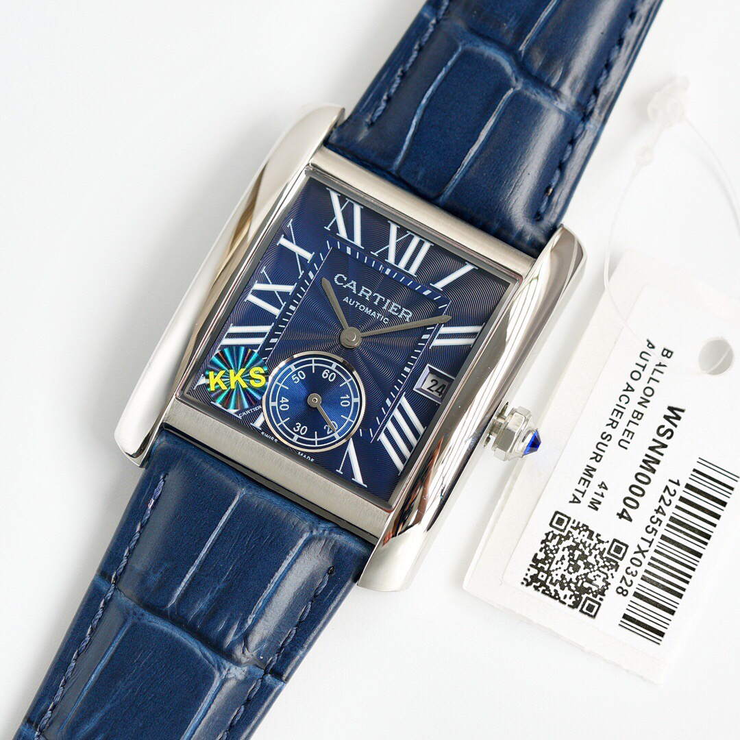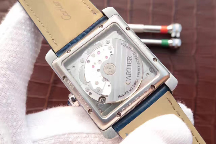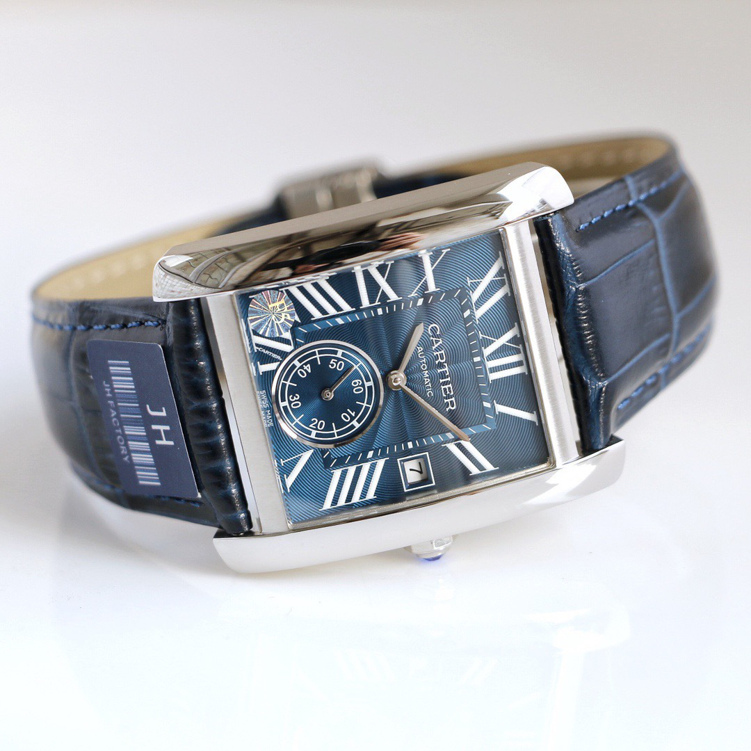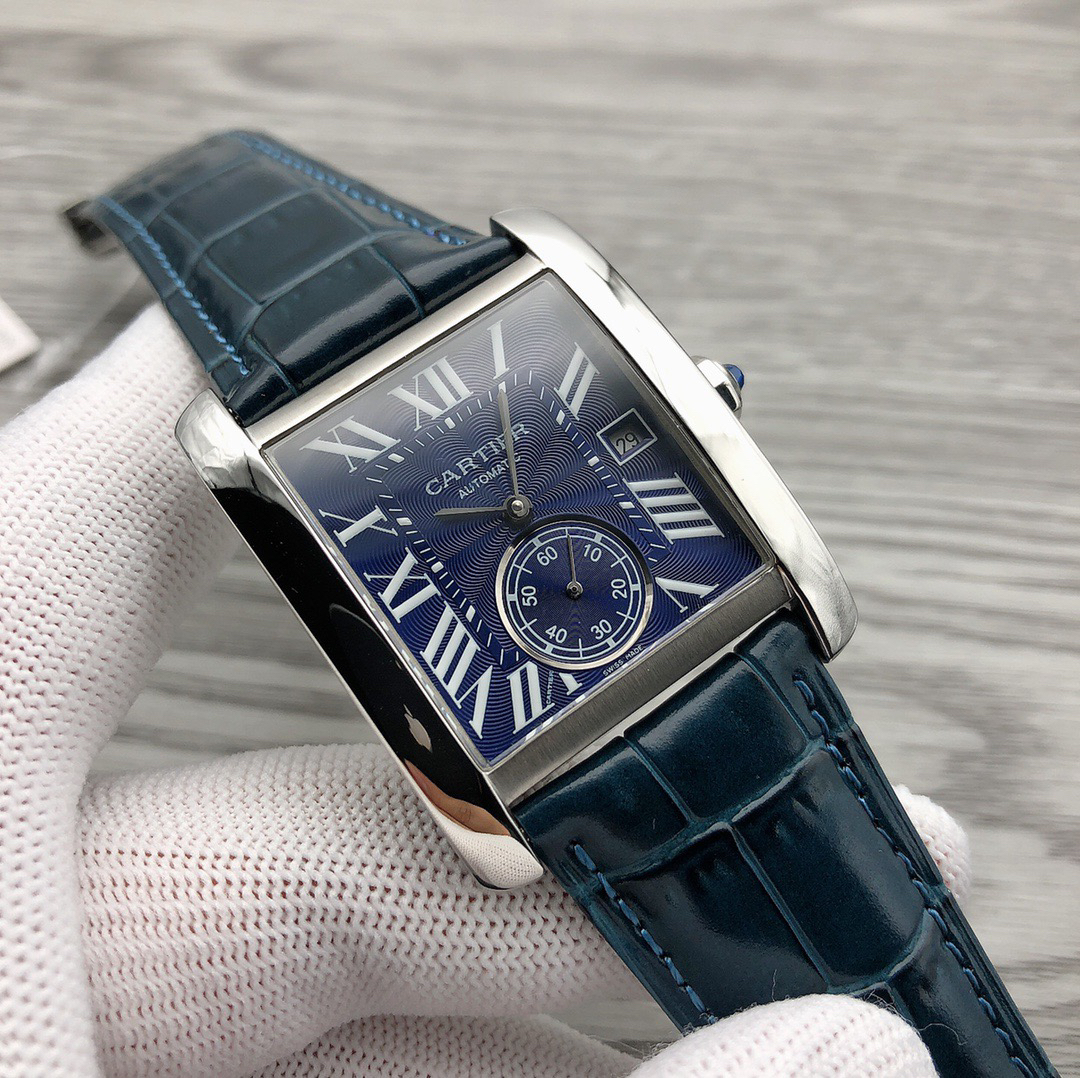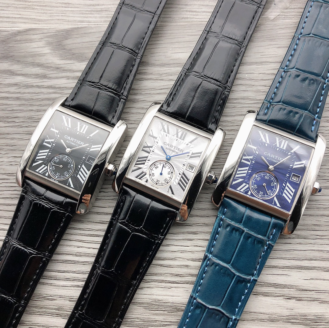 JF卡地亚WSTA0010英式坦克系列 版本,原版1904MC自动机械机芯,表径:34mmX44mm,使用原版烤钢蓝表针,男士手表,皮表带
