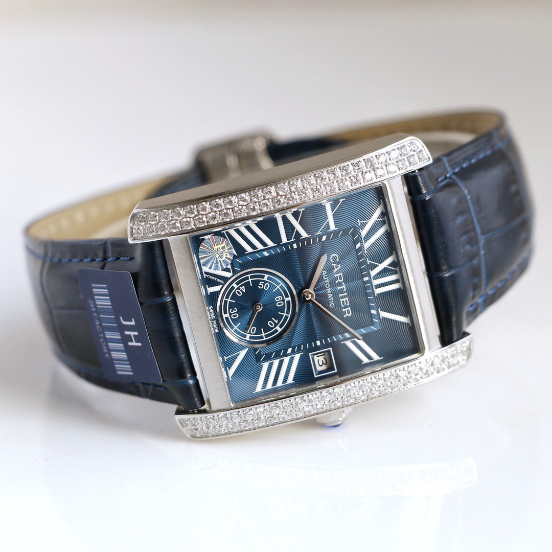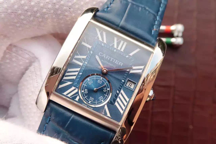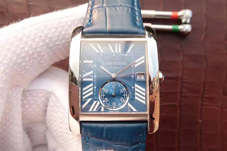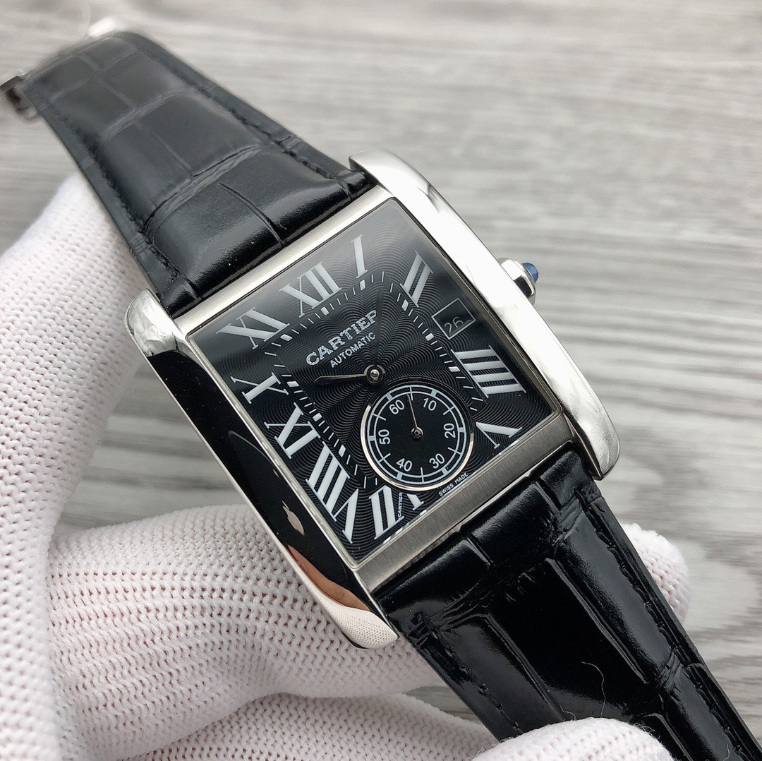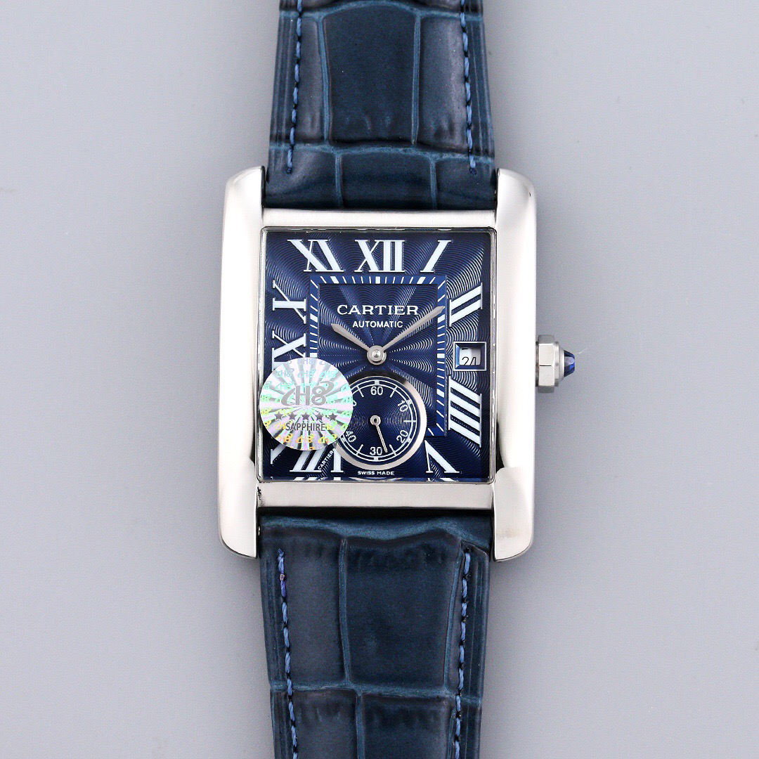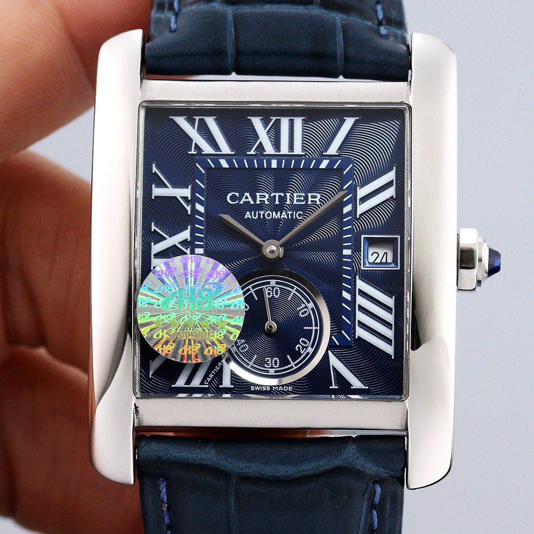 JF卡地亚WSTA0010英式坦克系列 版本,原版1904MC自动机械机芯,表径:34mmX44mm,使用原版烤钢蓝表针,男士手表,皮表带