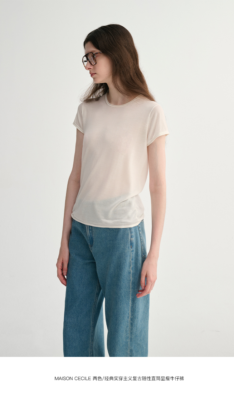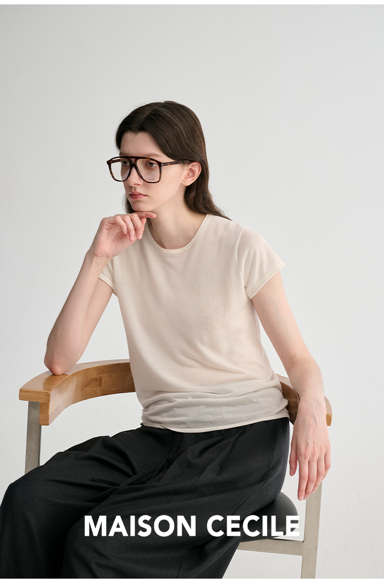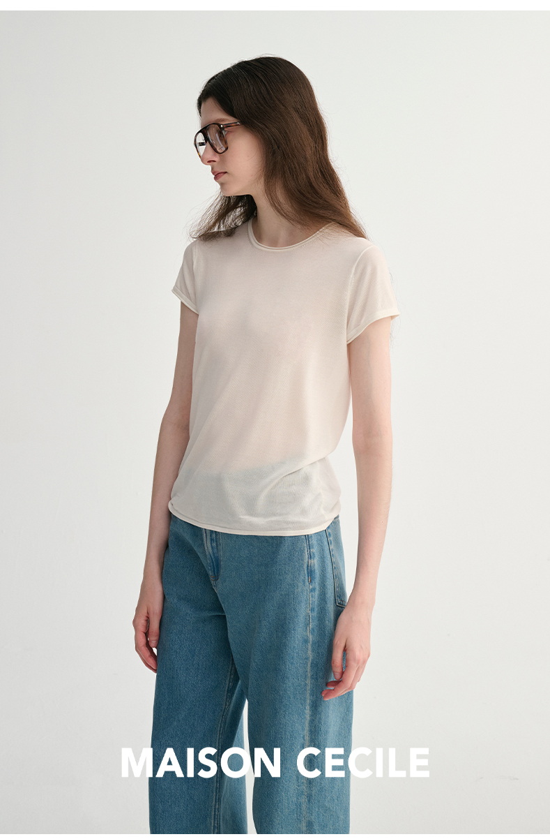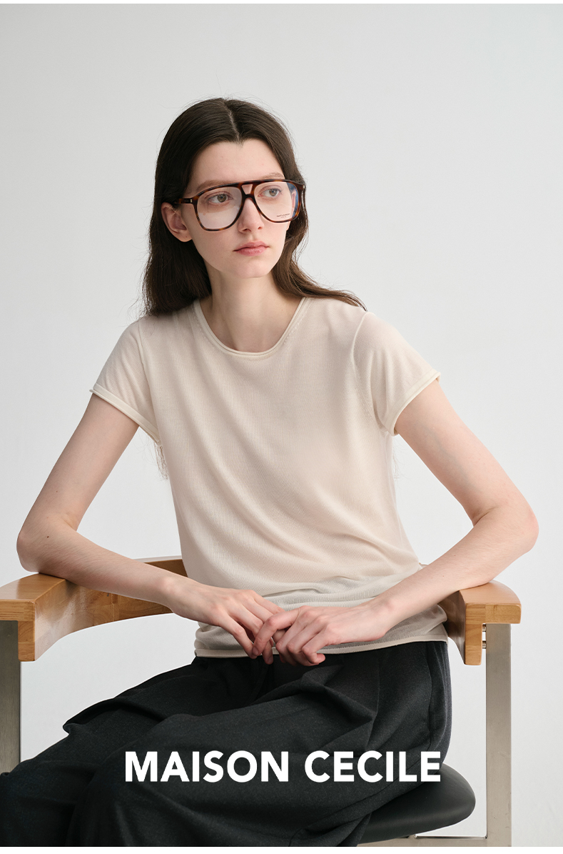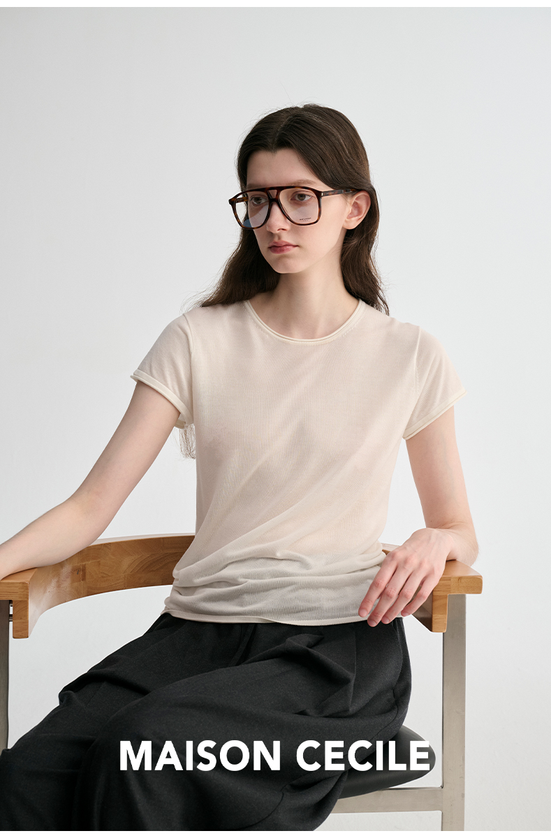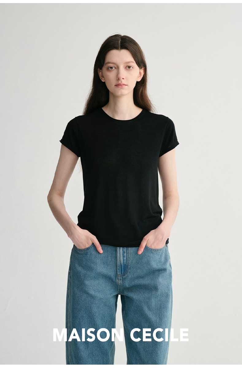 MAISON CECILE 两色/桑蚕丝卷边圆领优雅法式简约纯色针织短袖