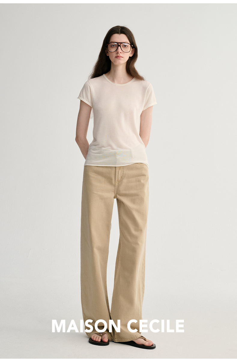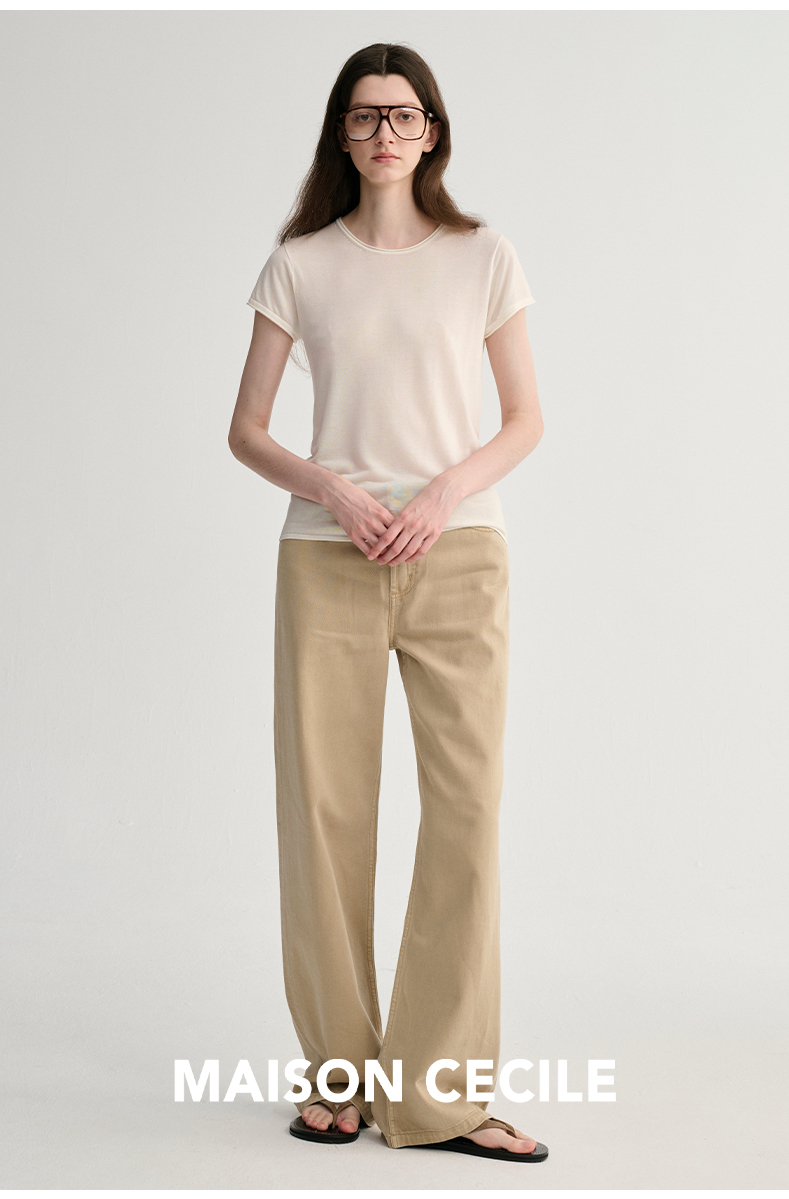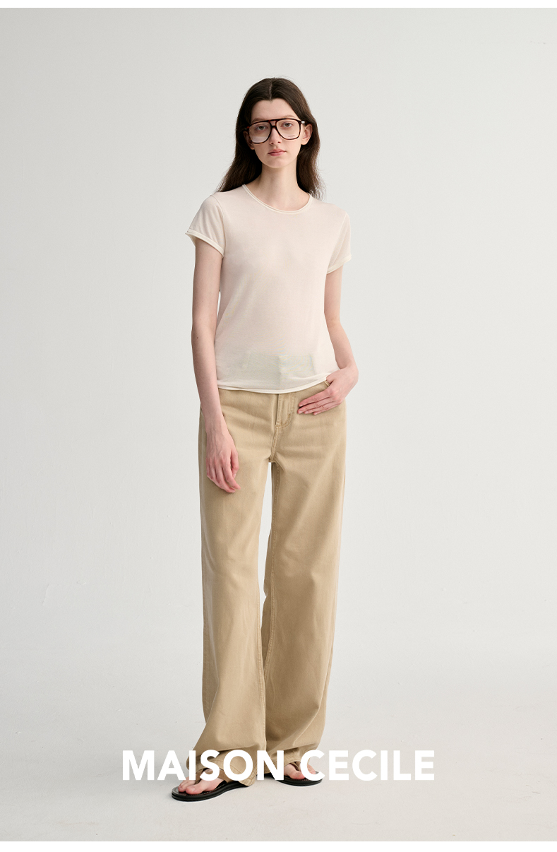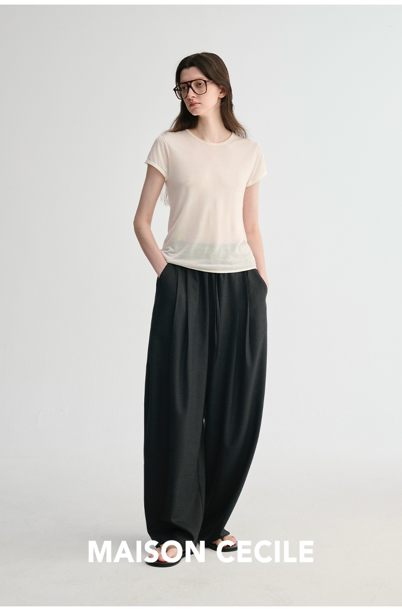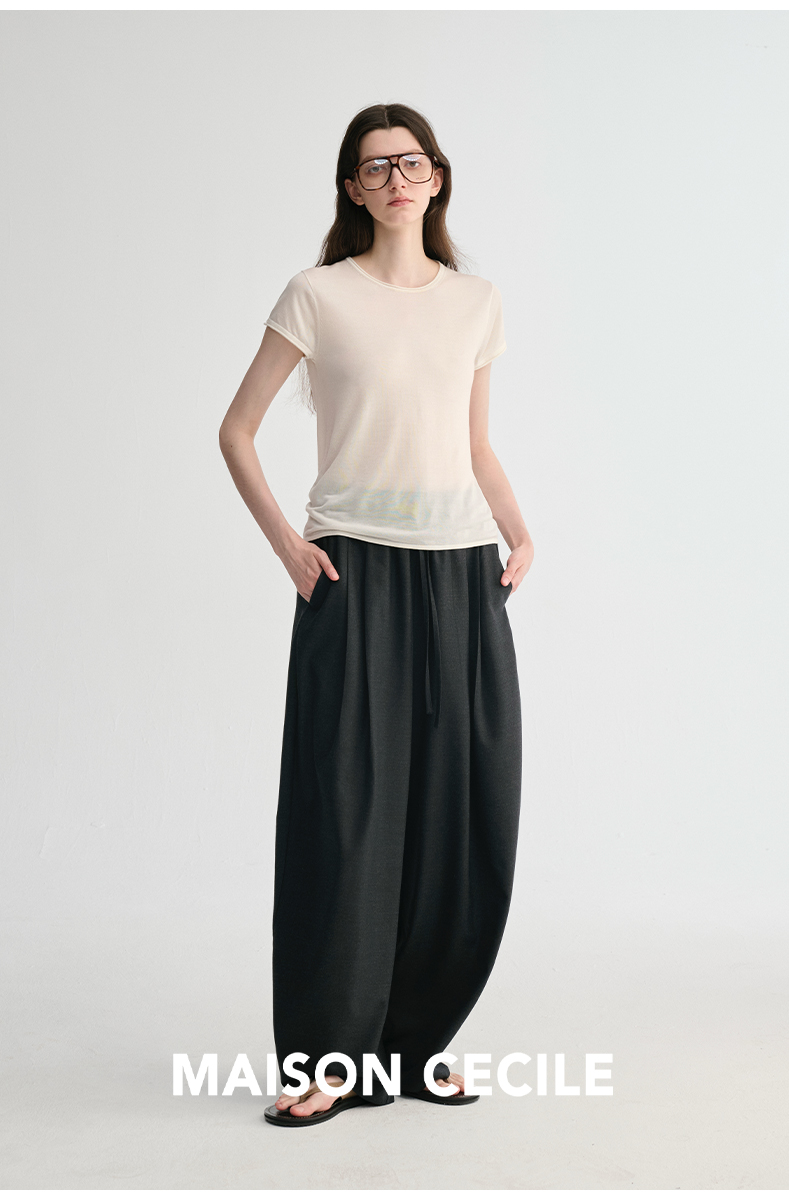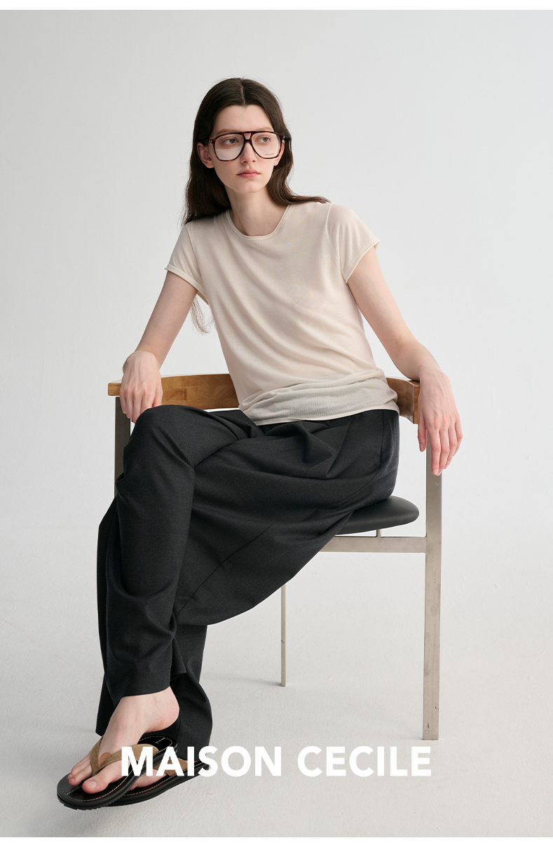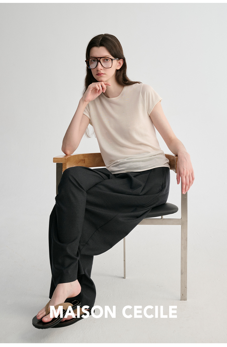 MAISON CECILE 两色/桑蚕丝卷边圆领优雅法式简约纯色针织短袖
