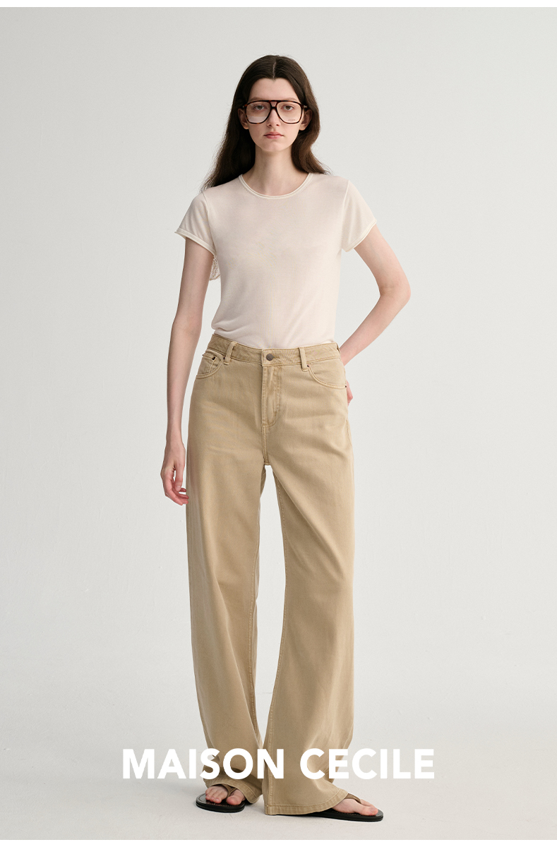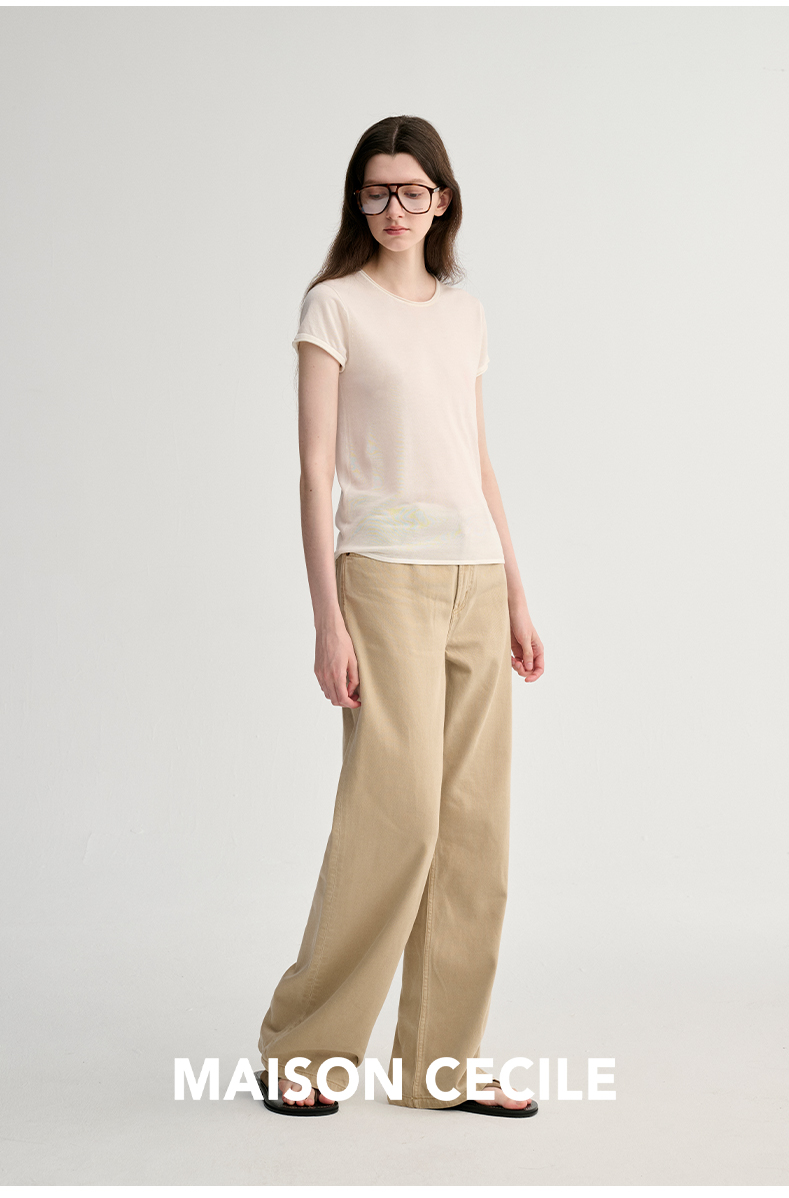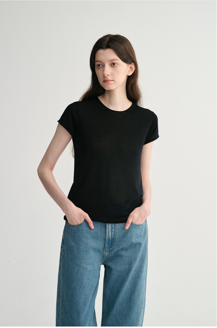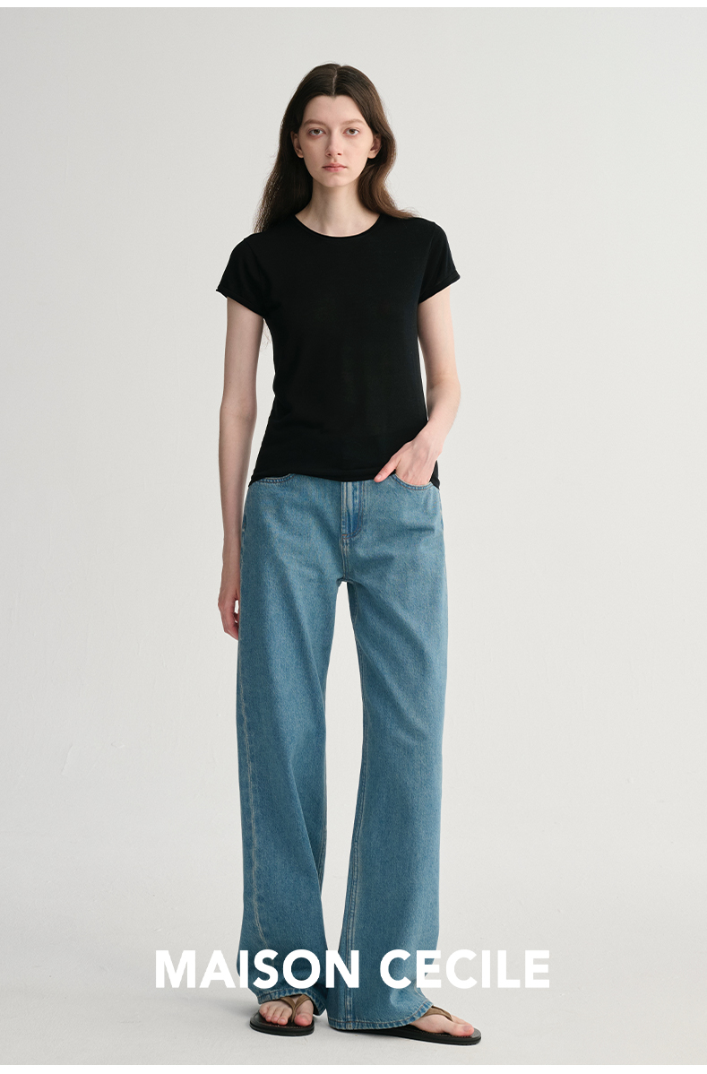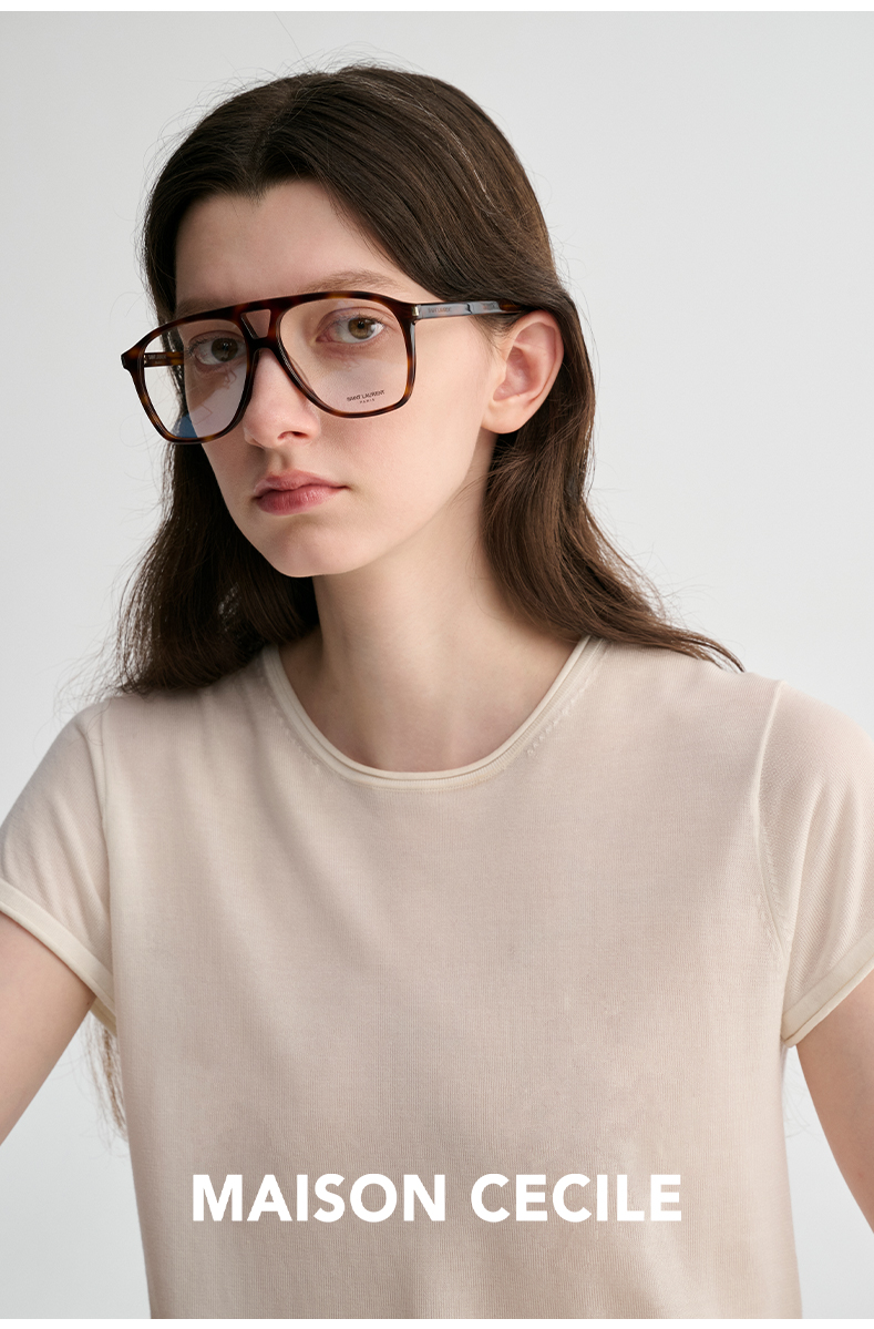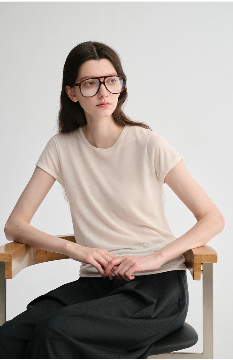 MAISON CECILE 两色/桑蚕丝卷边圆领优雅法式简约纯色针织短袖