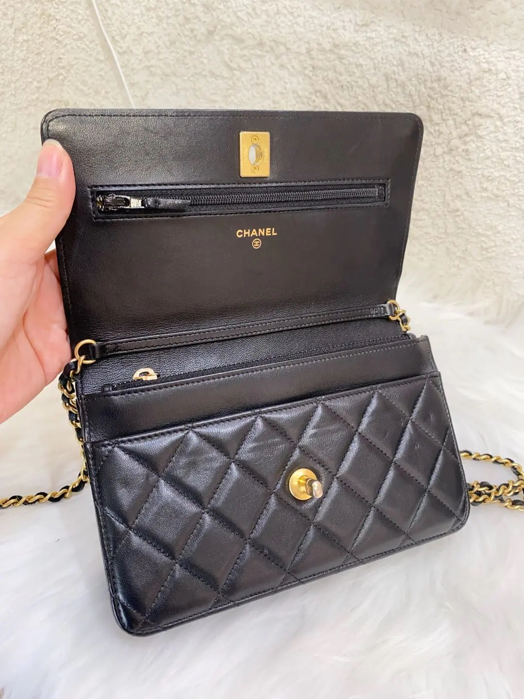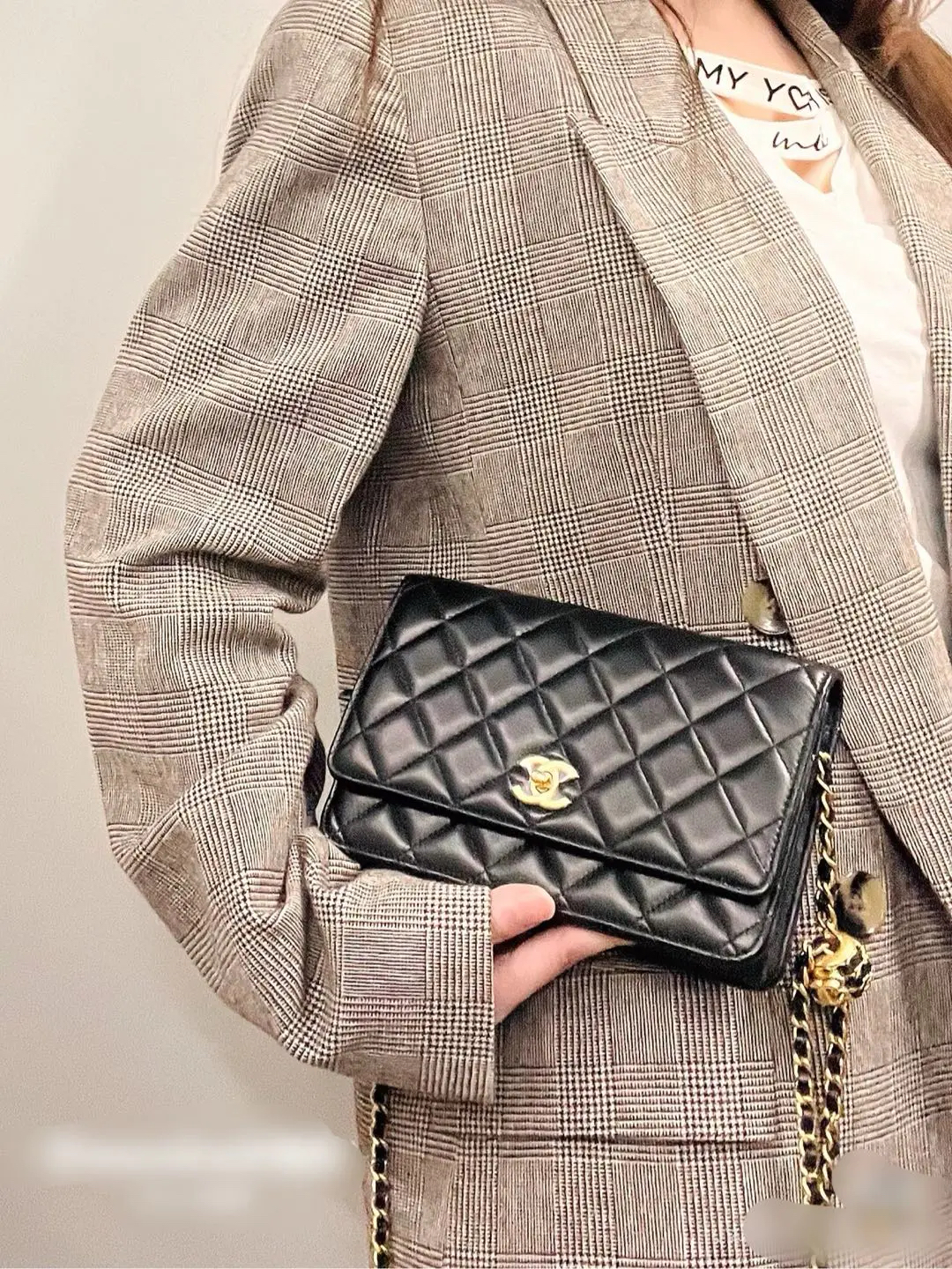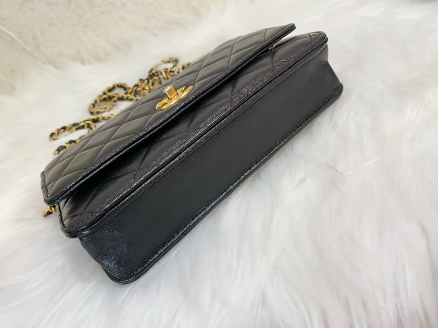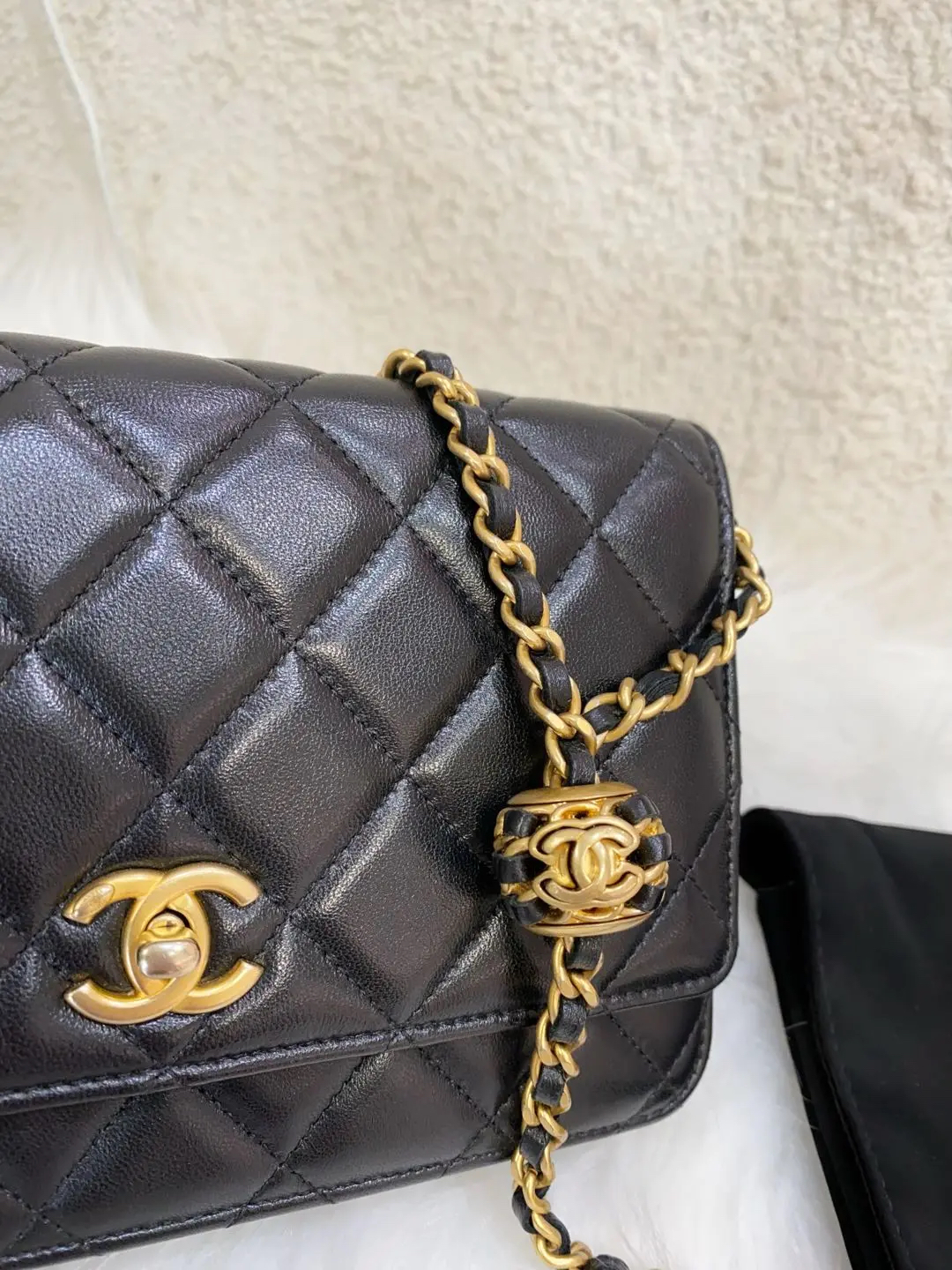 【商品详情】正品二手 Chanel 22s 黑金 核桃金球 Woc 斜挎包👜95新 19*12 新钢标 配件:防尘袋。精致重工 比经典金球更轻