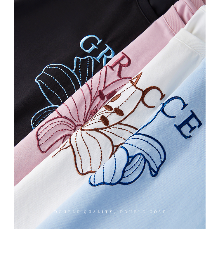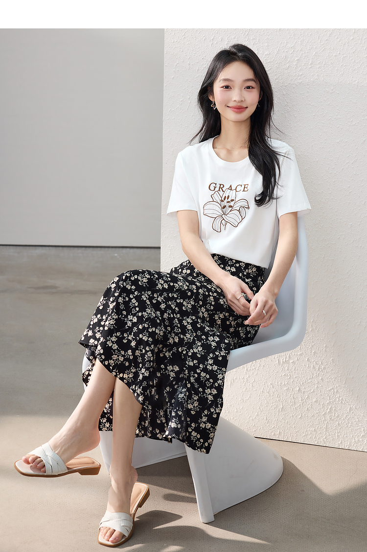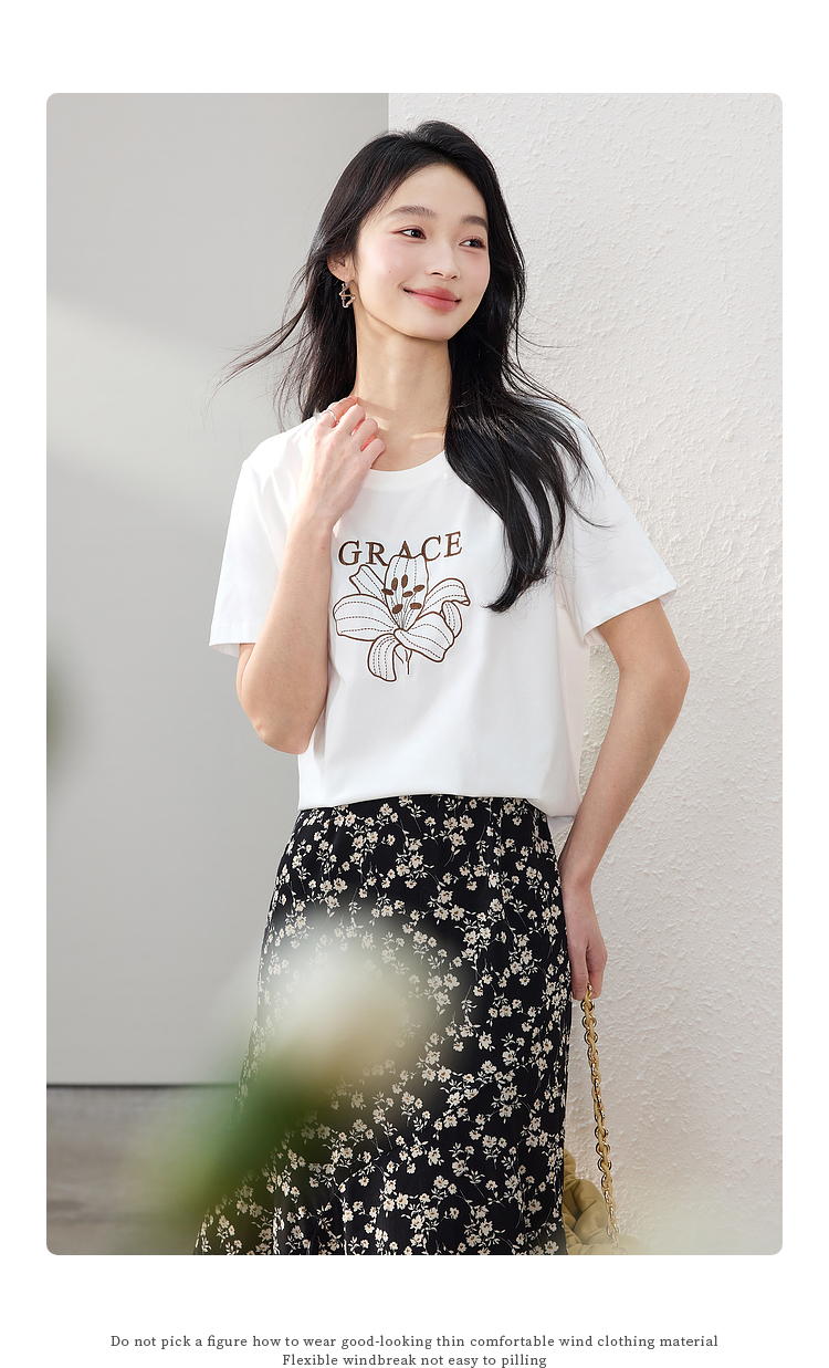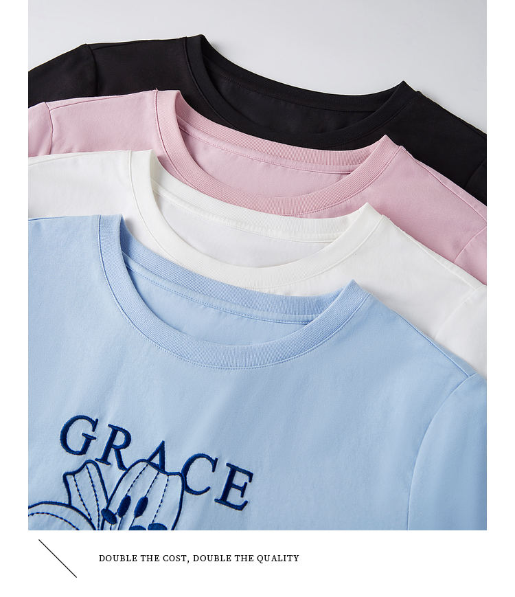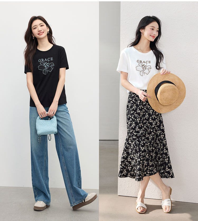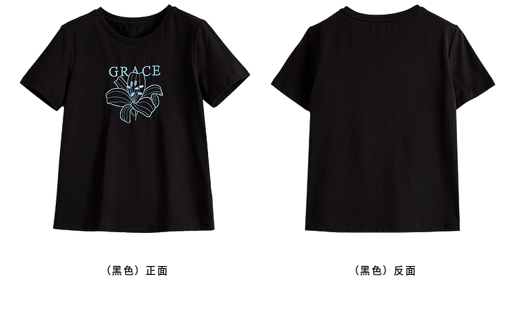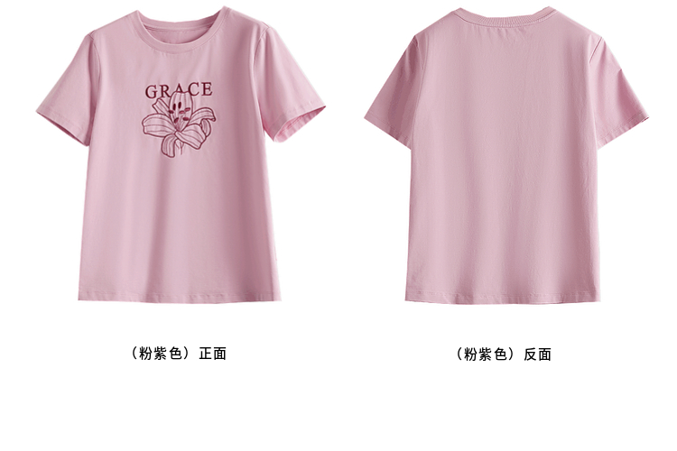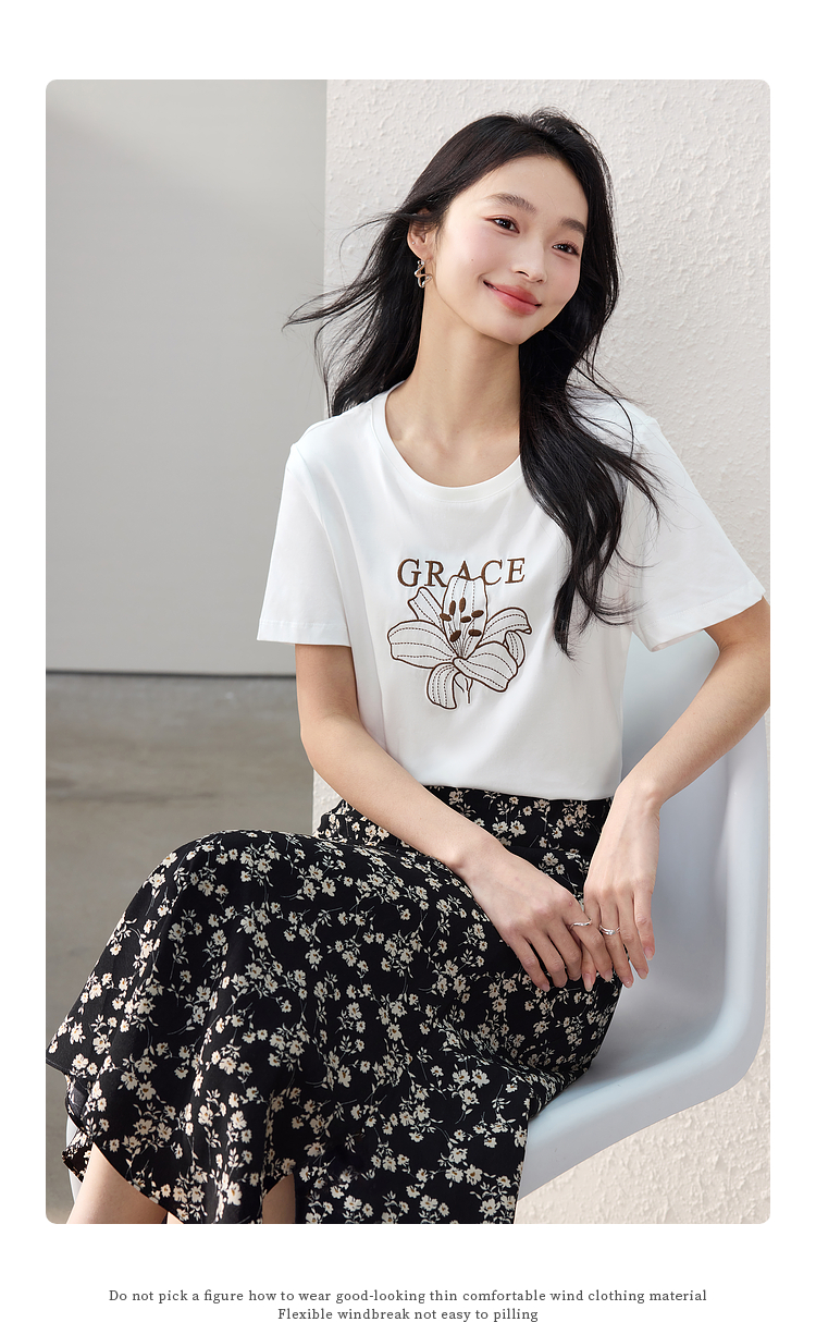 【专属特价】熙世界重工刺绣百合花T恤女短袖2025新款春夏休闲风圆领正肩上衣