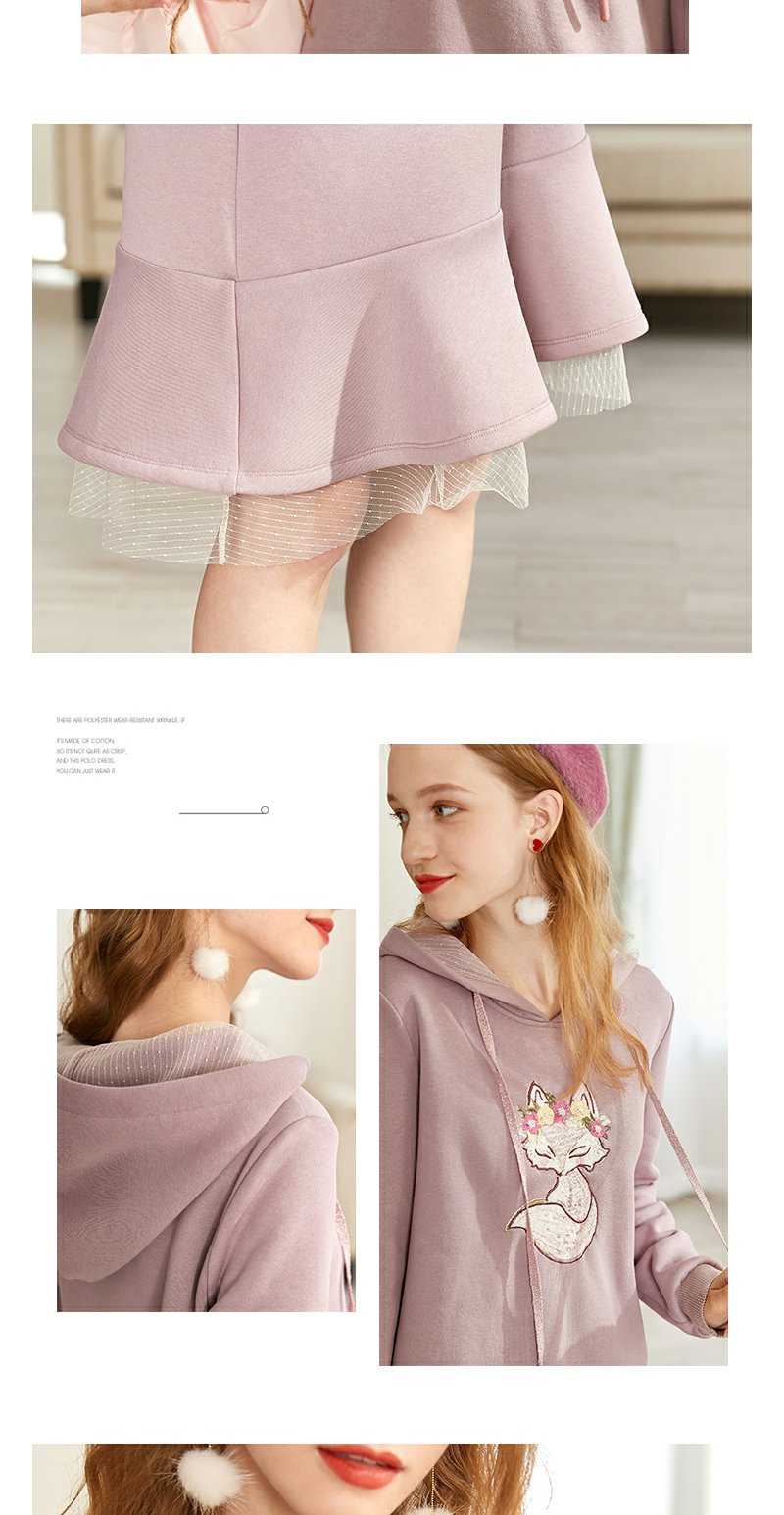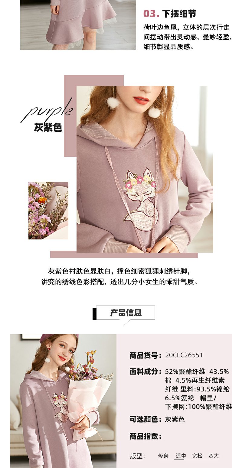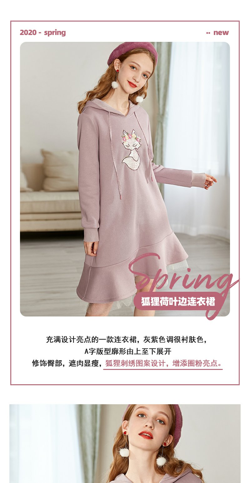 欧芮儿春新款小香风长袖连帽卫衣连衣裙中长款显瘦网纱鱼尾裙