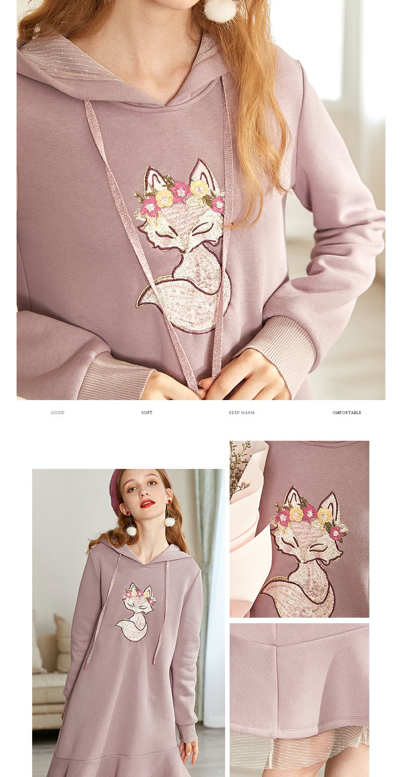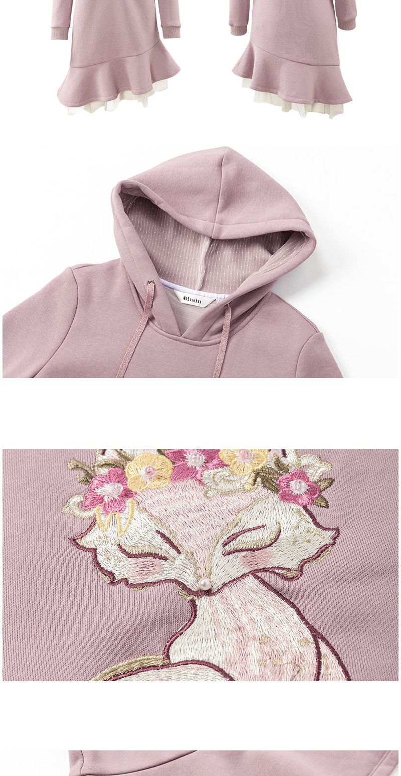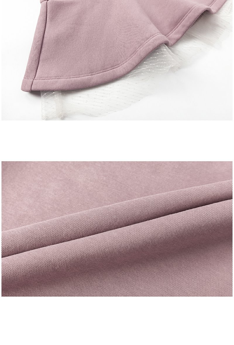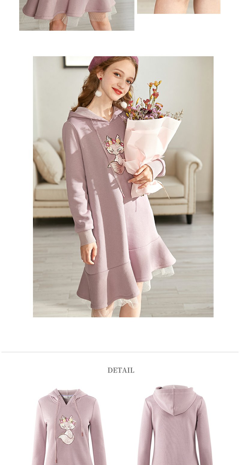 欧芮儿春新款小香风长袖连帽卫衣连衣裙中长款显瘦网纱鱼尾裙