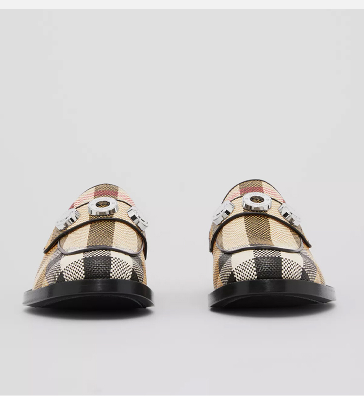 BURBERRY 巴宝莉 女士徽标细节格纹尼龙乐福鞋 8054093 A8731