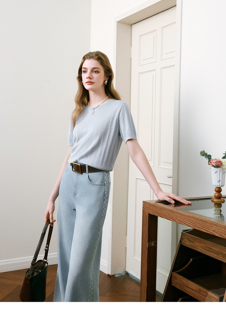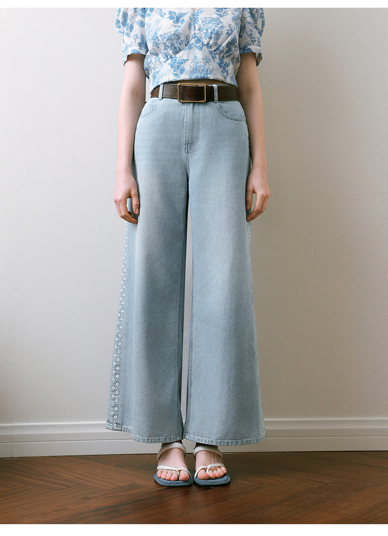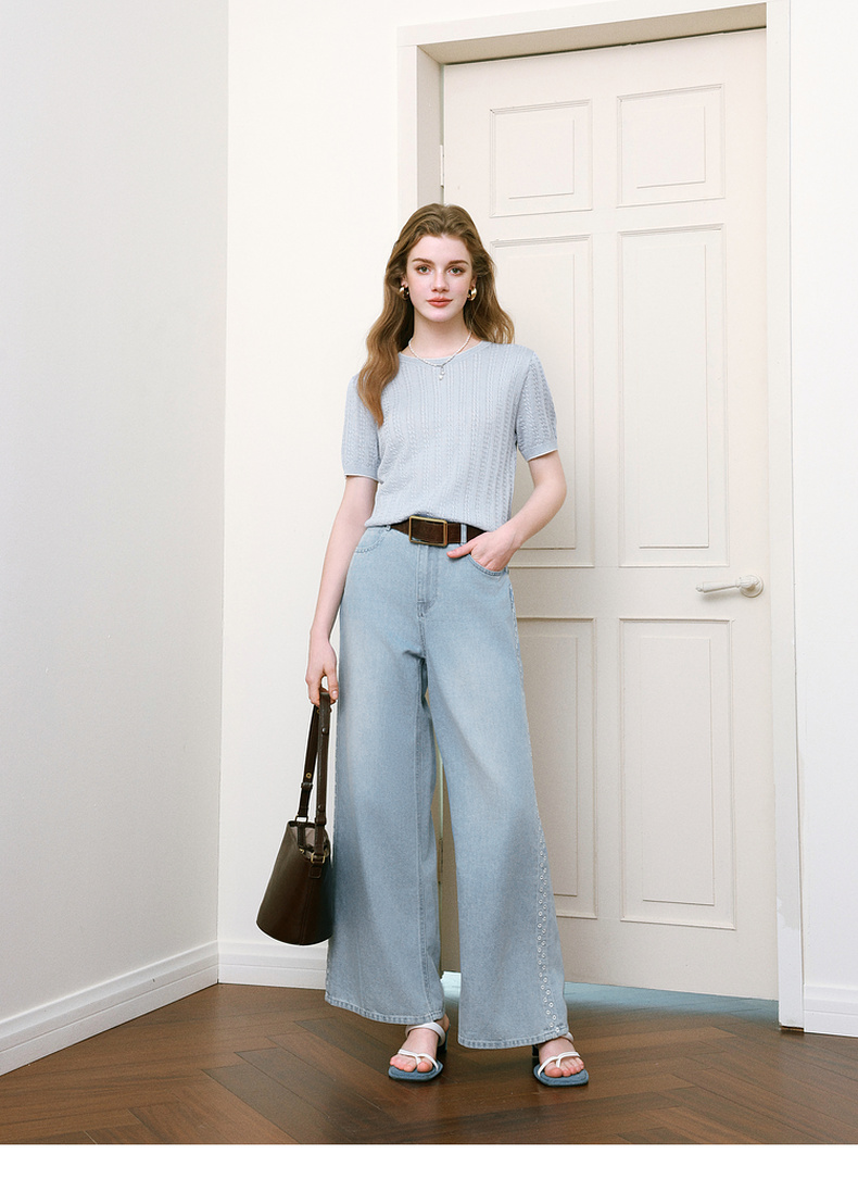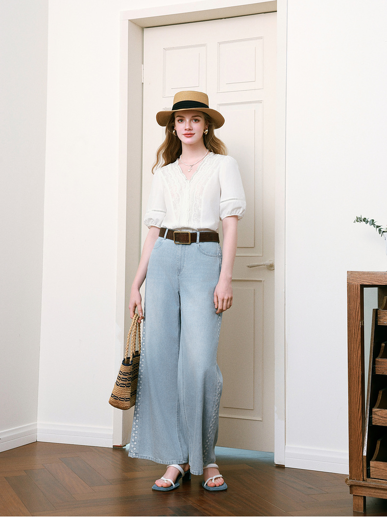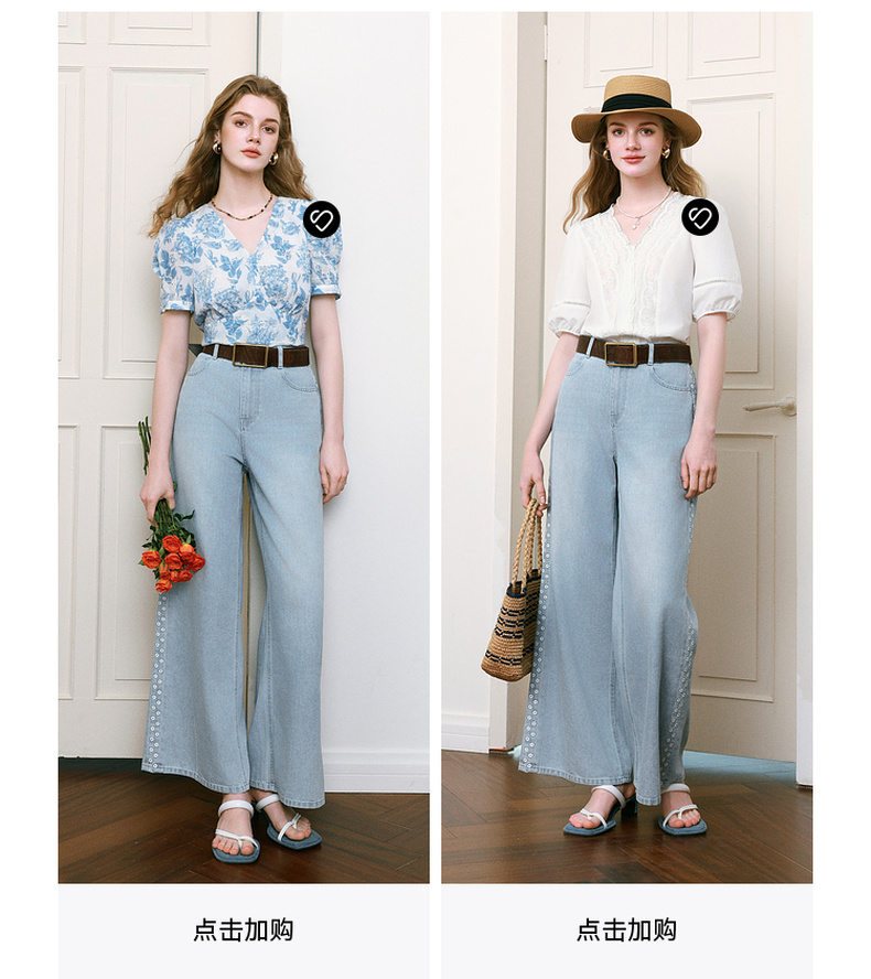【商场同款】诗凡黎醋酸牛仔阔腿裤2025夏新款爽滑长裤3G4350711