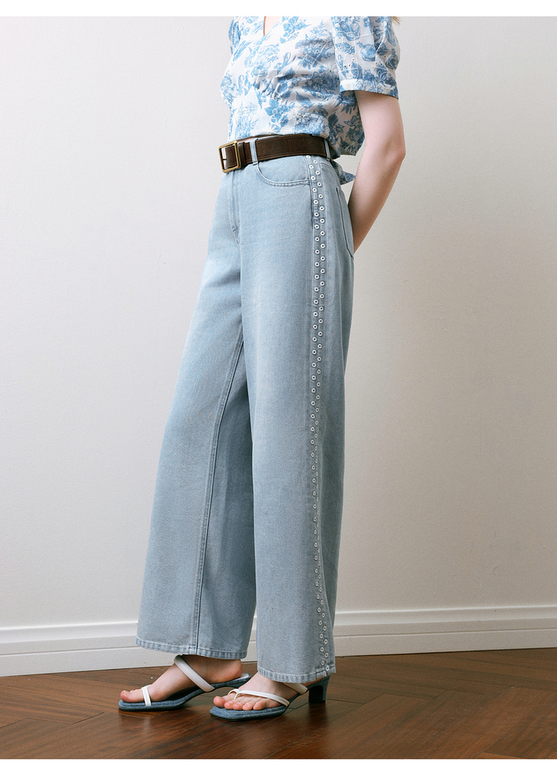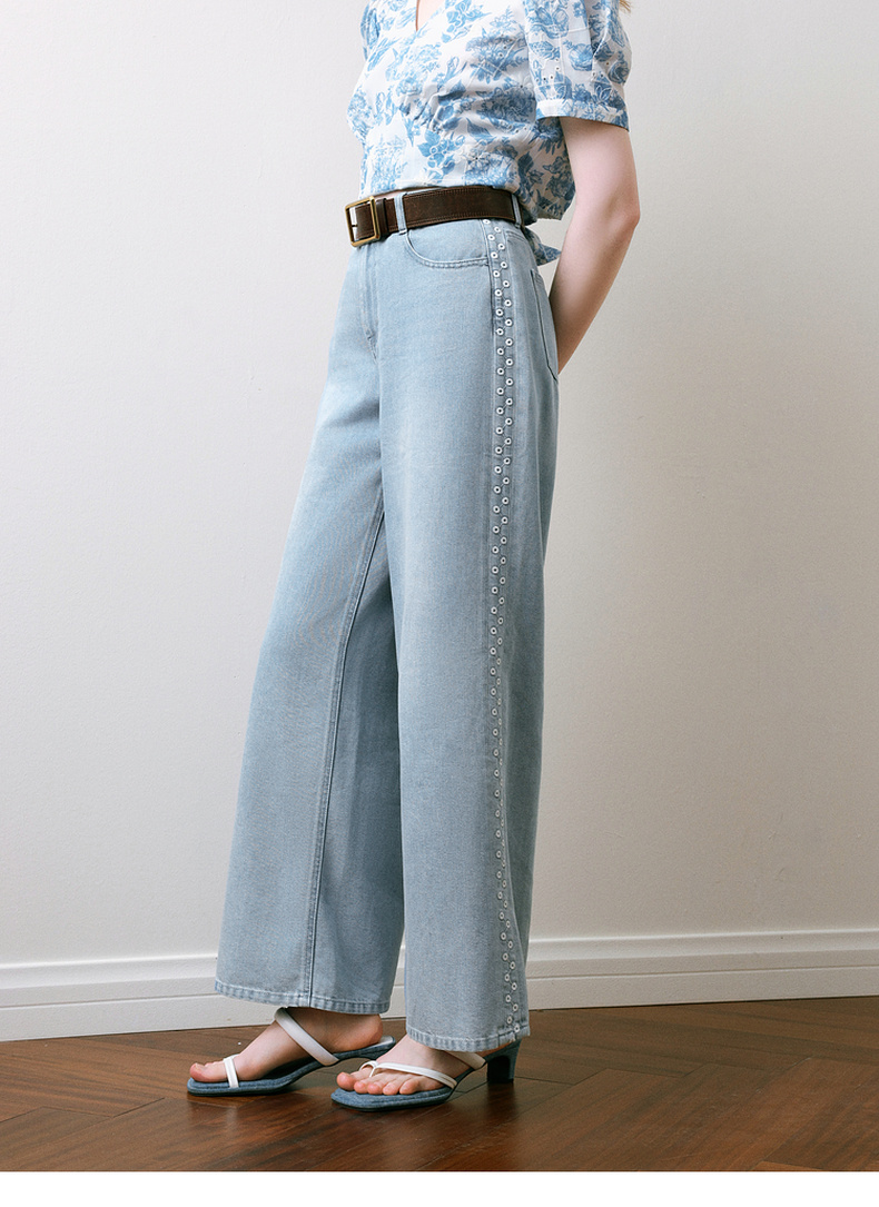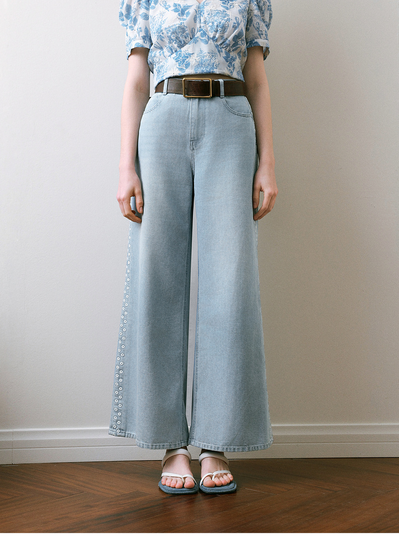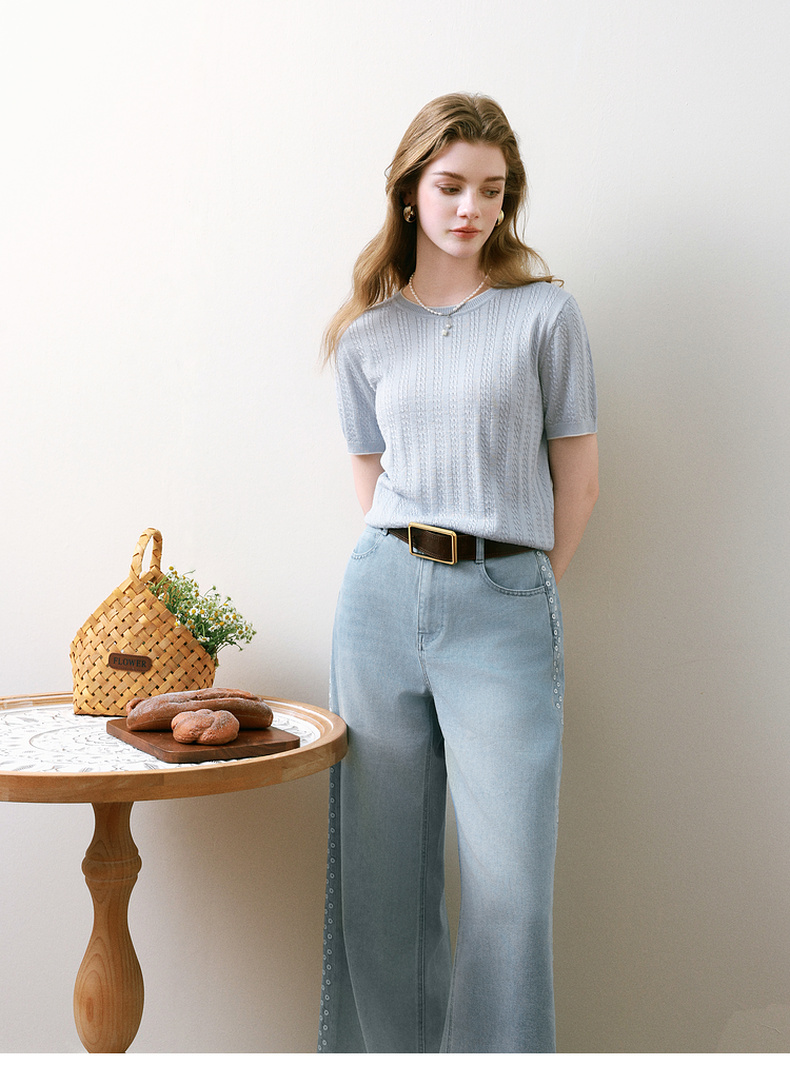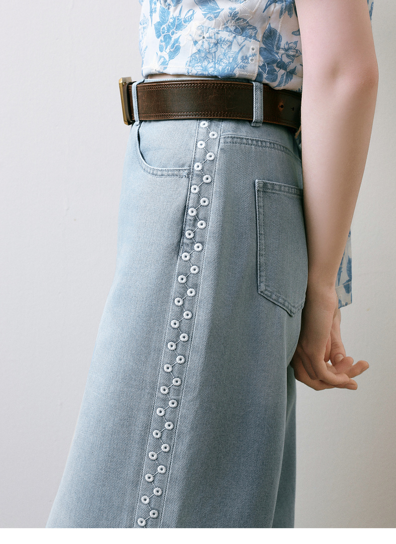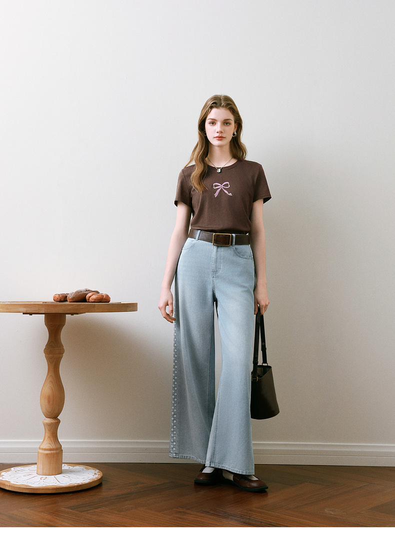 【商场同款】诗凡黎醋酸牛仔阔腿裤2025夏新款爽滑长裤3G4350711