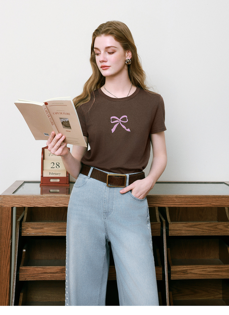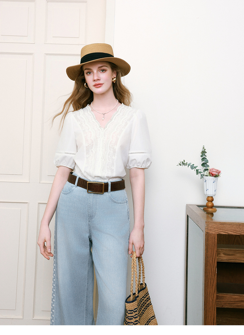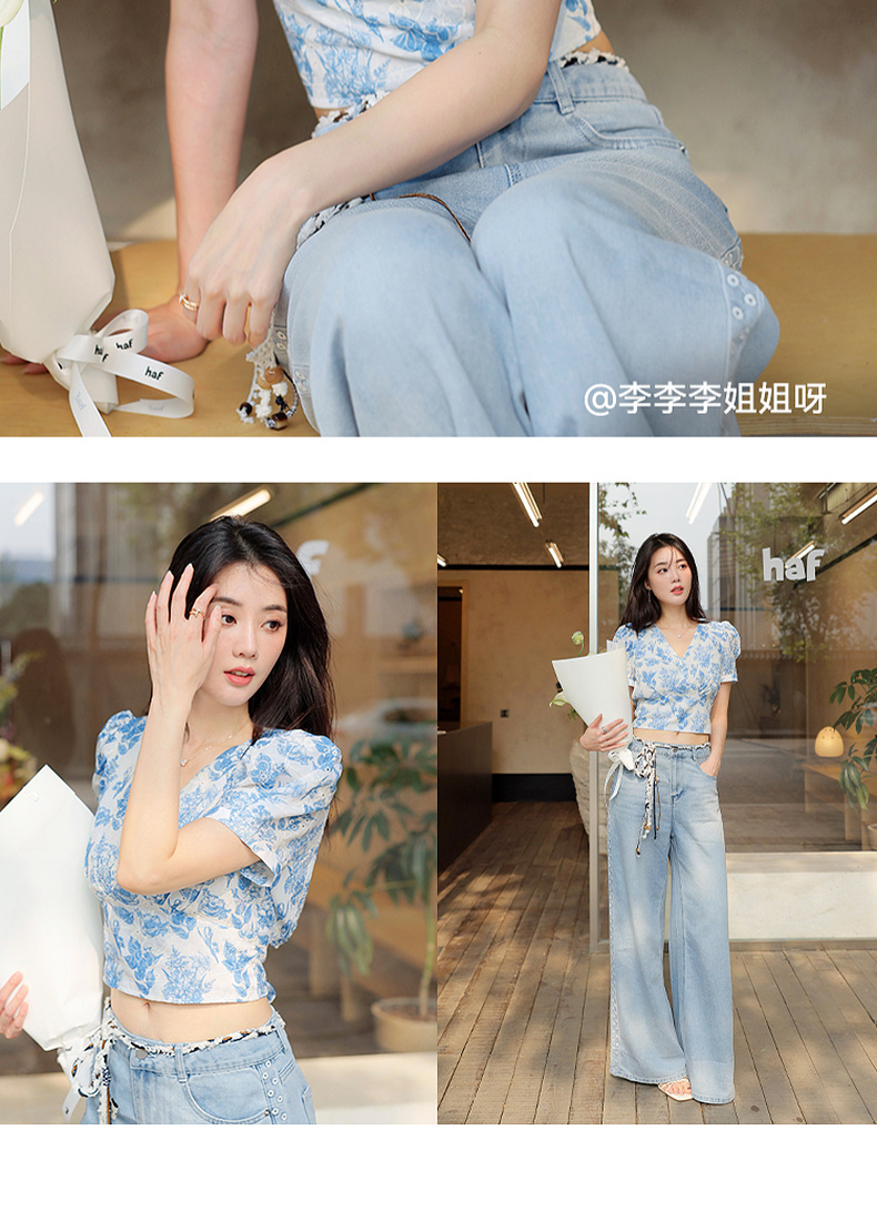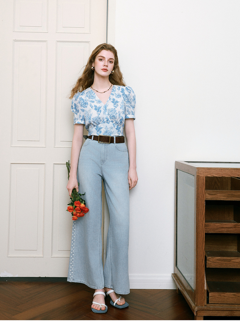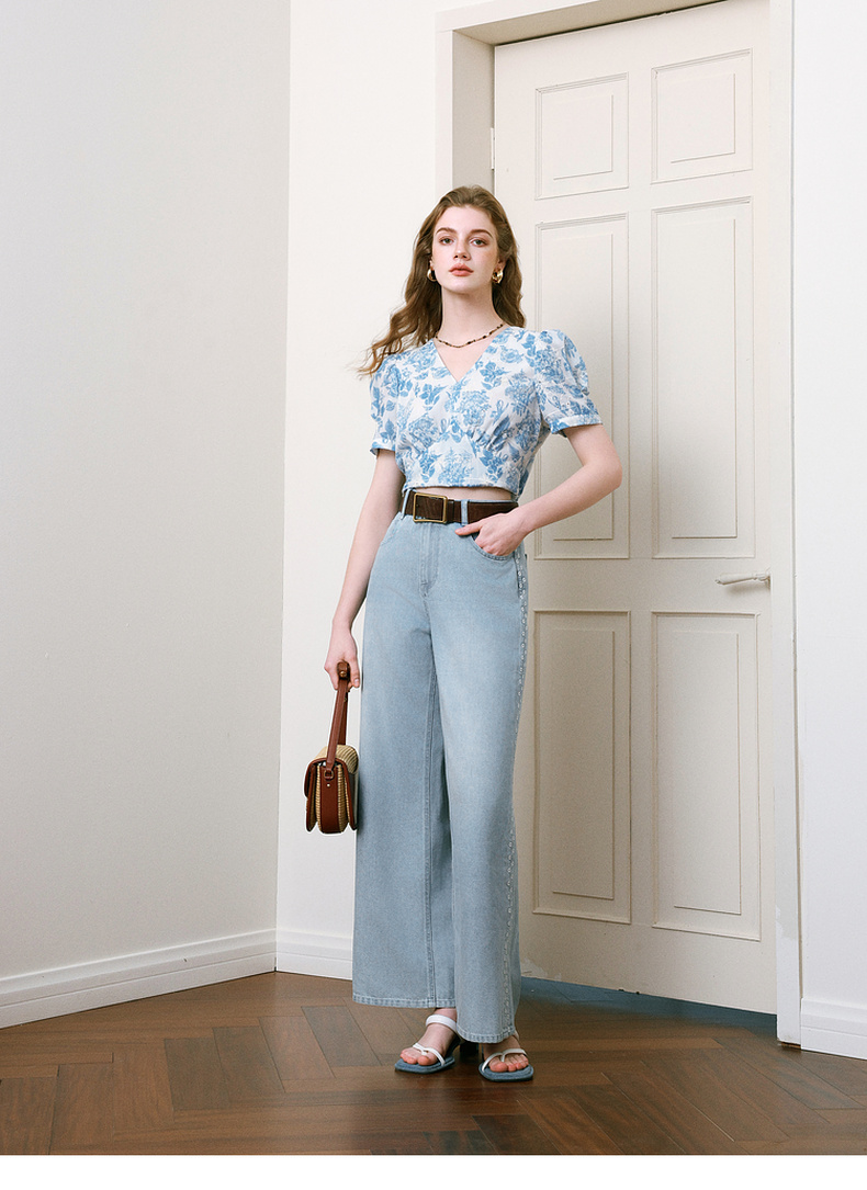 【商场同款】诗凡黎醋酸牛仔阔腿裤2025夏新款爽滑长裤3G4350711