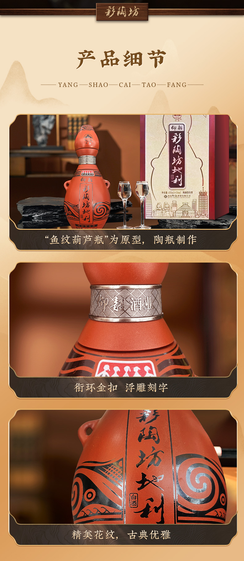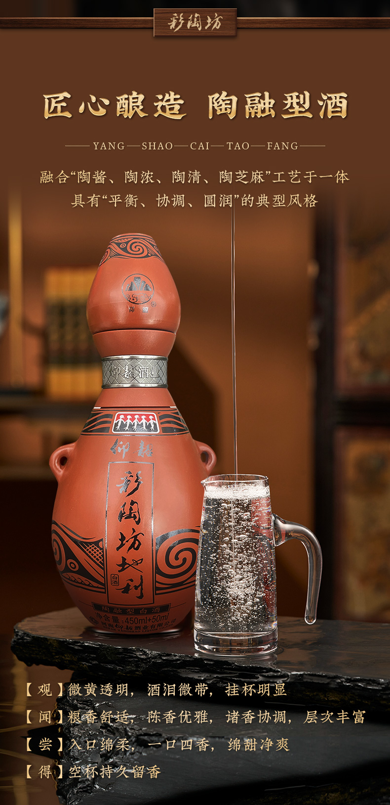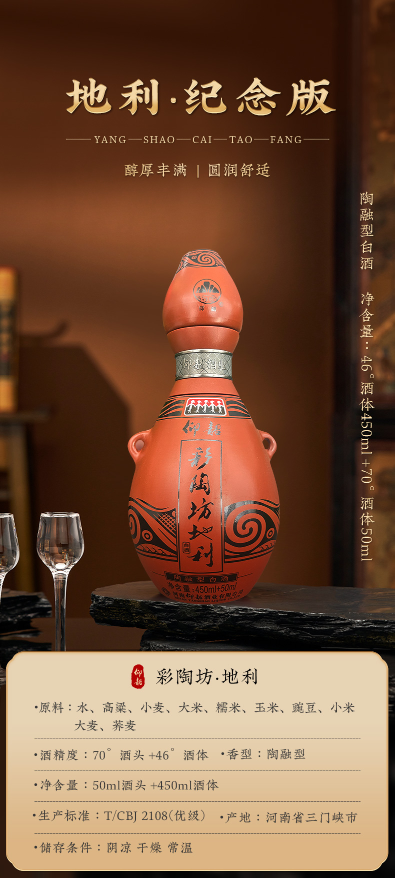 仰韶 彩陶坊 纪念版地利 第五代 陶融型白酒 450ml(46度)+50ml(70°)高度酒头 整箱六瓶