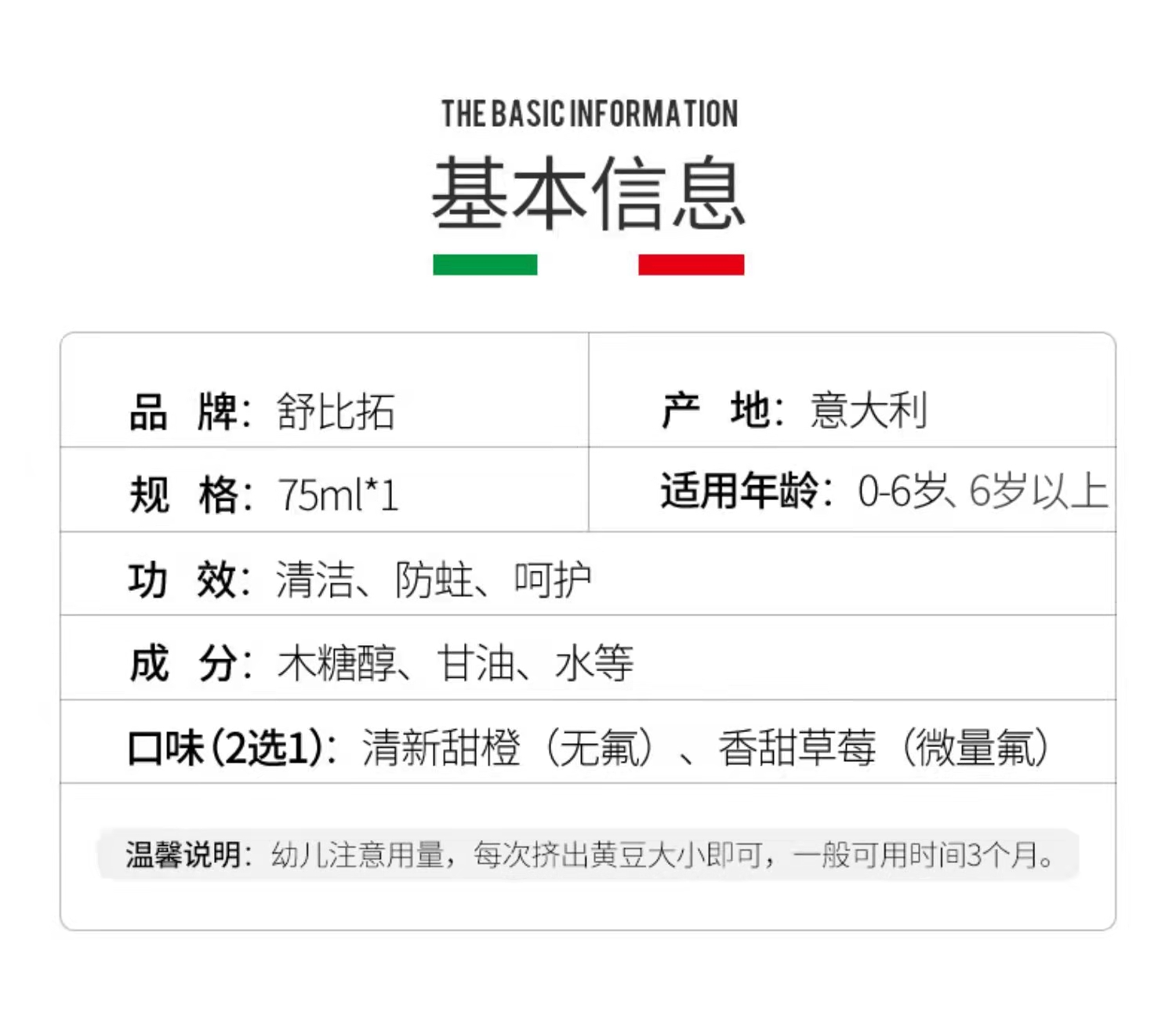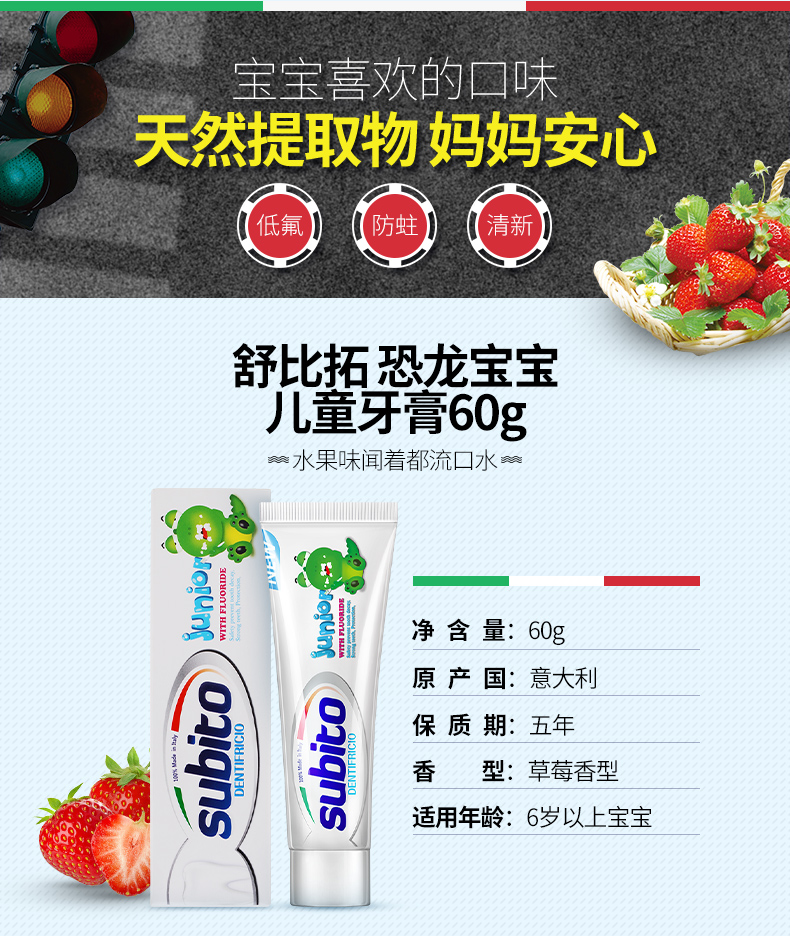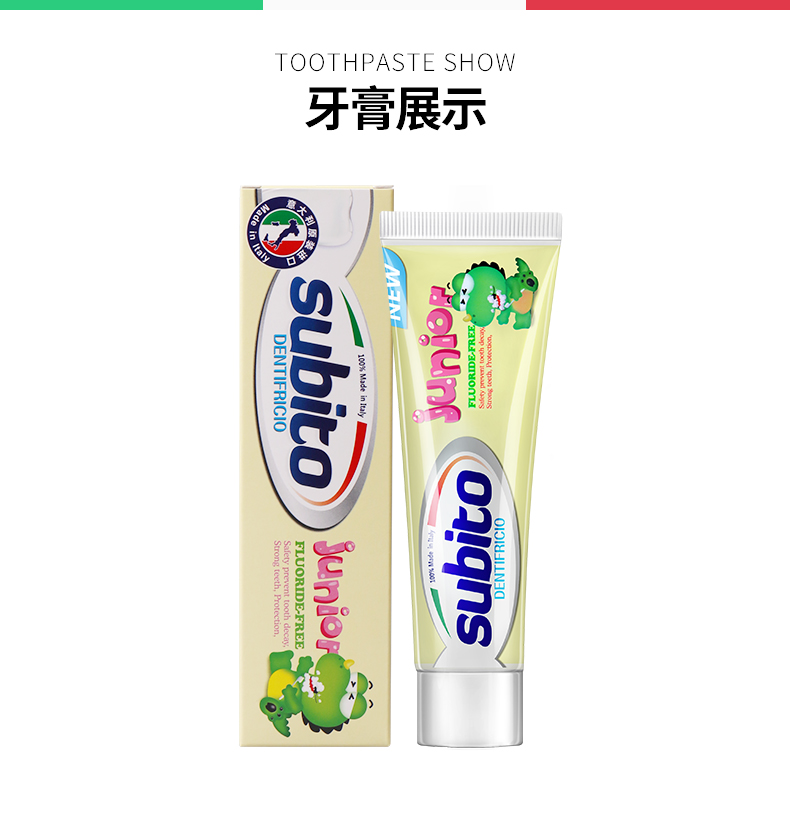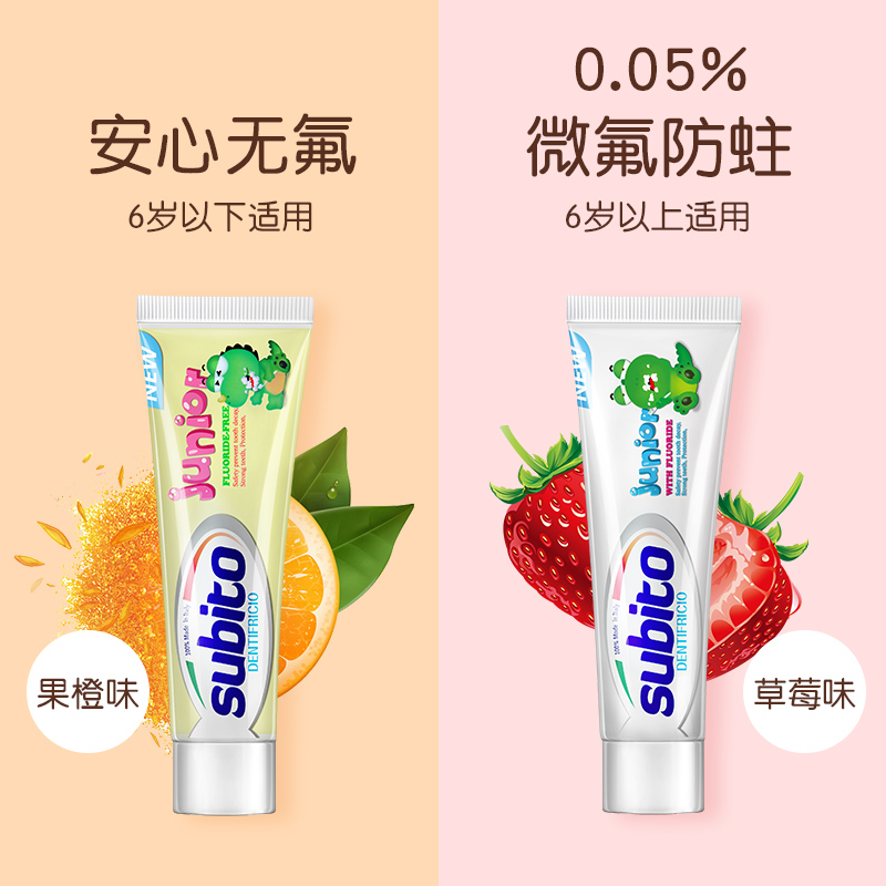 【中欧班列精选】意大利儿童牙膏 原装进口舒比拓 儿童牙膏0-6岁\6岁以上微氟无氟防蛀儿童牙膏