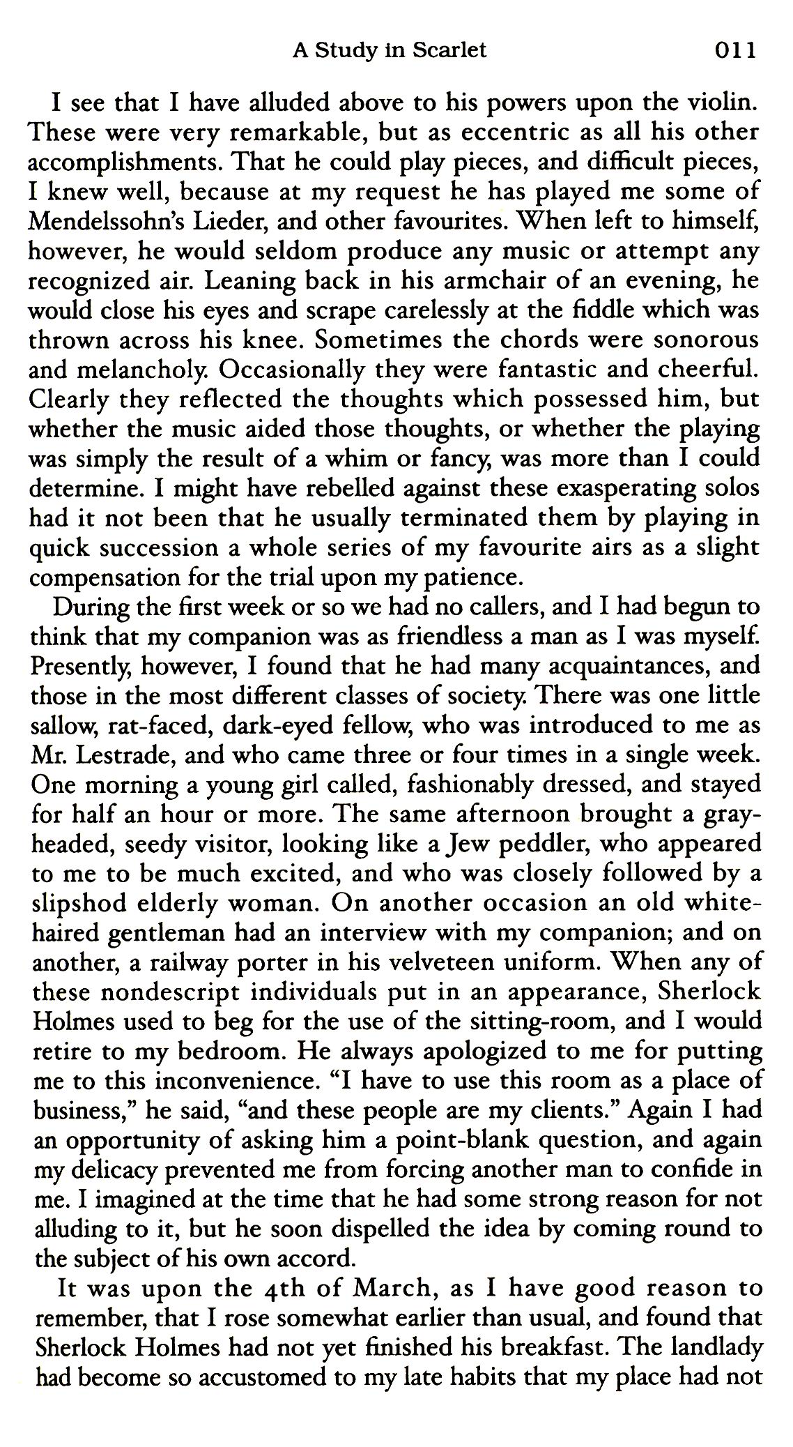 “By Jove!” I cried; “if he really wants someone to share the rooms and the expense, I am the very man for him. I should prefer having a partner to being alone.” Young Stamford looked rather strangely at me over his wineglass.