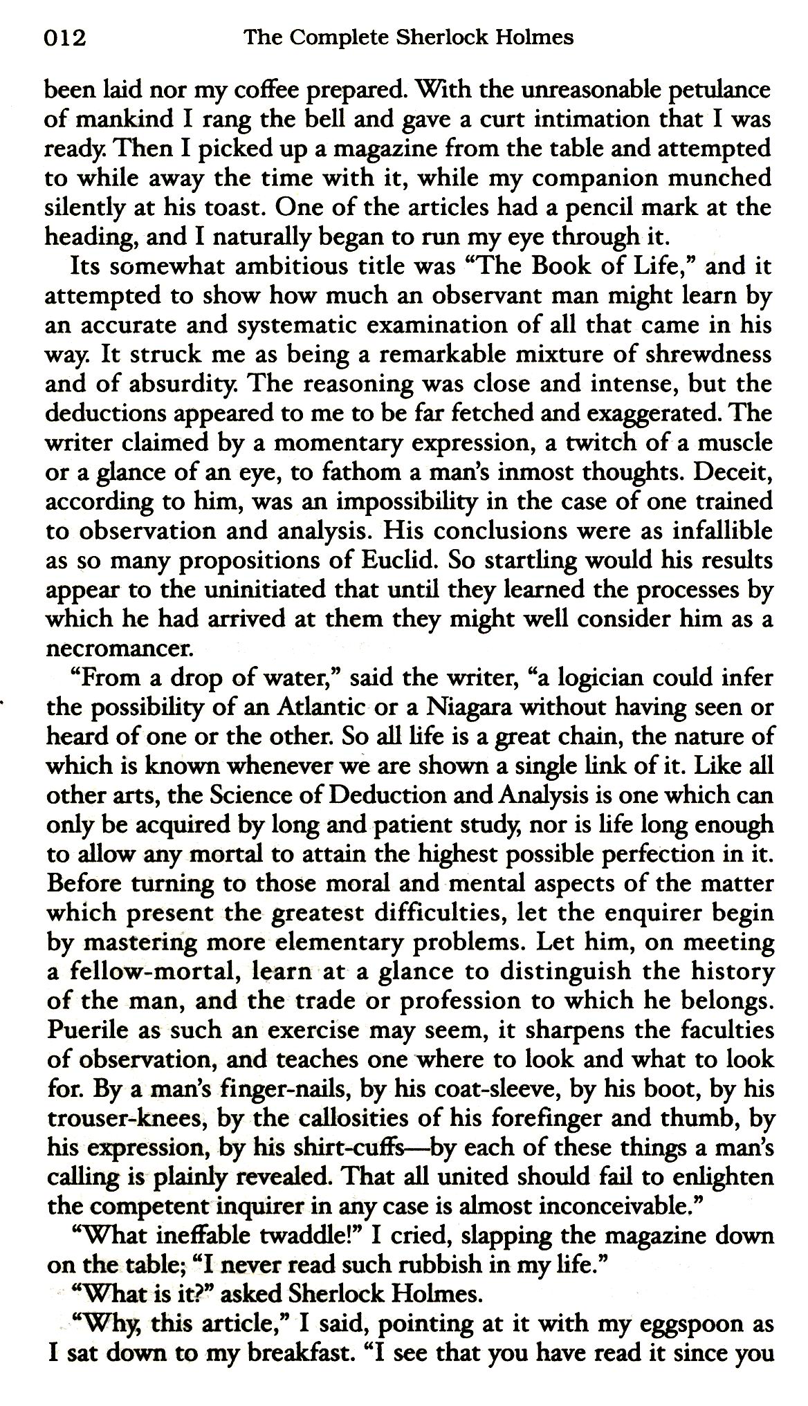 For those who have not made-up their minds, it might be useful if they read Sir Arthur Conan Doyle's Autobiography, Memories and Adventures. They will undoubtedly come away with the notion that Sherlock Holmes resembles in many ways Dr. Joseph Bell, one of the teachers at the medical school of Edinburgh University…
