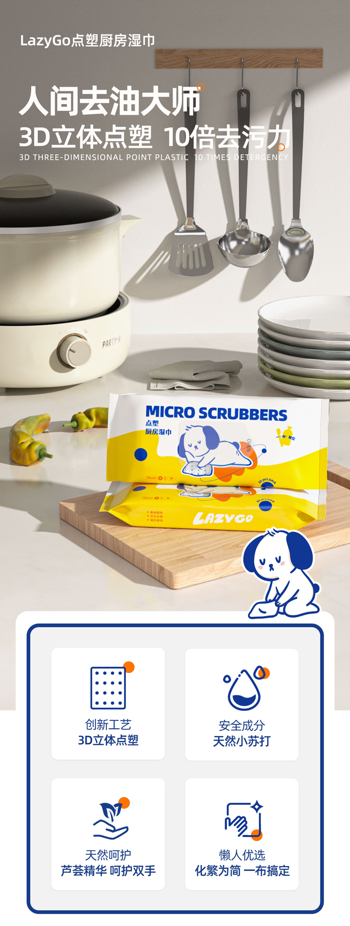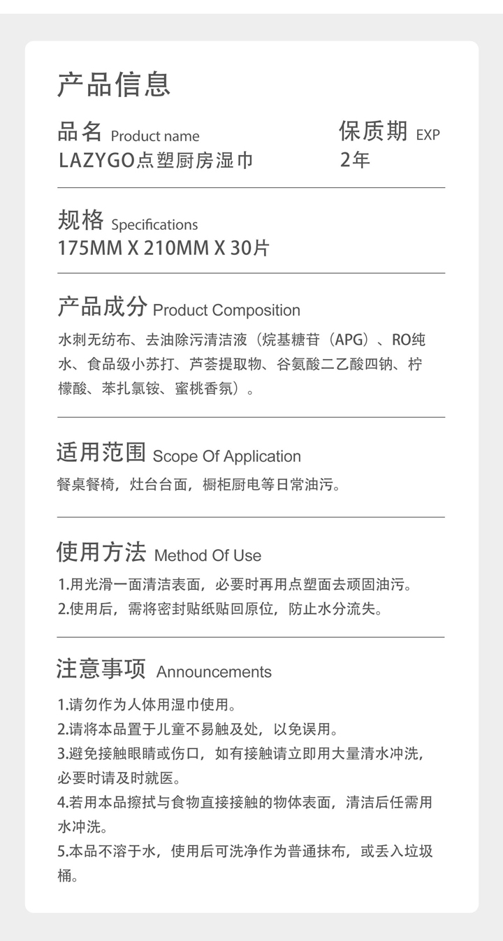 Lazygo点塑厨房湿巾