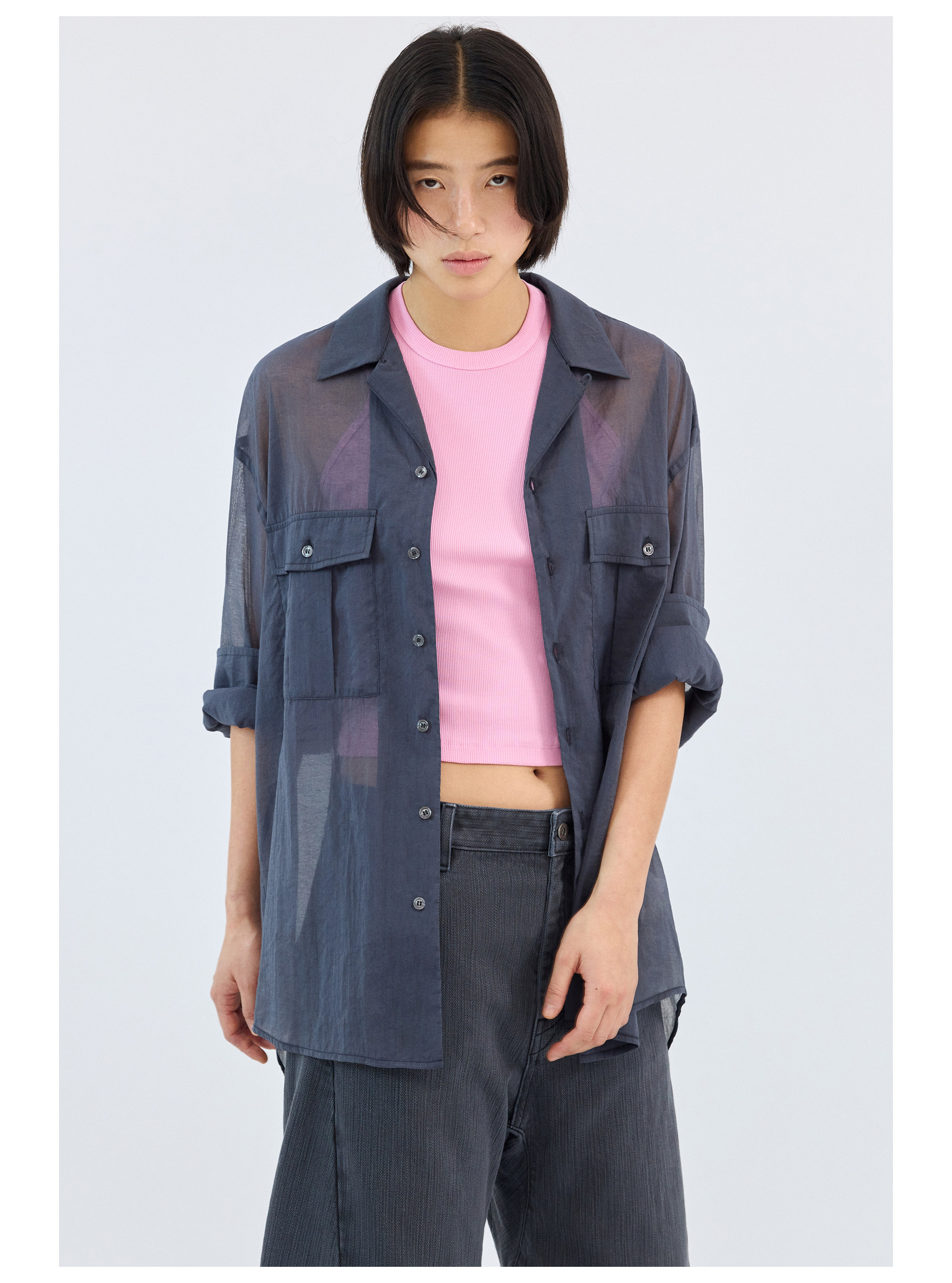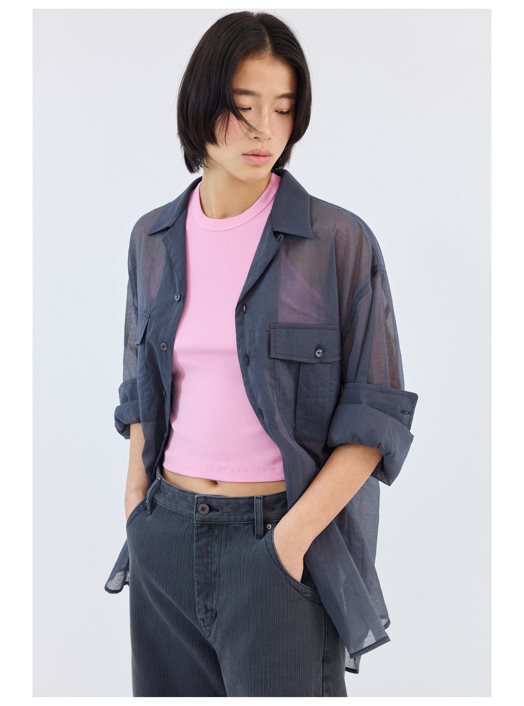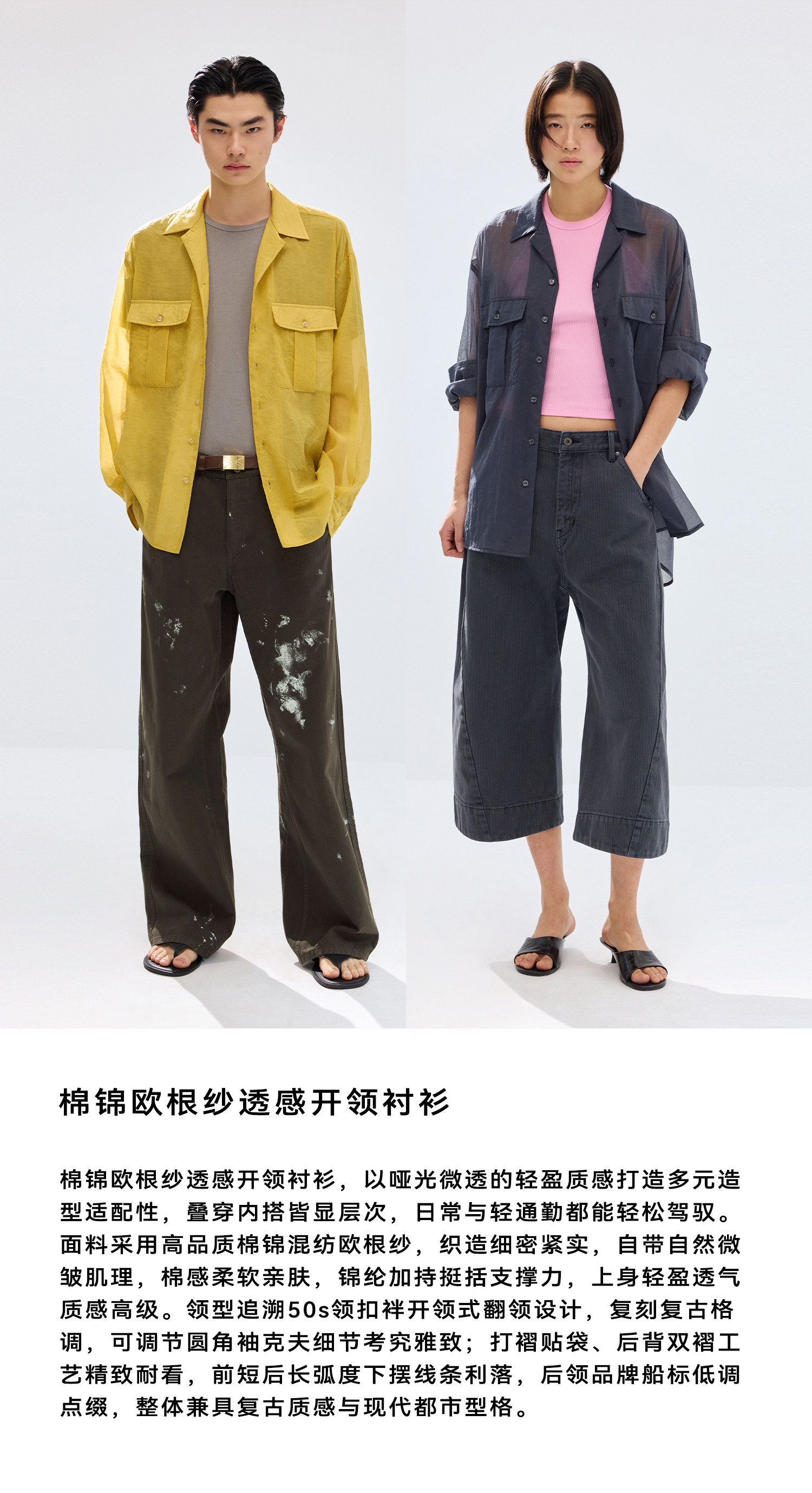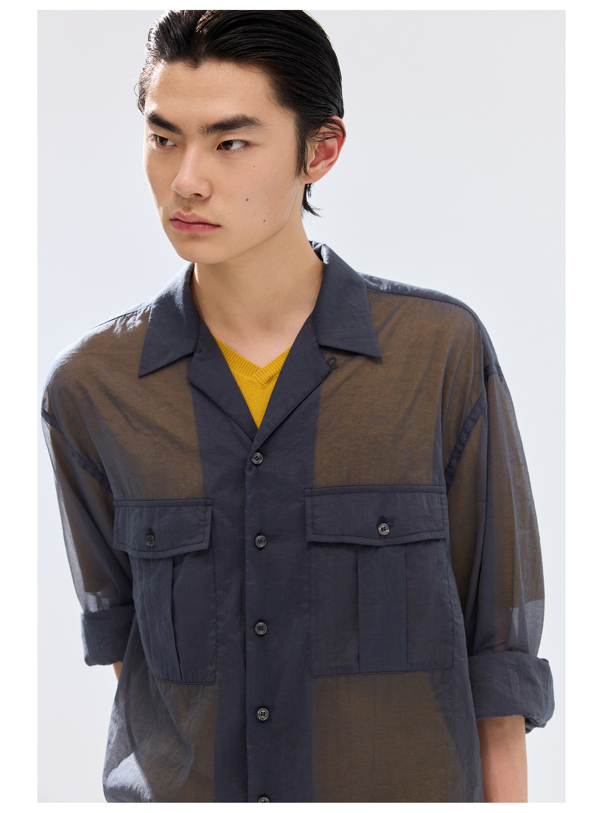 Simple Project/Y2686/棉锦欧根纱透感开领衬衫