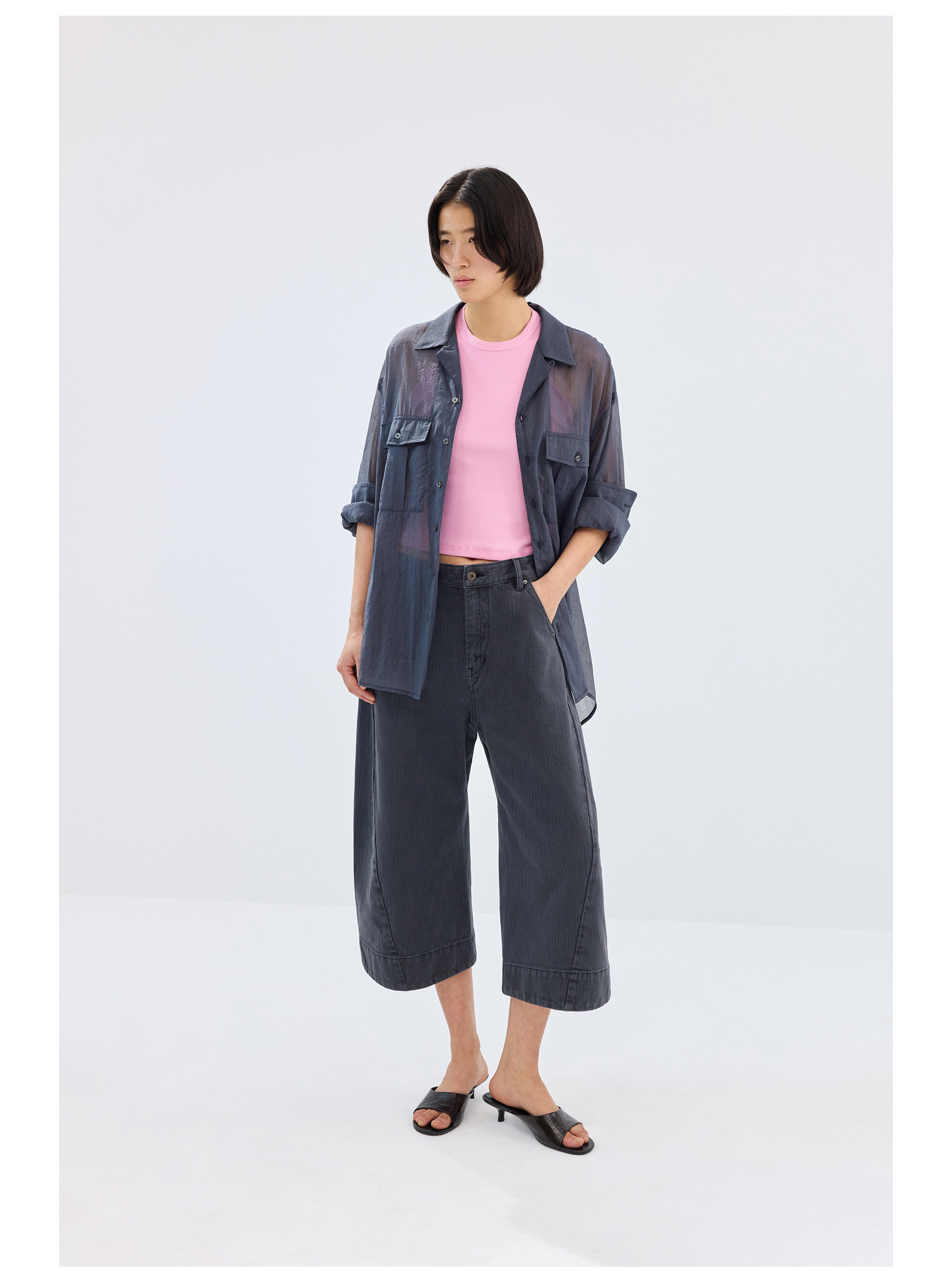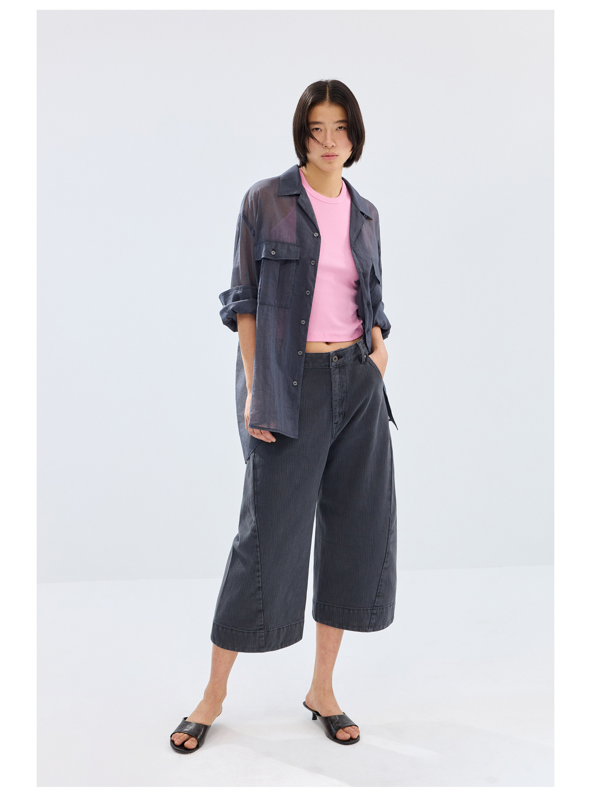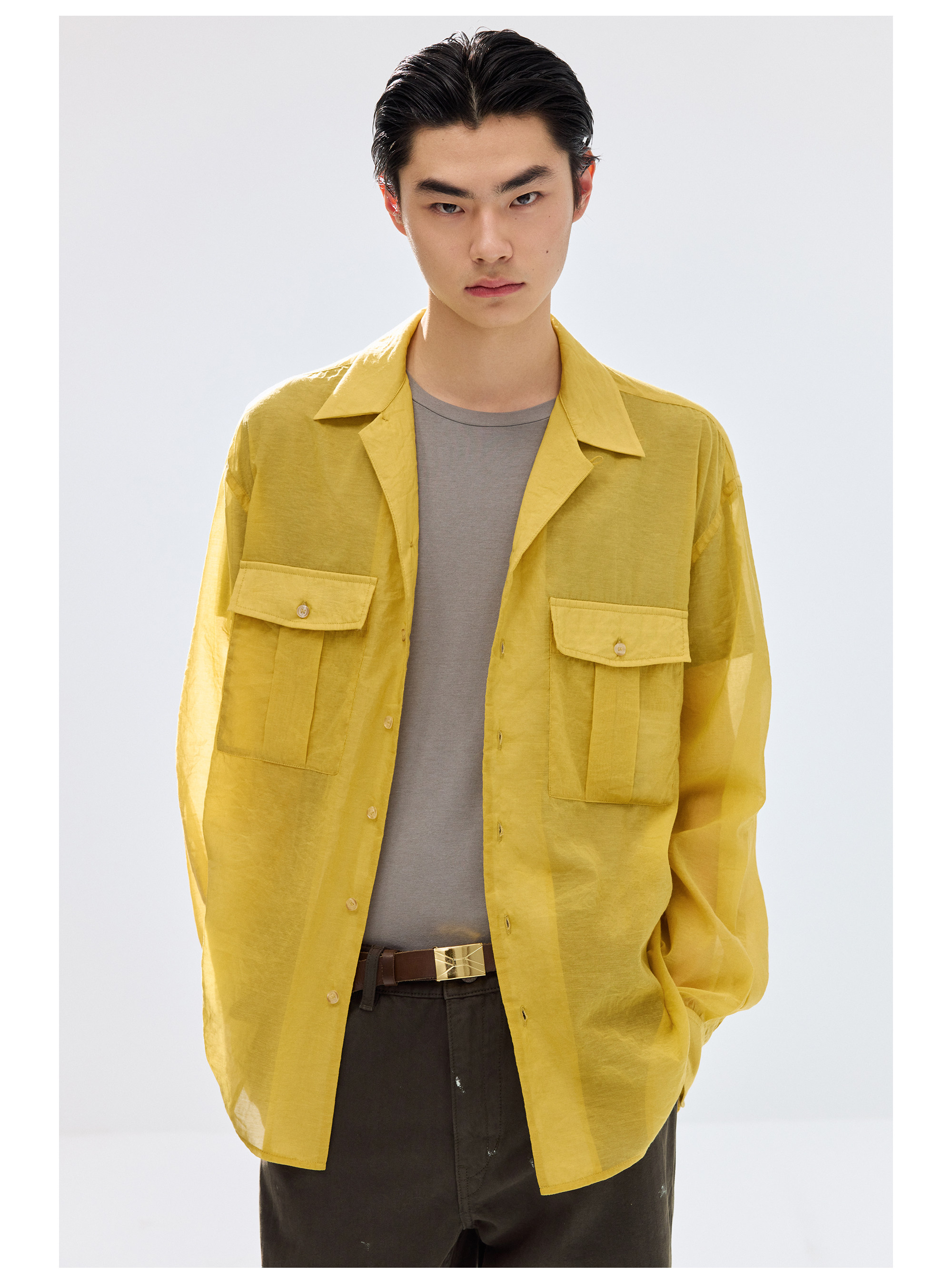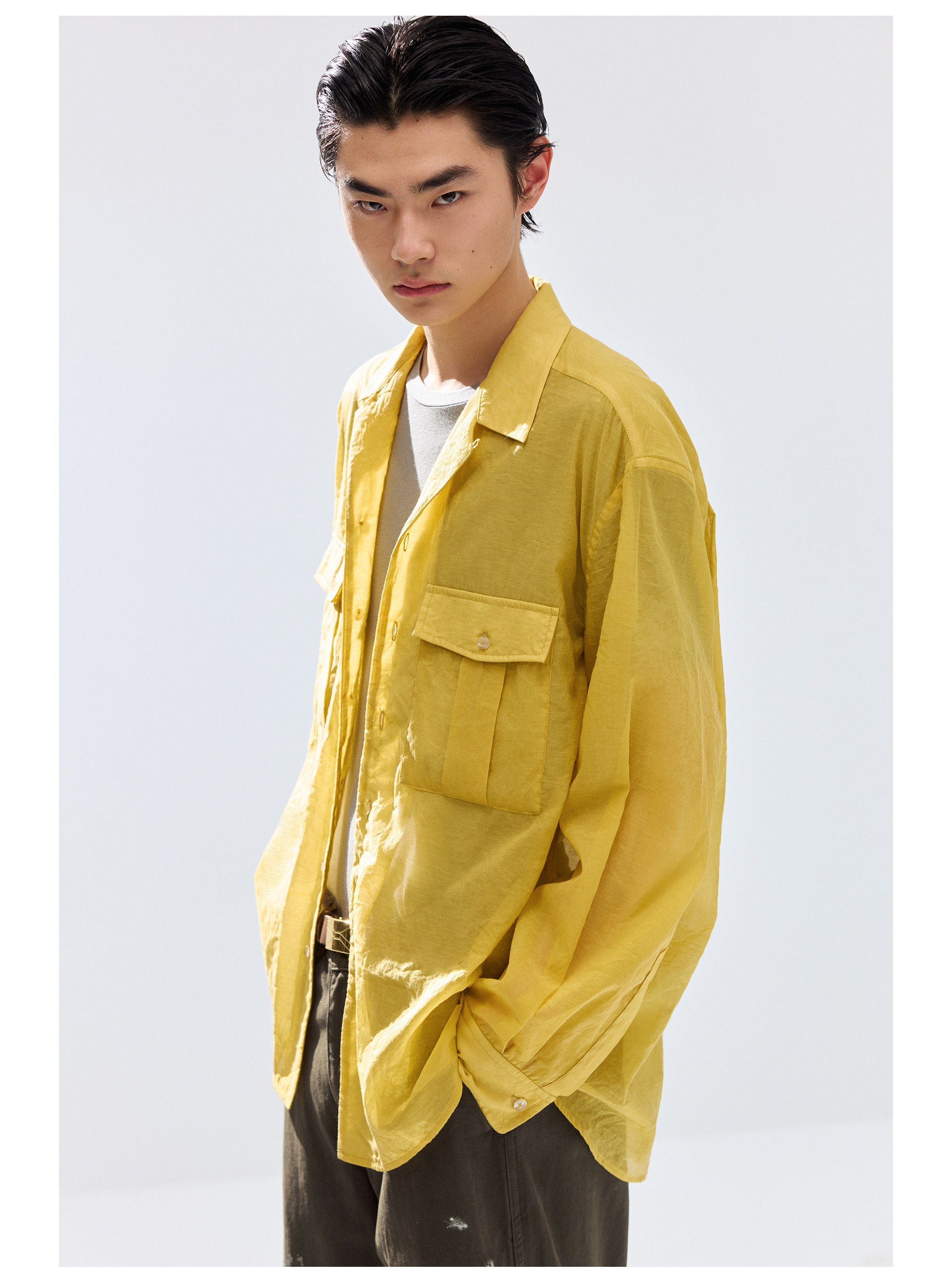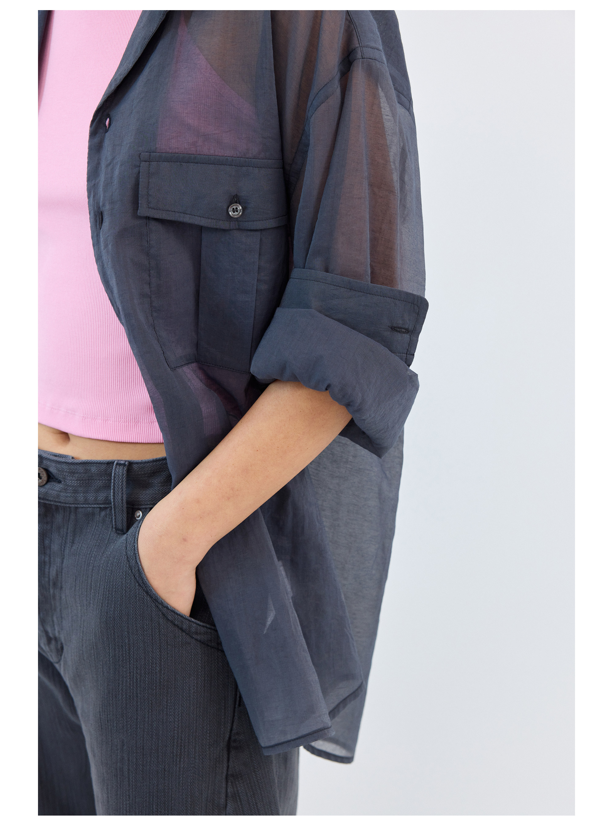 Simple Project/Y2686/棉锦欧根纱透感开领衬衫