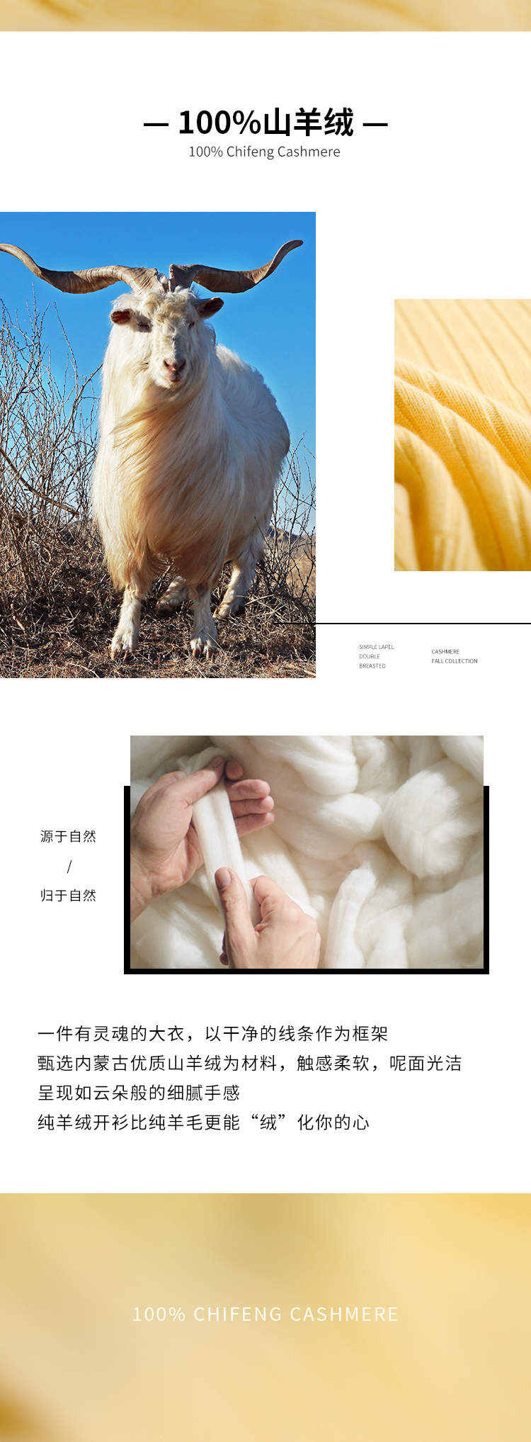 东黎羊绒是赤峰东荣集团自主品牌,自有牧场/羊绒制品全产业链优势,实现了羊绒从“牧场”到“商场”的华丽转变。