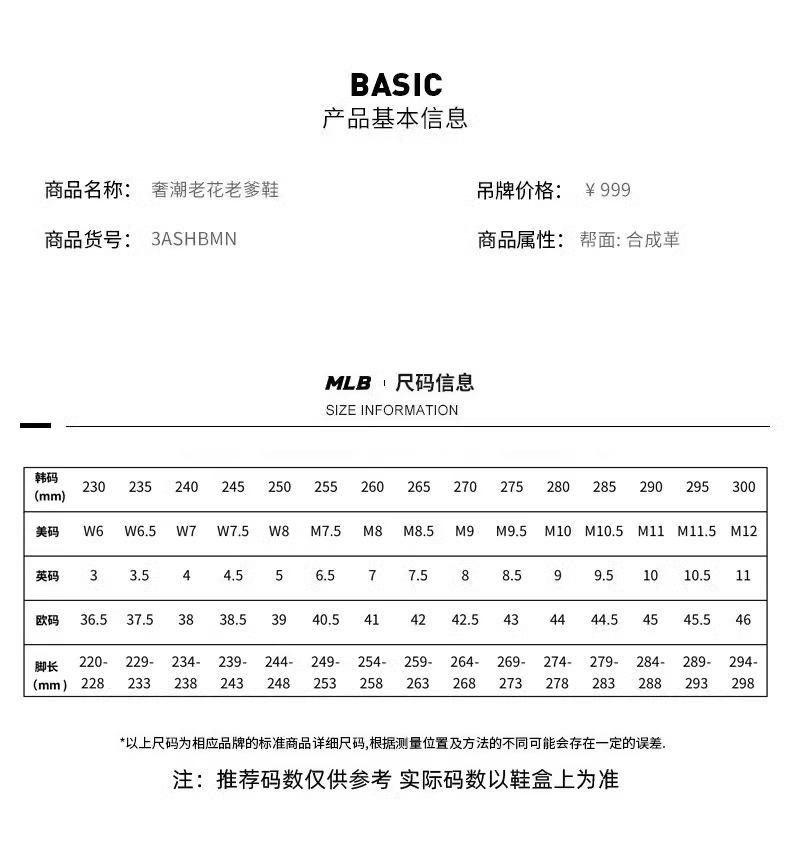 MLB男女情侣厚底休闲运动鞋时尚潮流经典老花老爹鞋3ASHBMN3N