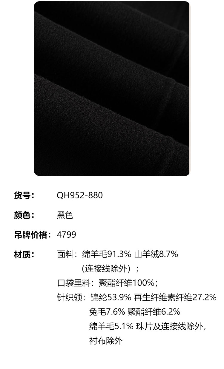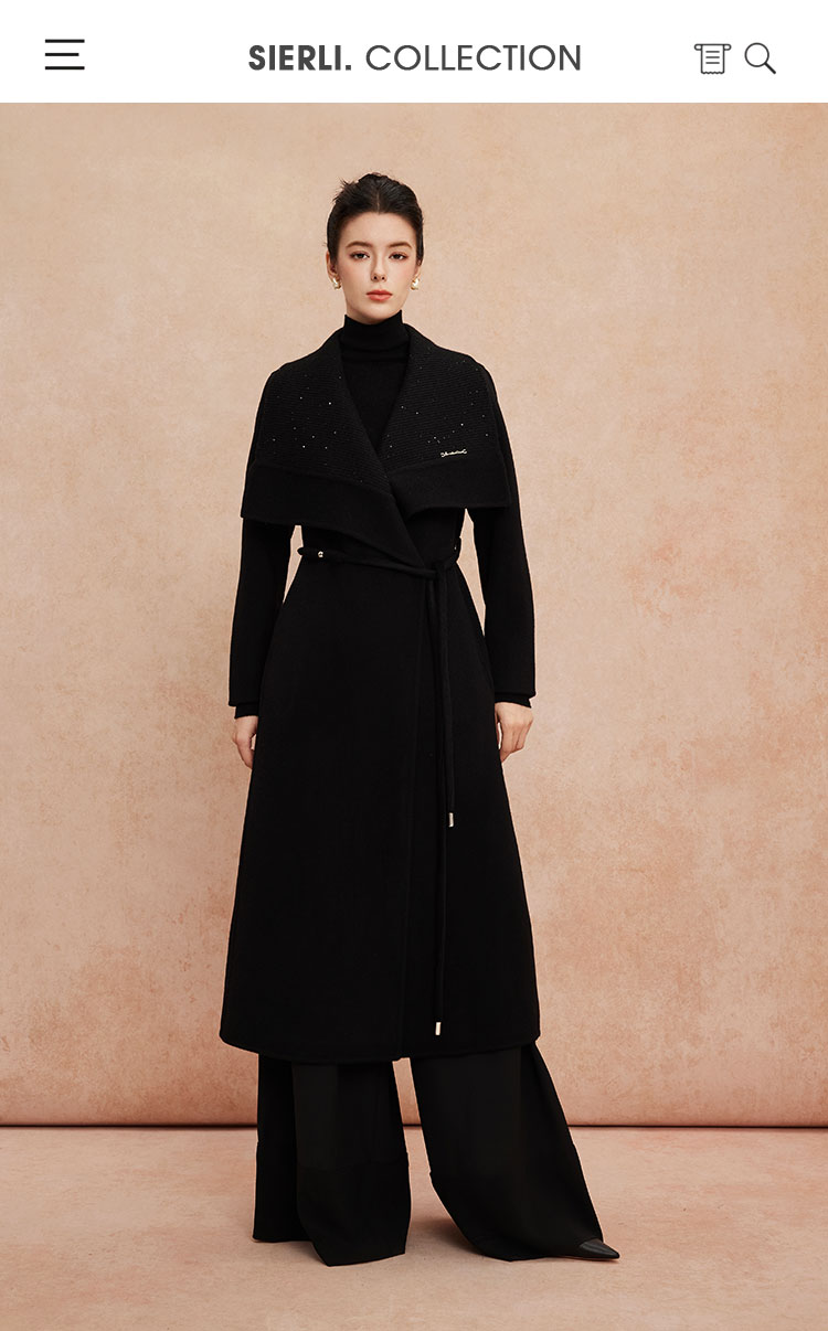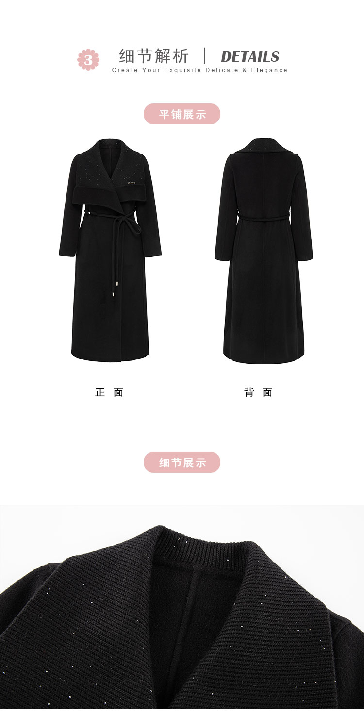 QH952斯尔丽25新款针织配色进口小亮片大翻领收腰放摆气质长大衣