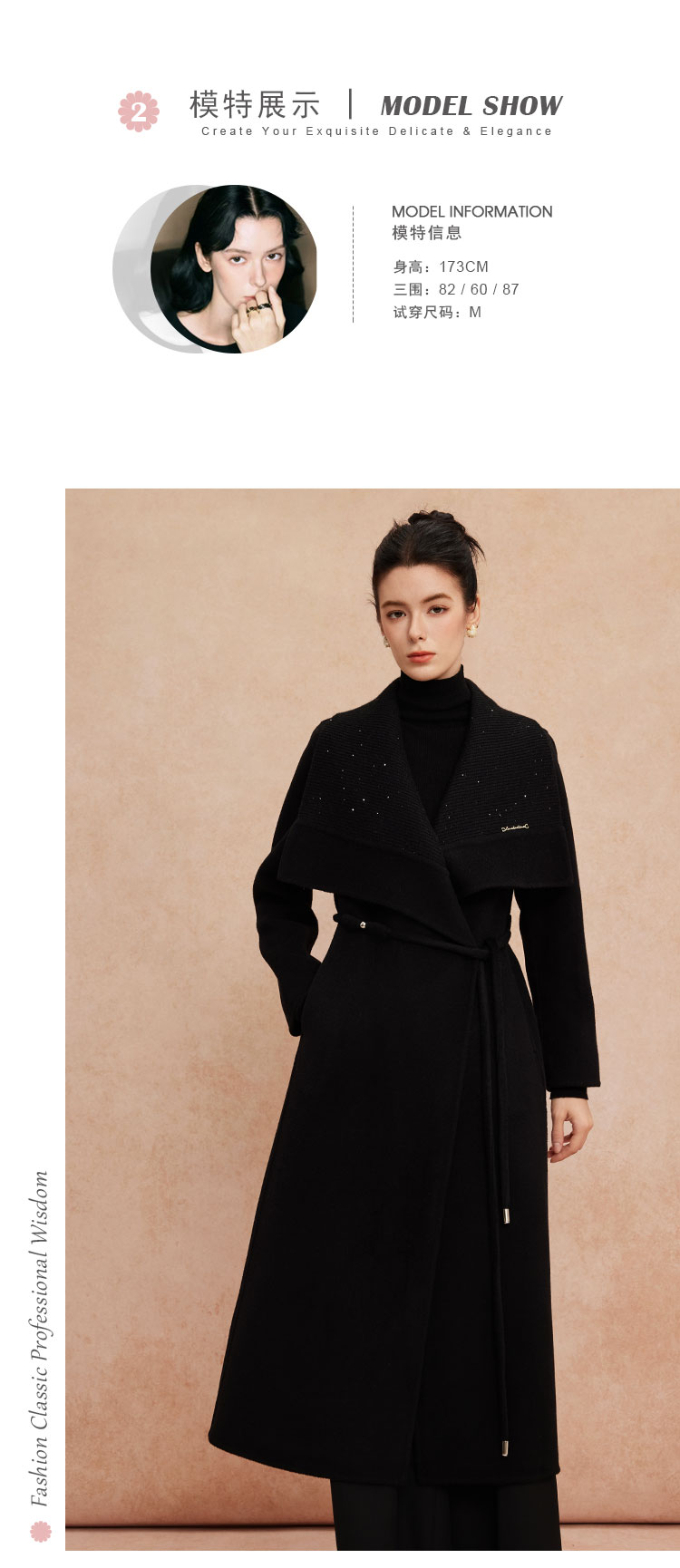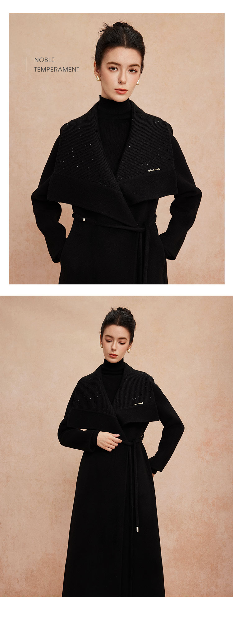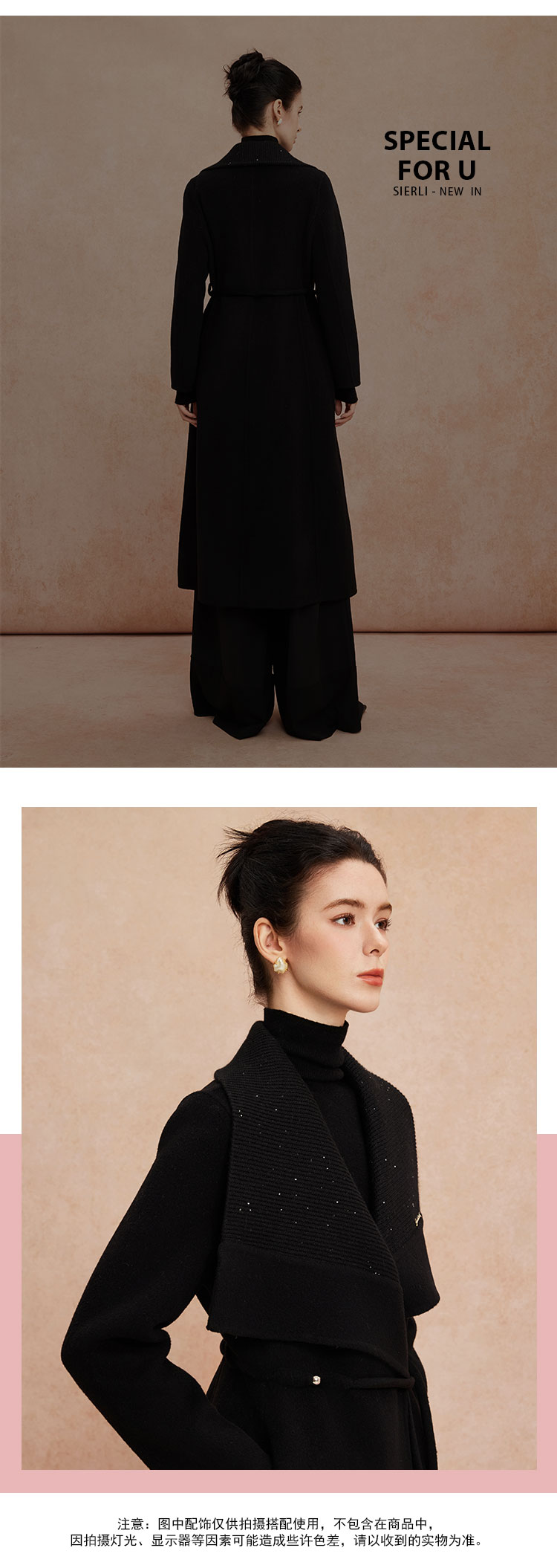 QH952斯尔丽25新款针织配色进口小亮片大翻领收腰放摆气质长大衣