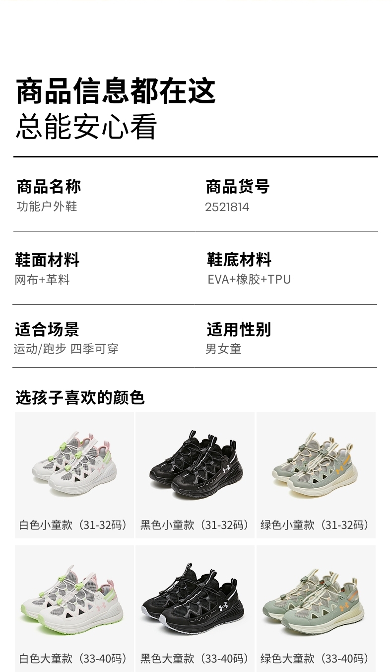 【捡漏特价! 】Under Armour安德玛儿童新款舒适运动凉鞋/运动鞋【爆款大合集】