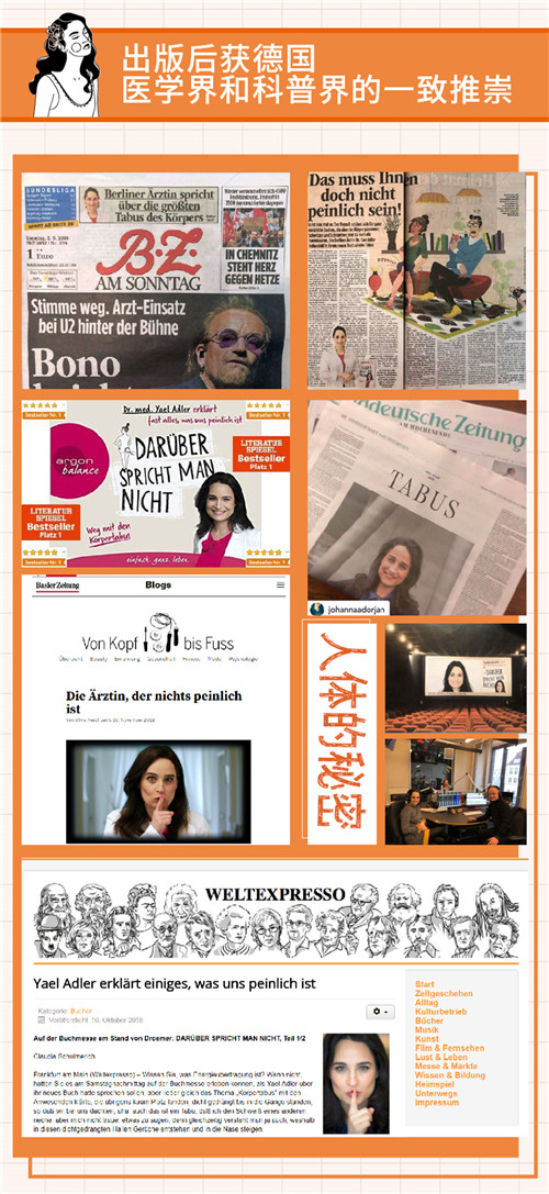 陈宏翔【华中科技大学同济医学院附属协和医院皮肤科教授、博士生导师,美国哈佛医学院麻省总医院皮肤生物学研究中心研究员】这是一本有关人体私密话题的特辑。本书作者,阿德勒博士,带着一位皮肤科医生的“科学关怀”为我们开启了这个神秘话题。科学与严谨赋予了本书持久的生命力,妙趣横生的文字和幽默诙谐的插图令每一位读者都忍俊不禁、难以释卷。不得不说,这是一本少有的兼具科学性与可读性,能让人在轻松愉悦中一口气读完的医学科普图书。我真的非常好奇,让热情奔放的西方人都感到羞涩的话题,会在含蓄内敛的东方读者心中碰撞出怎样的精彩?