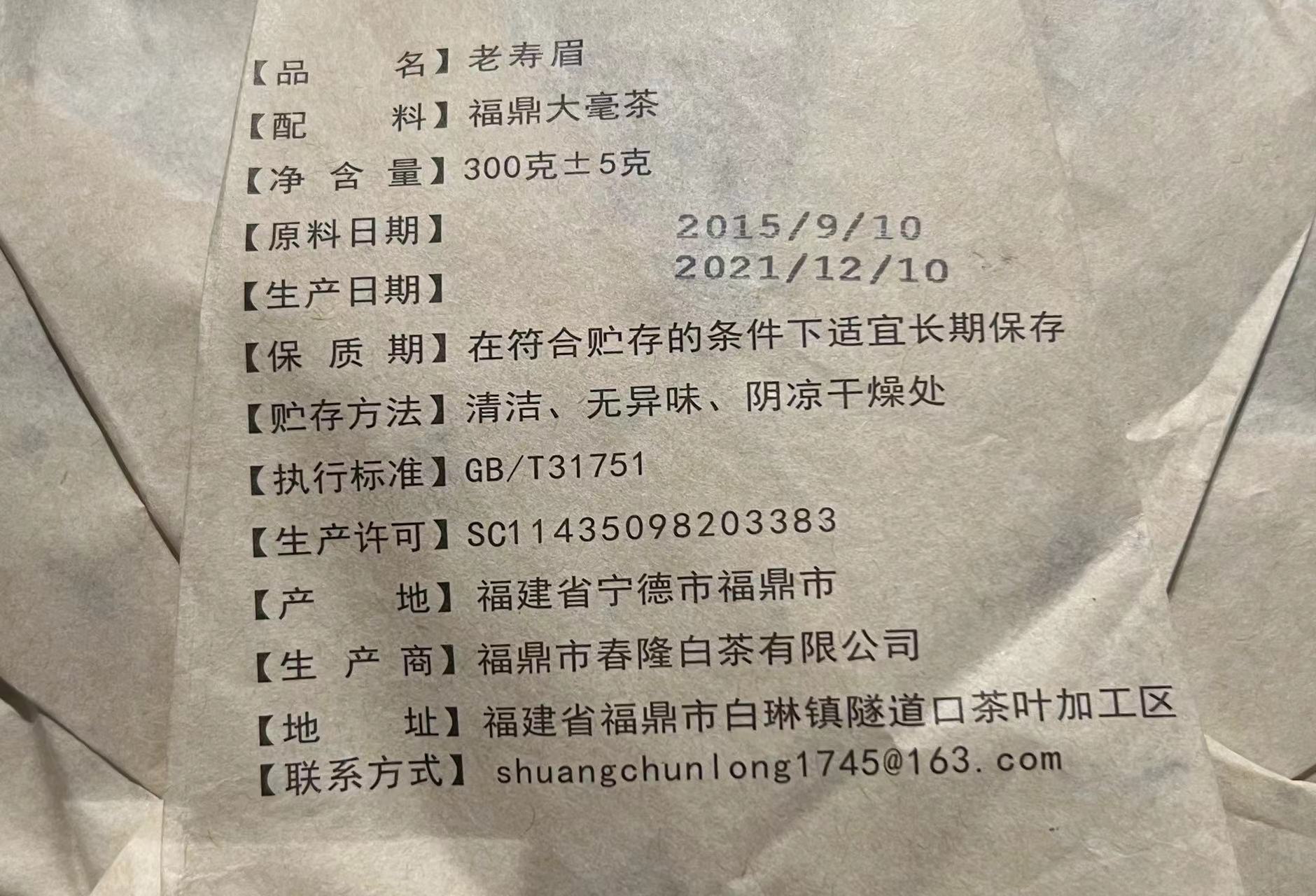 【双春隆】2015年老寿眉300g-白茶非遗传承人吴健监制