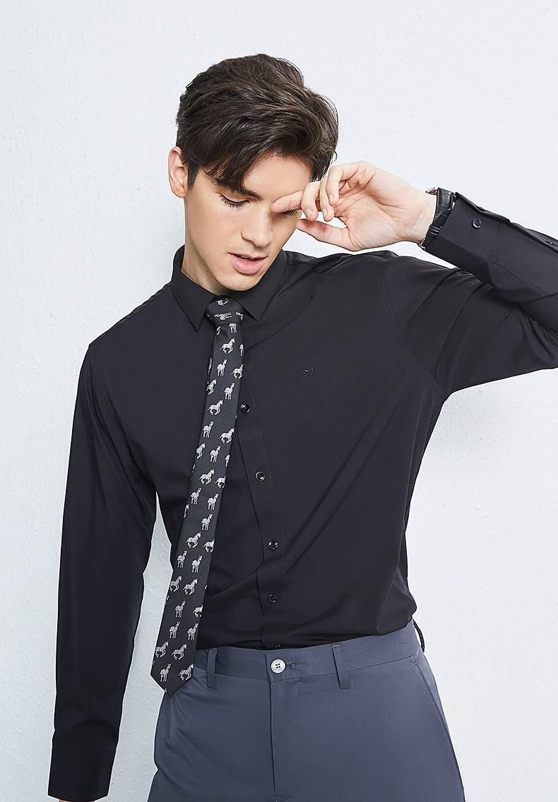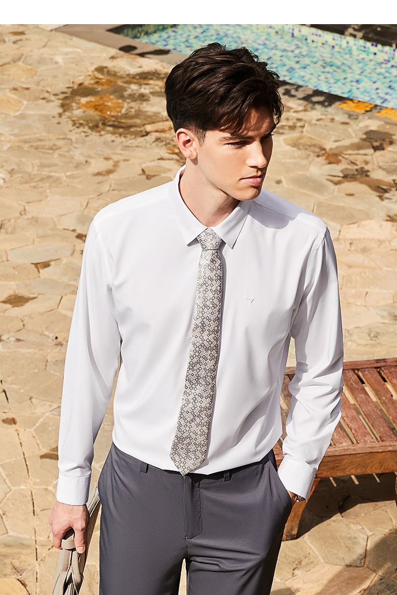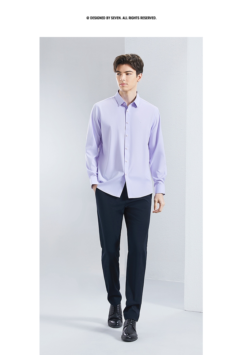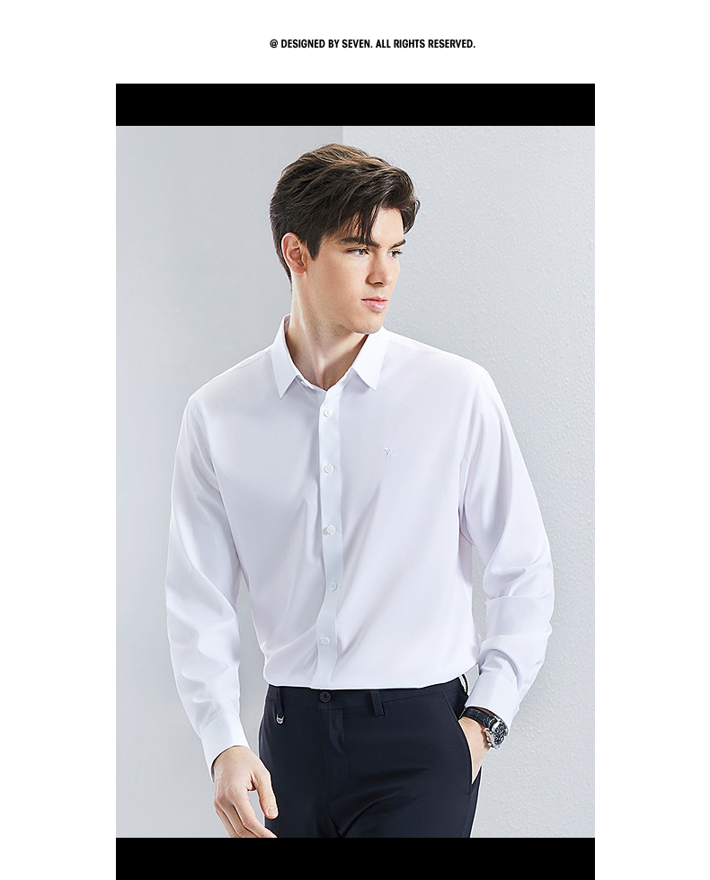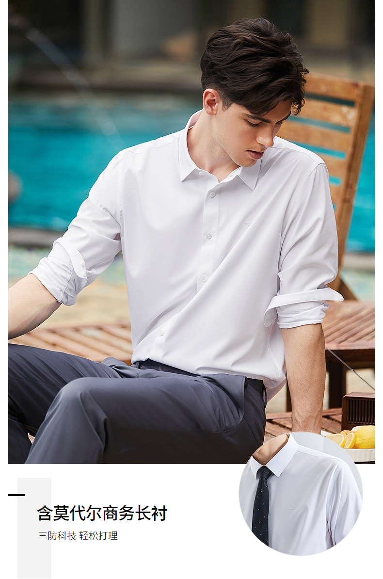 【三防】柒牌男装长袖衬衫2024春季新款含莫代尔商务百搭翻领衬衣 126A71050