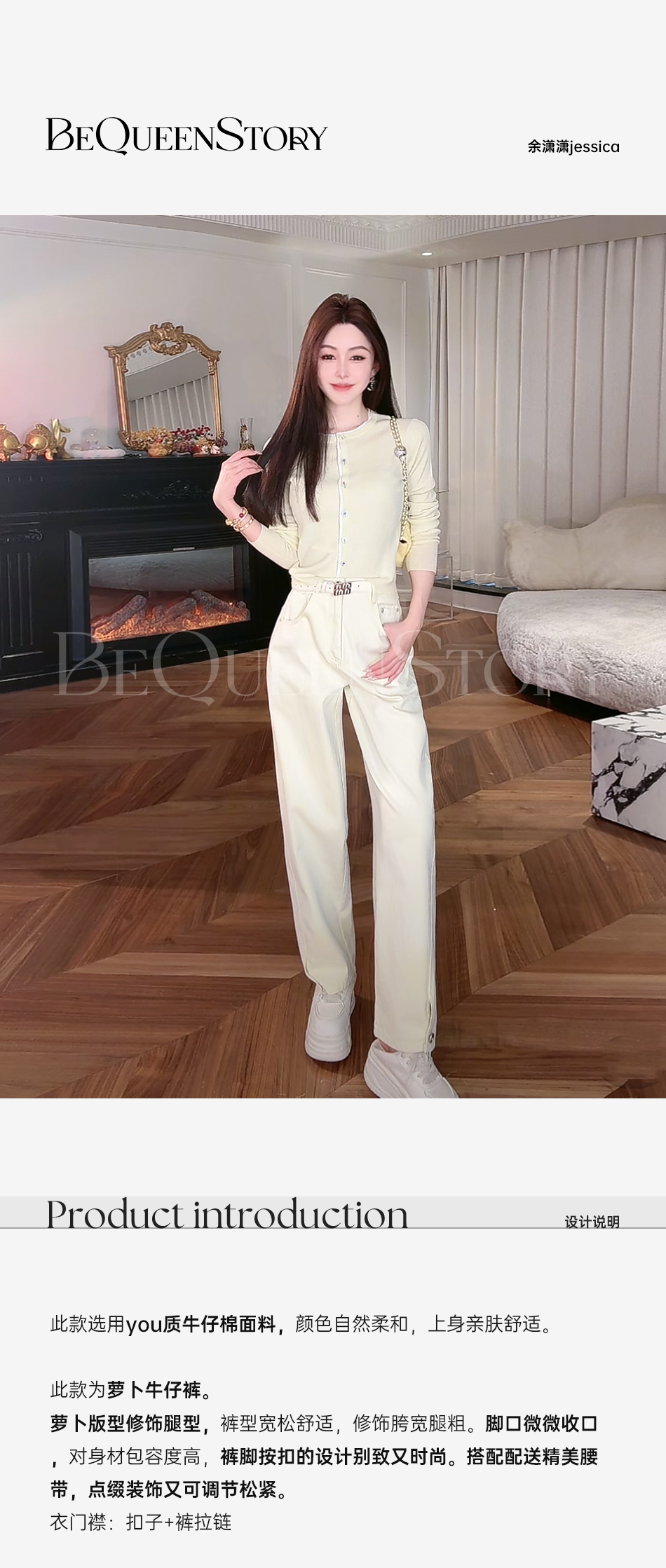 余潇潇【香草奶贝】2025春装新款轻奢百搭宽松舒适显瘦萝卜牛仔裤
