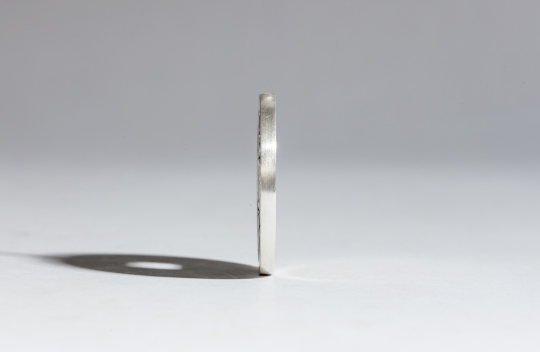 930矿银制作,直径约28.5毫米,厚约2.5毫米,孔径约5毫米,重约11克(手工作品有少许误差,请知晓)。