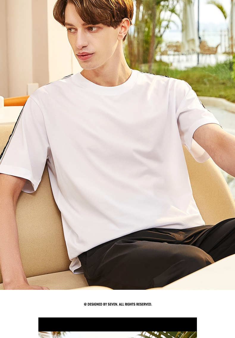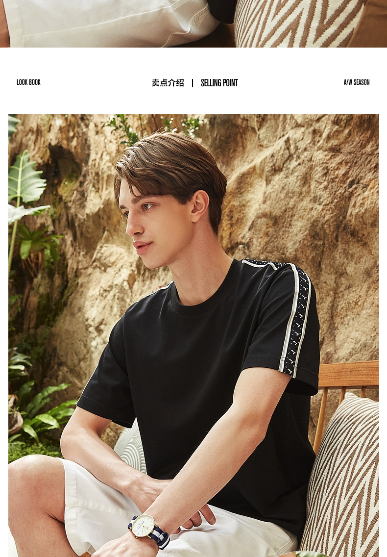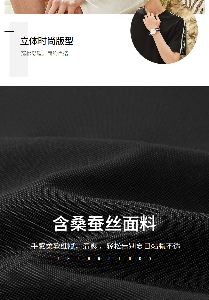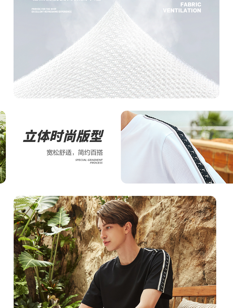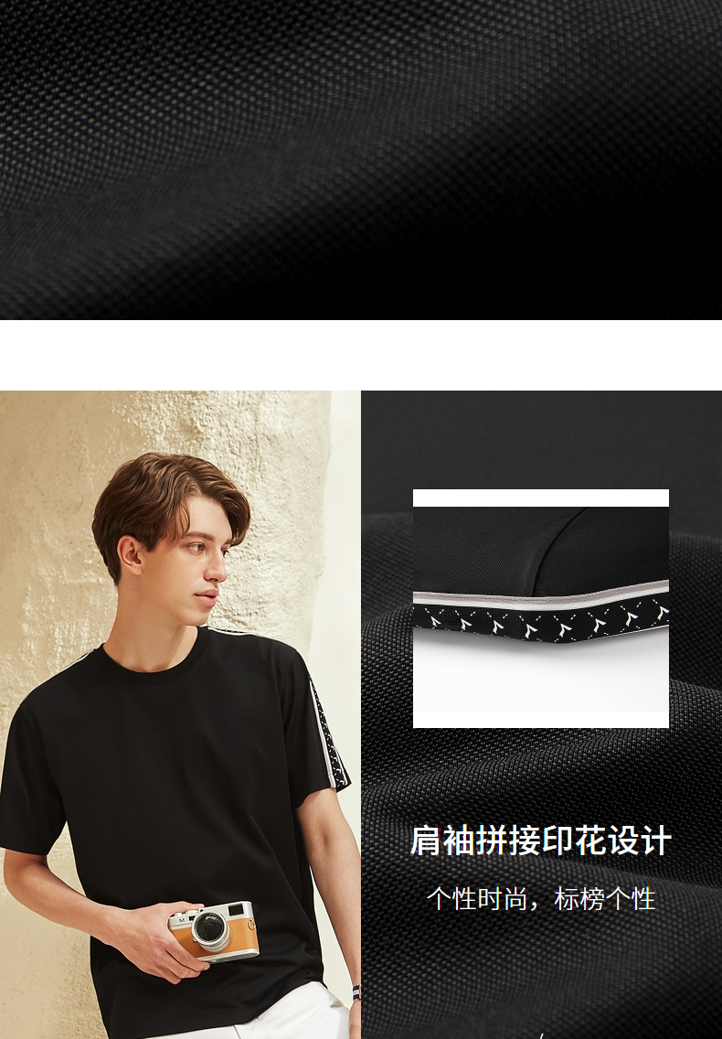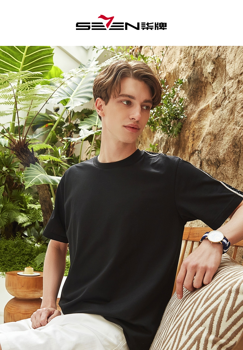 【含桑蚕丝】柒牌男士短袖t恤夏季新款印花拼接休闲运动圆领上衣 124T71360