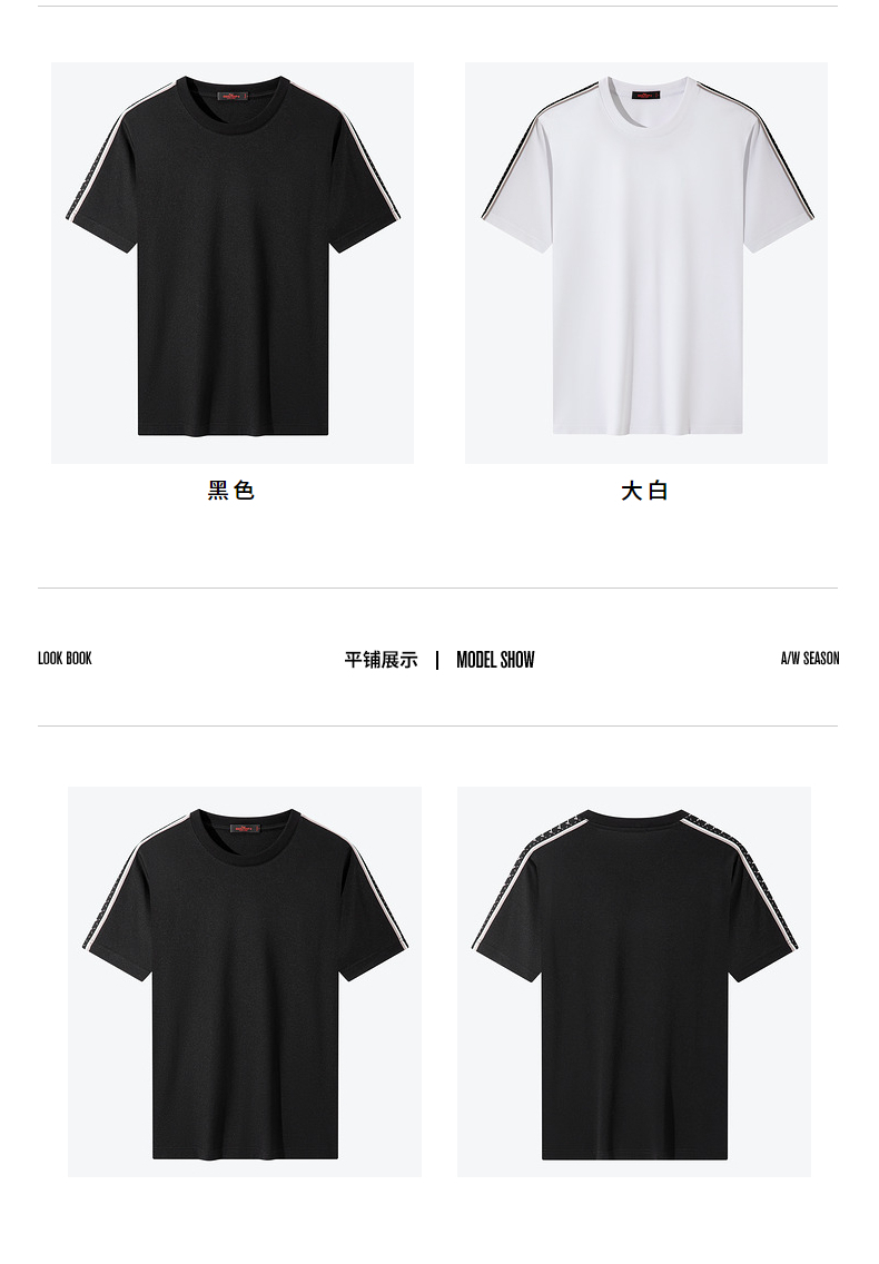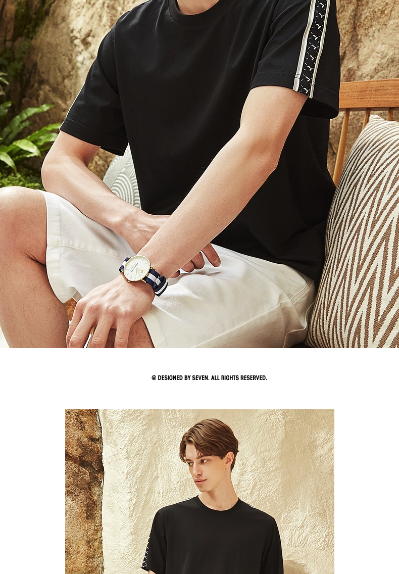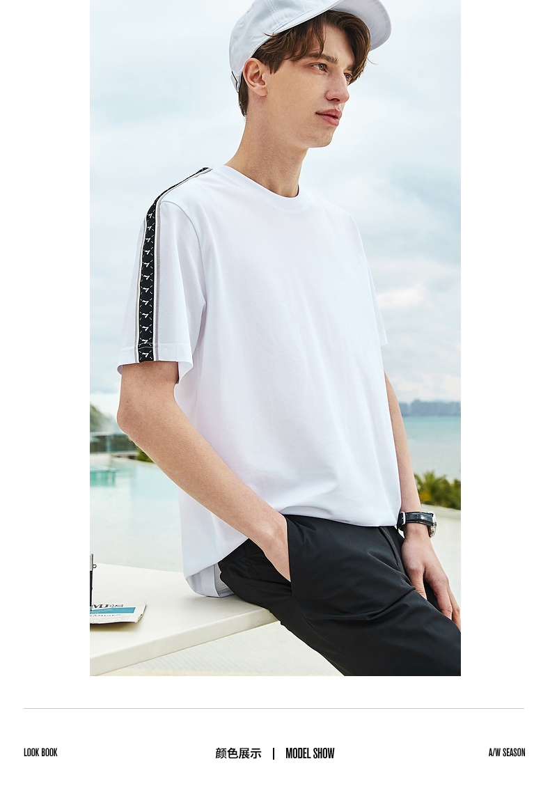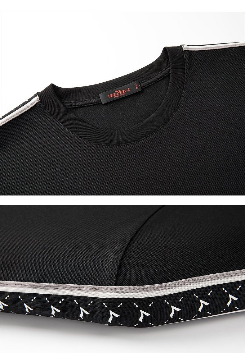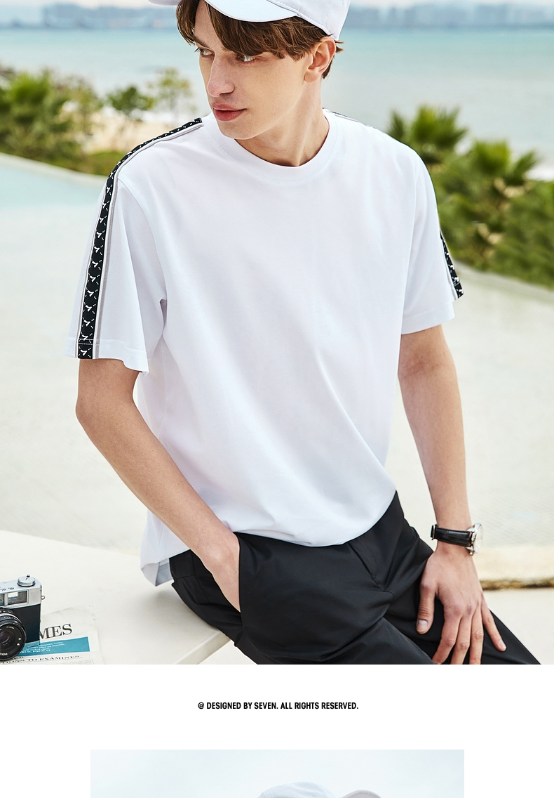 【含桑蚕丝】柒牌男士短袖t恤夏季新款印花拼接休闲运动圆领上衣 124T71360