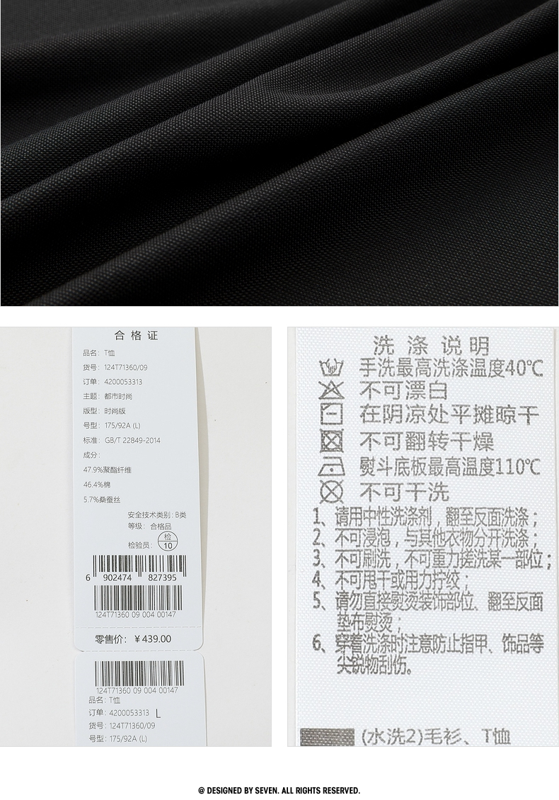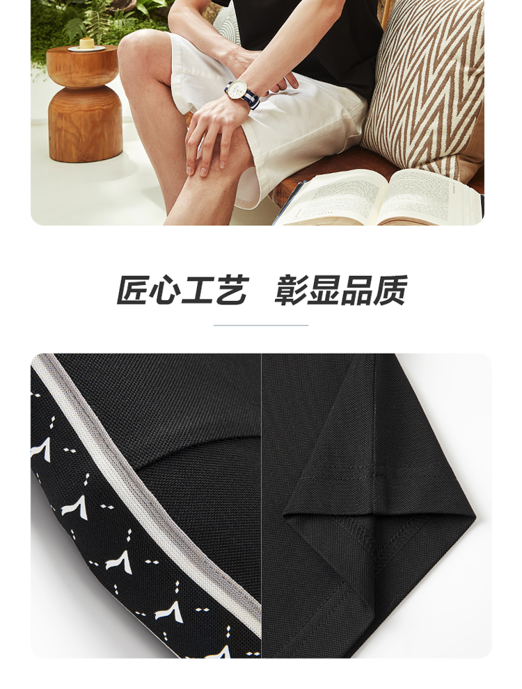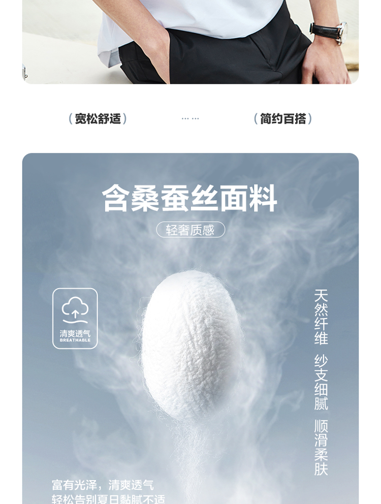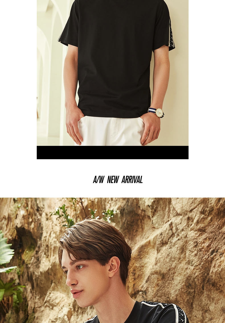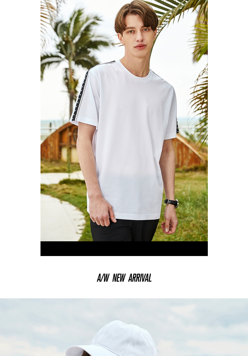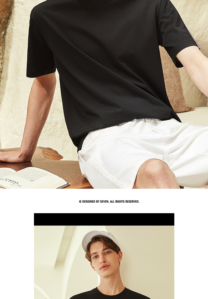 【含桑蚕丝】柒牌男士短袖t恤夏季新款印花拼接休闲运动圆领上衣 124T71360