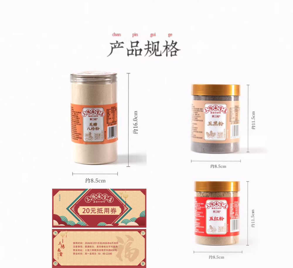 【三阳南货店】无糖八珍粉500g*2罐+五红粉/五黑粉250g*1罐(五红粉/五黑粉可选择其一)
