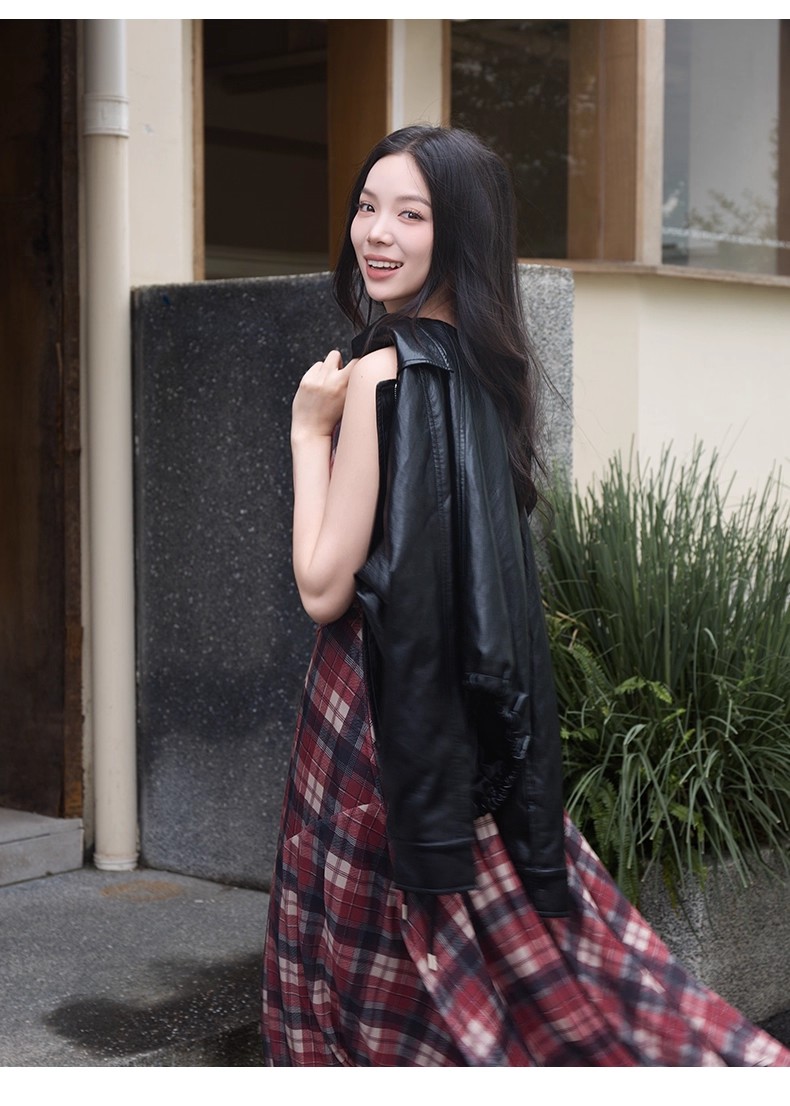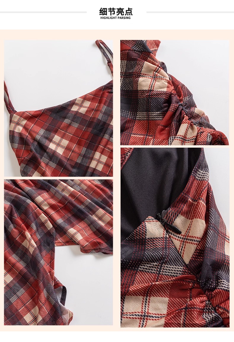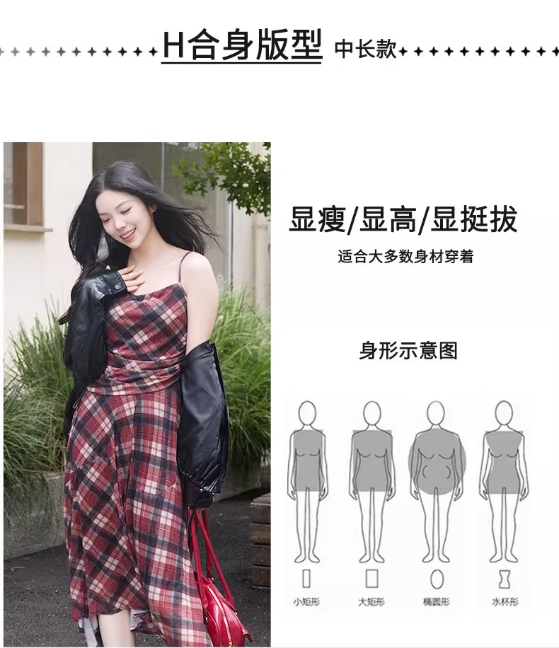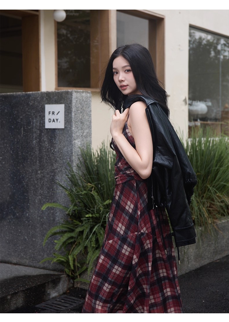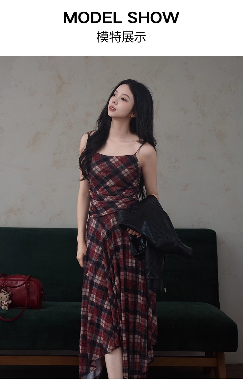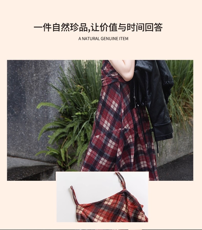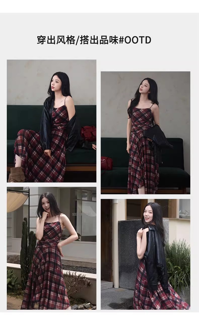【门店同款】ENJOY秋季“浮光织影”复古格纹吊带裙 164344088