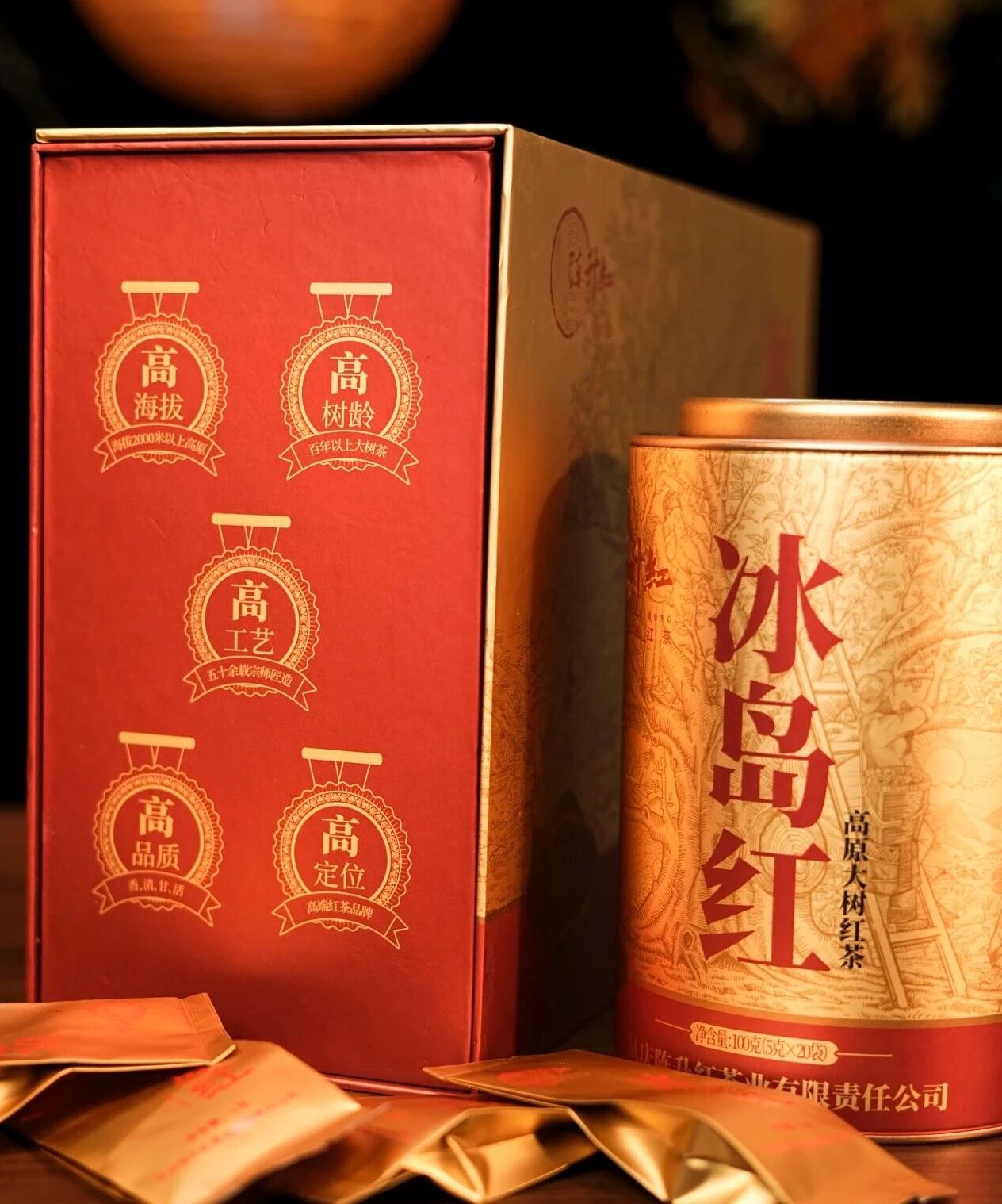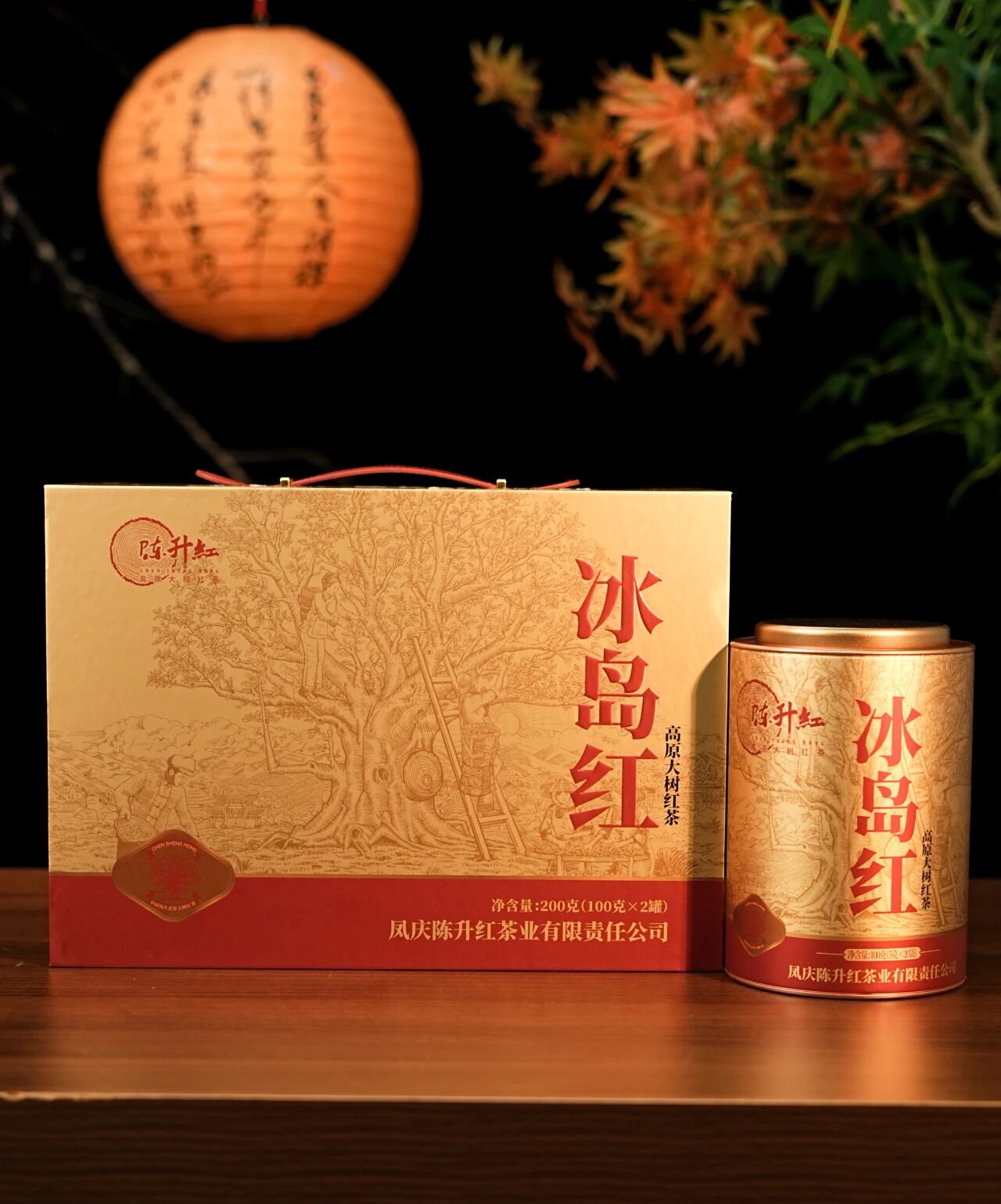 "冰岛红",冰岛茶区与凤庆高原大叶种原料拼配,两大传奇茶区优质原料完美融合,既保留了冰岛茶特有的冰糖甜韵,又兼具滇红的蜜香醇厚。高原大树红茶的醇厚饱满与冰岛的清甜细腻相得益彰,双味合一,清凉甜润。