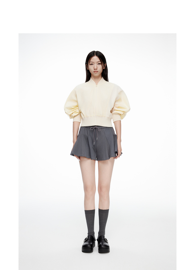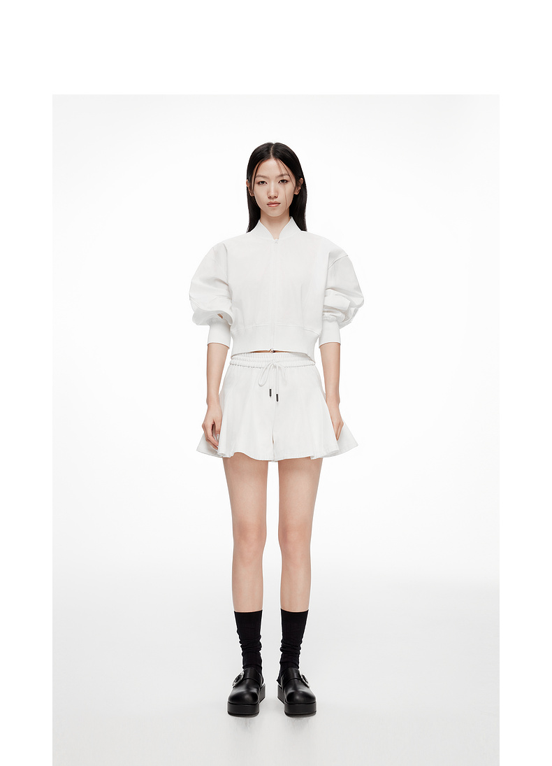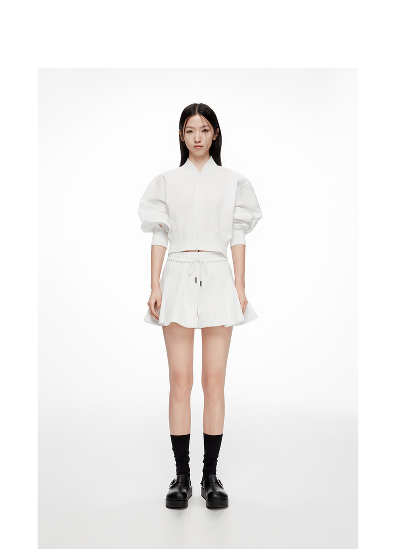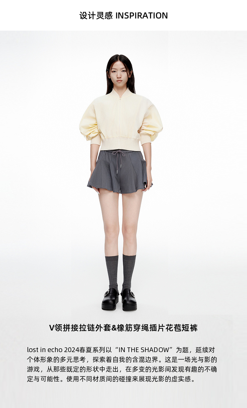 [断码]lost in echo设计师款V领拼接拉链外套橡筋穿绳插片花苞短裤套装