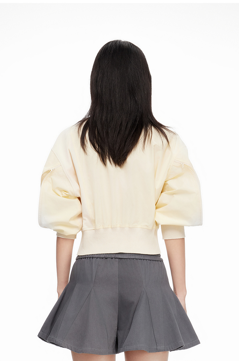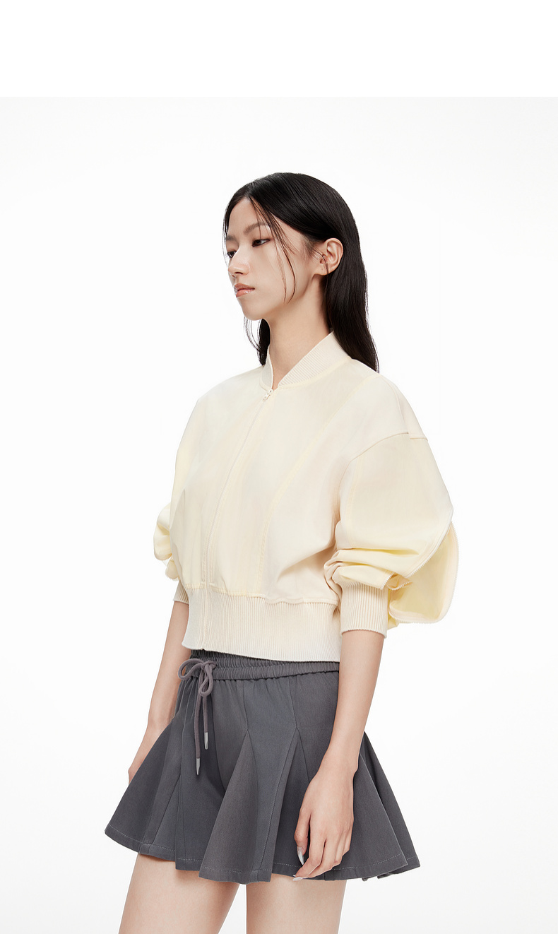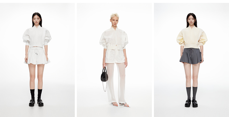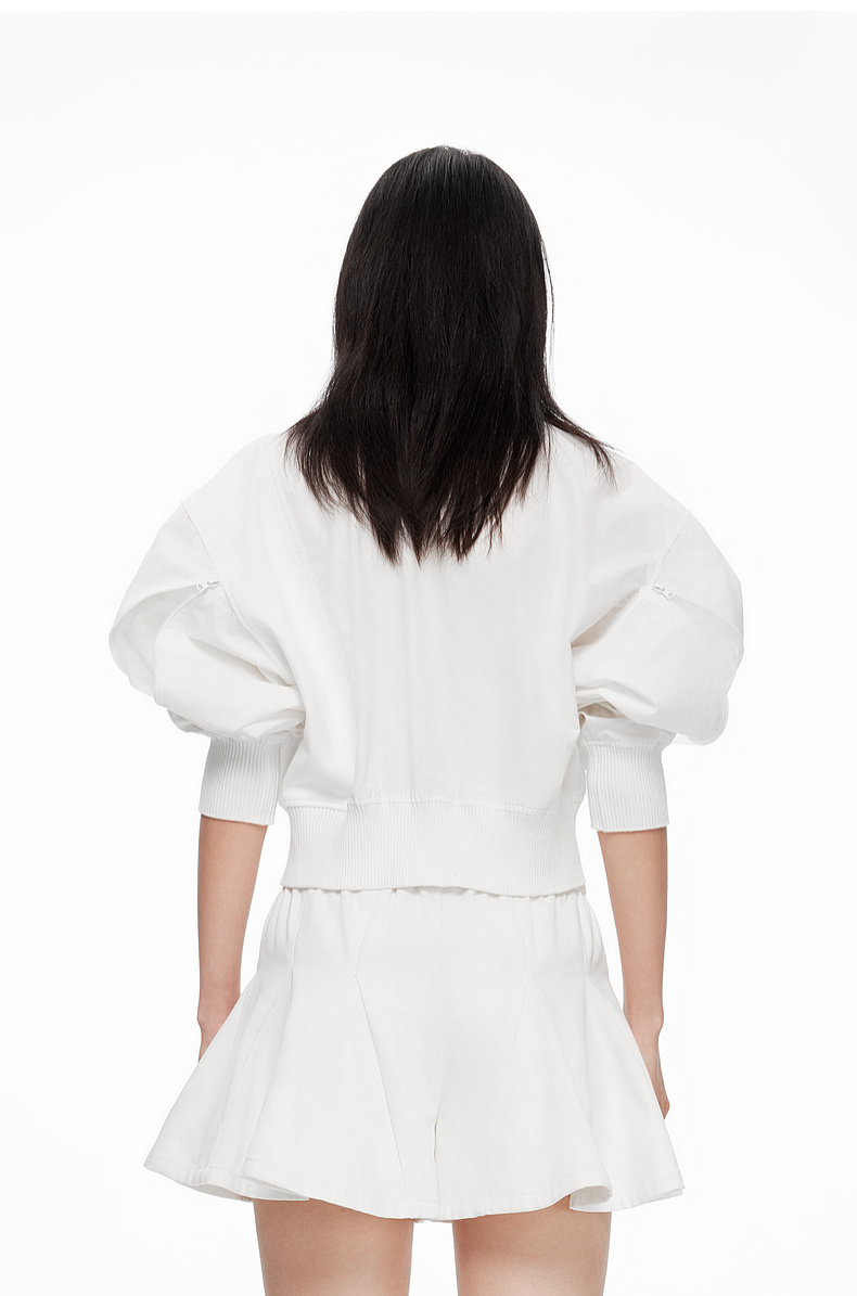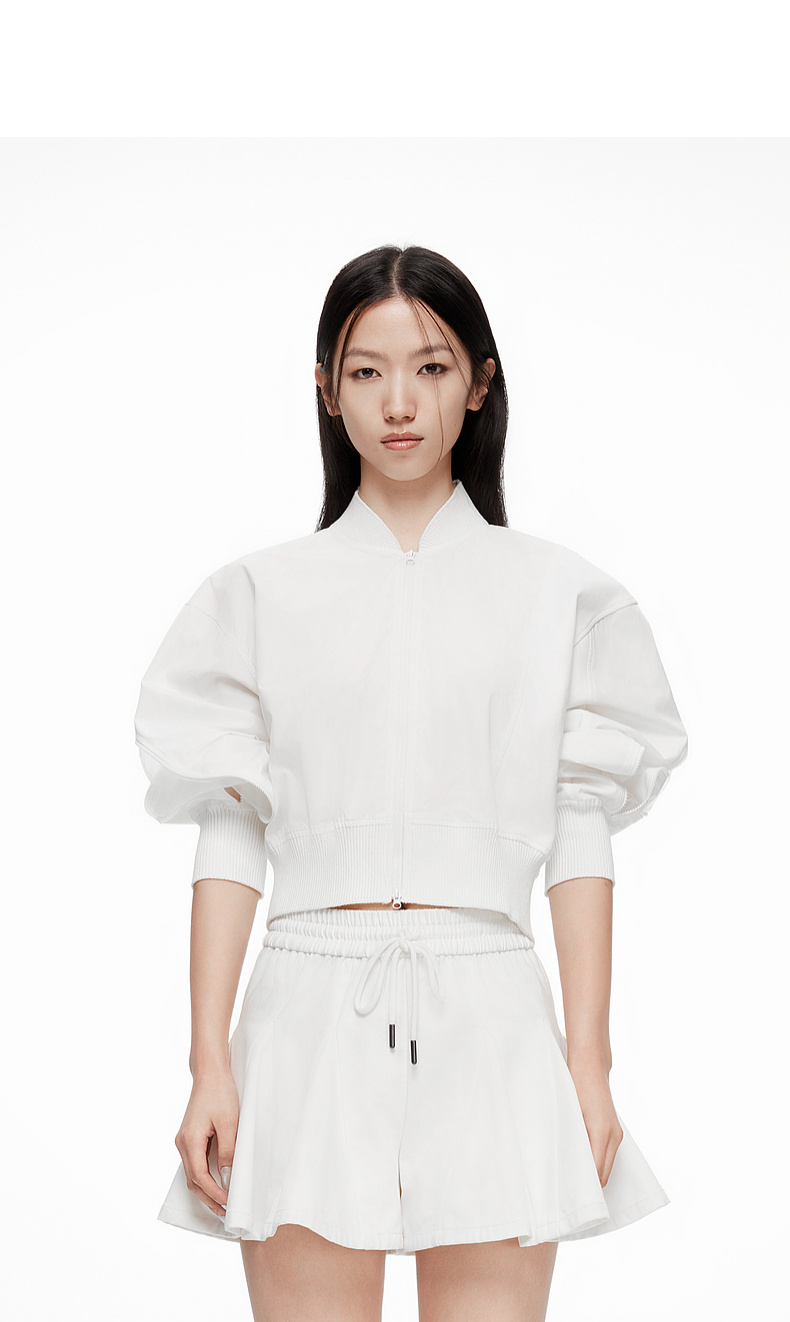 [断码]lost in echo设计师款V领拼接拉链外套橡筋穿绳插片花苞短裤套装