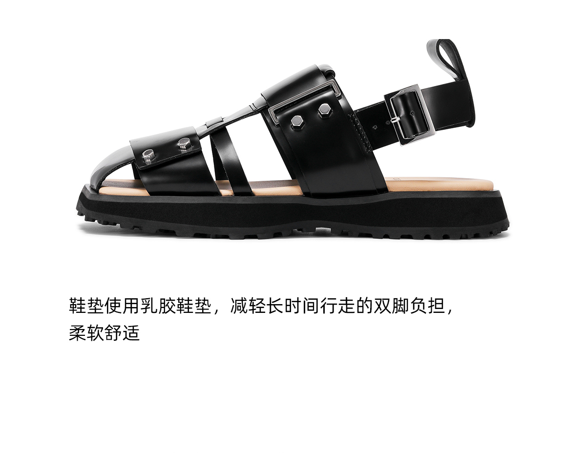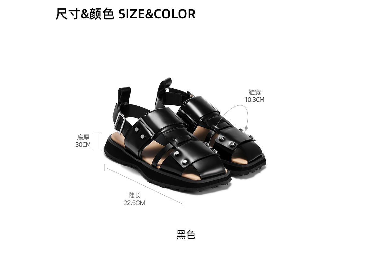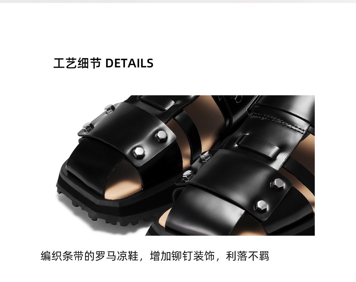 [捡漏价]lost in echo设计师品牌方头铆钉平底编织罗马凉鞋包头黑色鞋子女