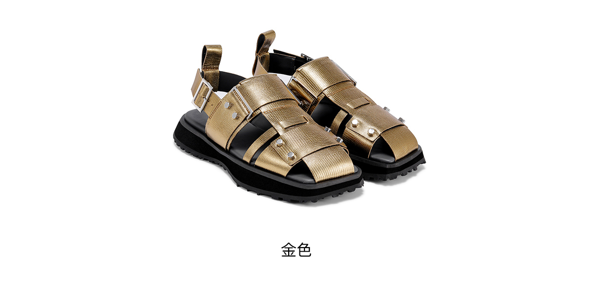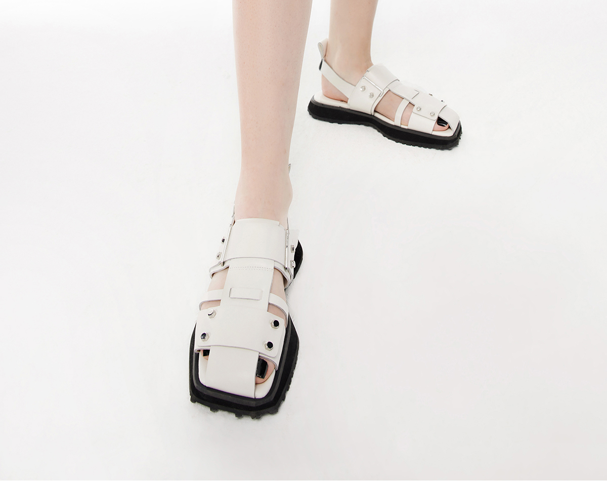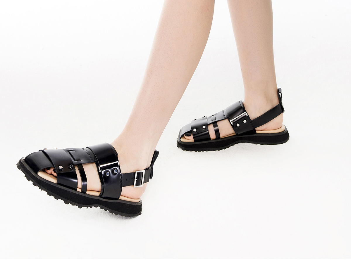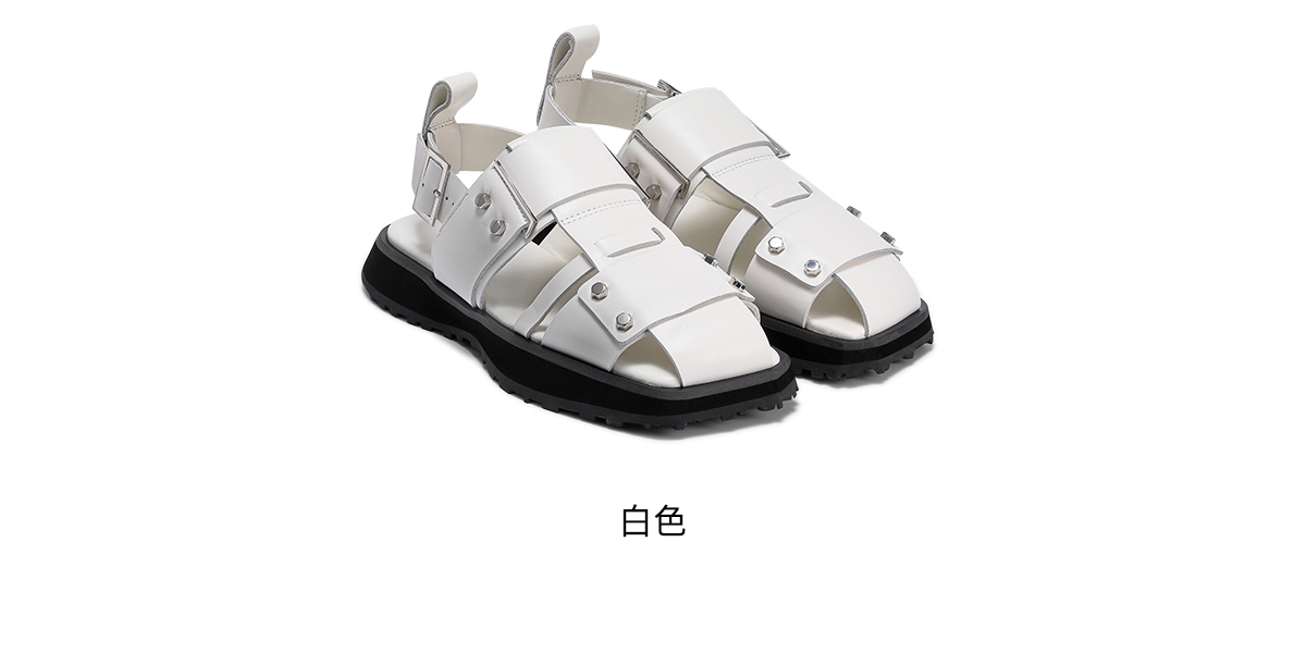 [捡漏价]lost in echo设计师品牌方头铆钉平底编织罗马凉鞋包头黑色鞋子女