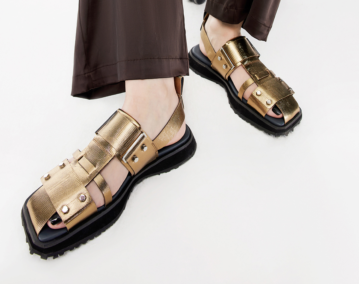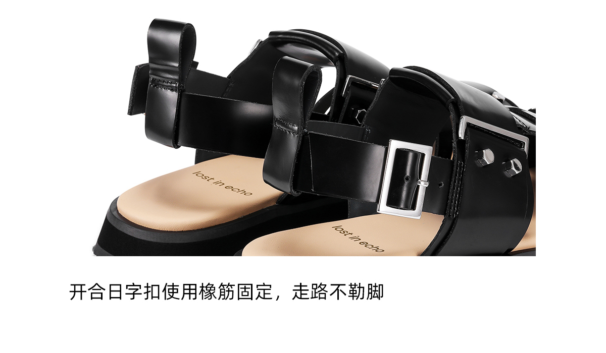 [捡漏价]lost in echo2024春季新品设计师品牌切面厚底增高填充双条带凉鞋