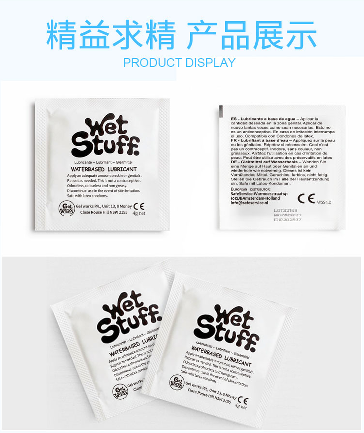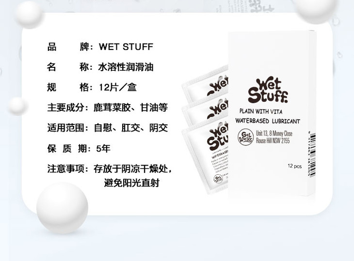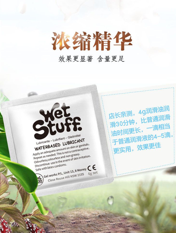 澳洲进口Wet Stuff盒装袋装润滑剂便携装人体女用阴道油夫妻房事情趣12片