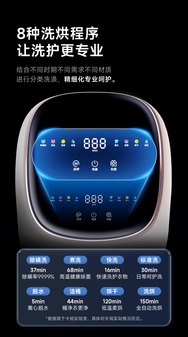 卡蛙智能全自动迷你烘洗 | 一体机洁净烘干抑菌多功能清洗降噪静音