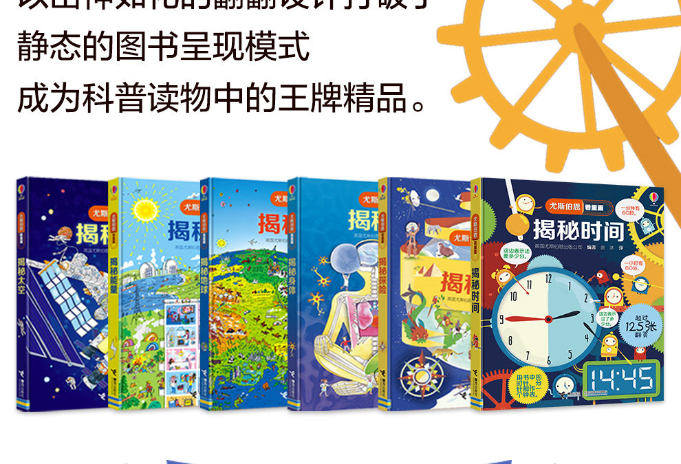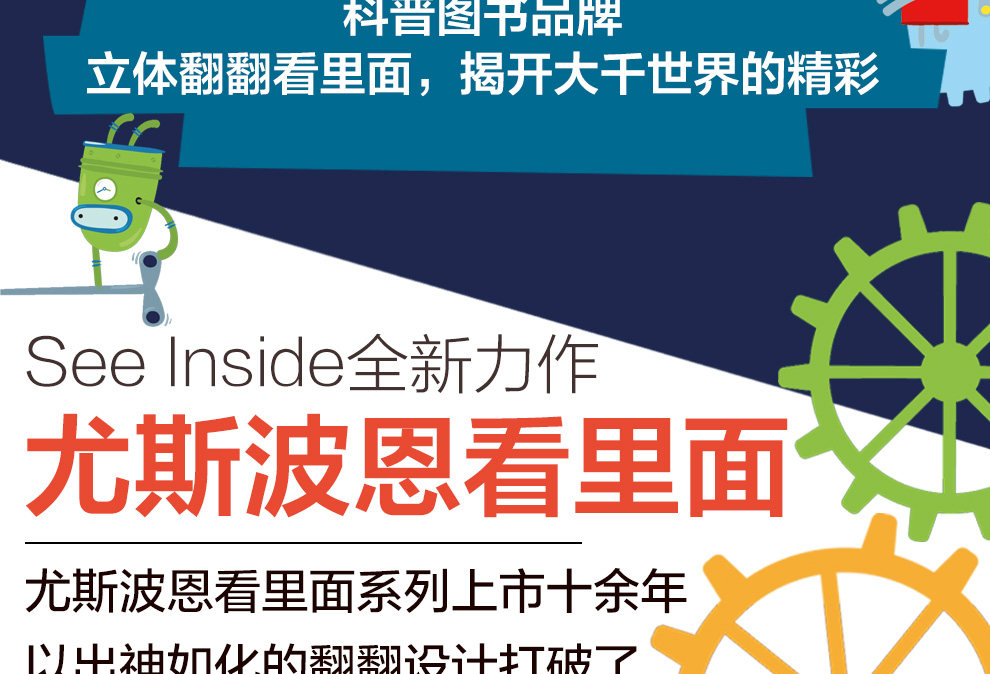 内容提要: “尤斯伯恩看里面”是英国童书尤斯伯恩出版公司出品的经典科普翻翻书,自2005年开始,已陆续出版50余种,曾荣获英国地理学会银奖,入围英国皇家学会青少年图书奖,获全球销量生活科技杂志《Popular Science》推荐,被翻译成26种语言,在29个国家出版,全球销量超过一亿册。 该系列图书涵盖了科学、技术、工程、艺术、数学等各领域孩子们感兴趣的内容,向3-10岁的孩子展示了一个生动的、立体的科普世界。每本书根据不同的主题,围绕核心知识进行展开,通过层层翻页,由表及里、由浅入深地将知识呈现给孩子。尤斯伯恩看里面的翻页、折页设计,打破了静态的图书呈现模式,让小读者在阅读中能够保持新鲜感和不断探索的兴趣,复杂的内容、深刻的内容也不再那么枯燥,而且使得书页上直观呈现的内容和翻页下的内容形成一种对比、反差,因此事物变化的时间感、历史感、变迁感也变得清晰起来,阅读也不再是一味沉浸在平面的状态里。 在图片层面,形状各异的翻页充当着不同的探索工具与途径:有时候它是放大镜,把微观的物体放大了给孩子看;有时候它是望远镜,让孩子可以清晰地看到远在天边的物体;有时候它是一扇门,打开它,孩子可以“走进去”,看到里面不一样的世界。在文字层面,书中直观呈现的内容与翻页下的内容有着复杂的逻辑关系:翻页下的内容有时候是对正文的一种解释补充,让孩子对事物有一个全面的认识;有时候是一种转折,让孩子的发现之旅惊喜不断;有时候是一种承接,让孩子理清事件的来龙去脉。