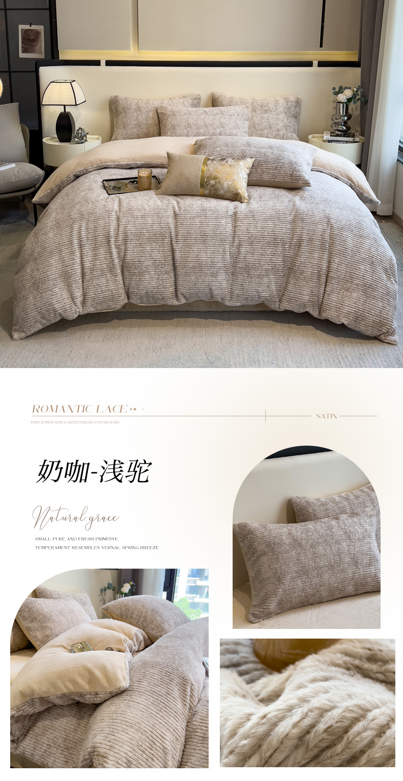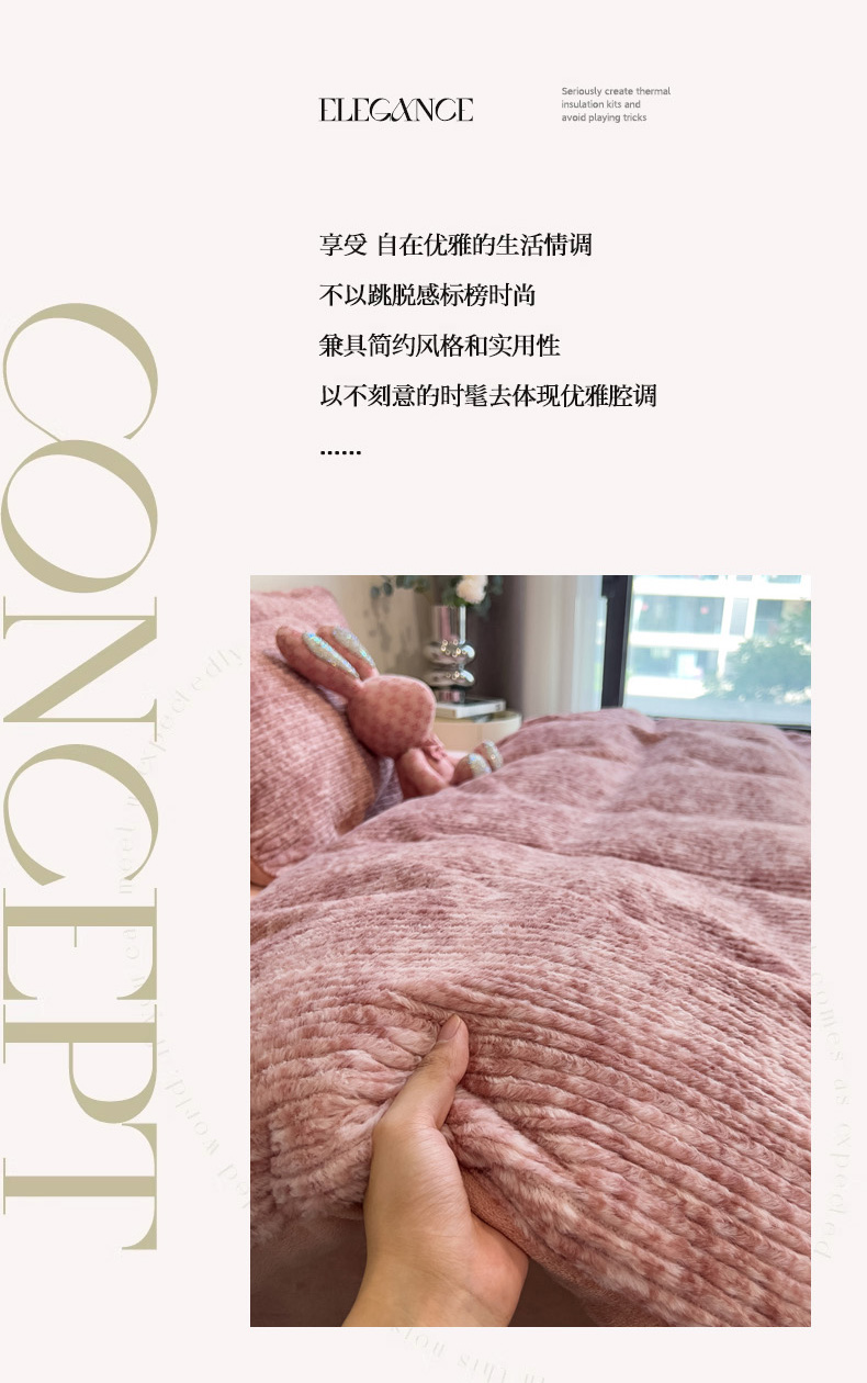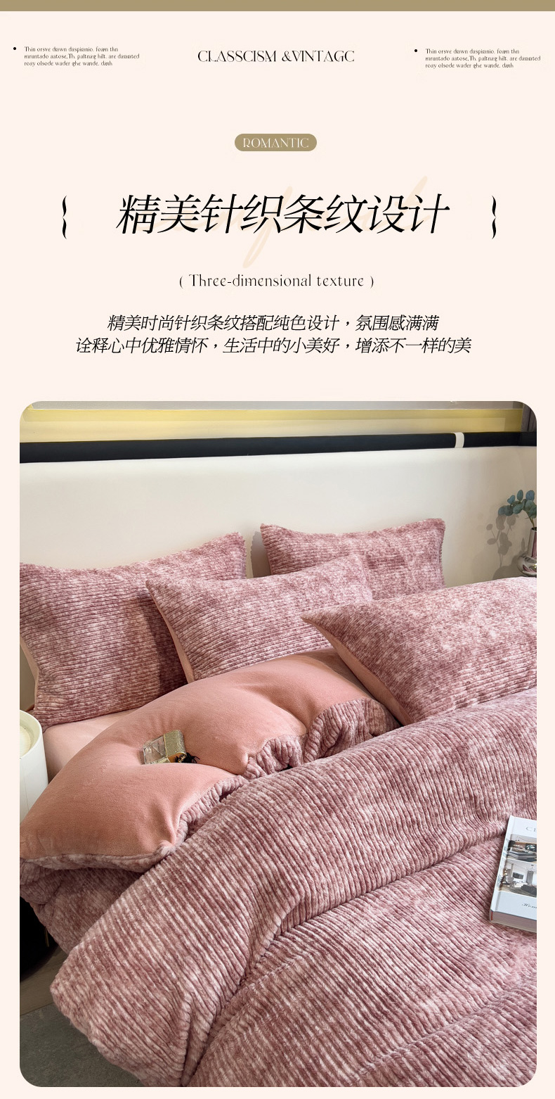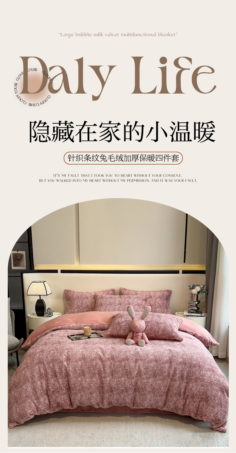 【一套约8.6斤重】秋冬御寒保暖加厚保暖针织兔毛条纹四件套 柔软亲肤不起静电套件